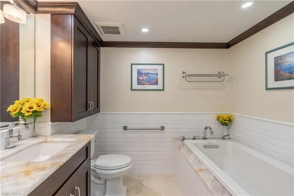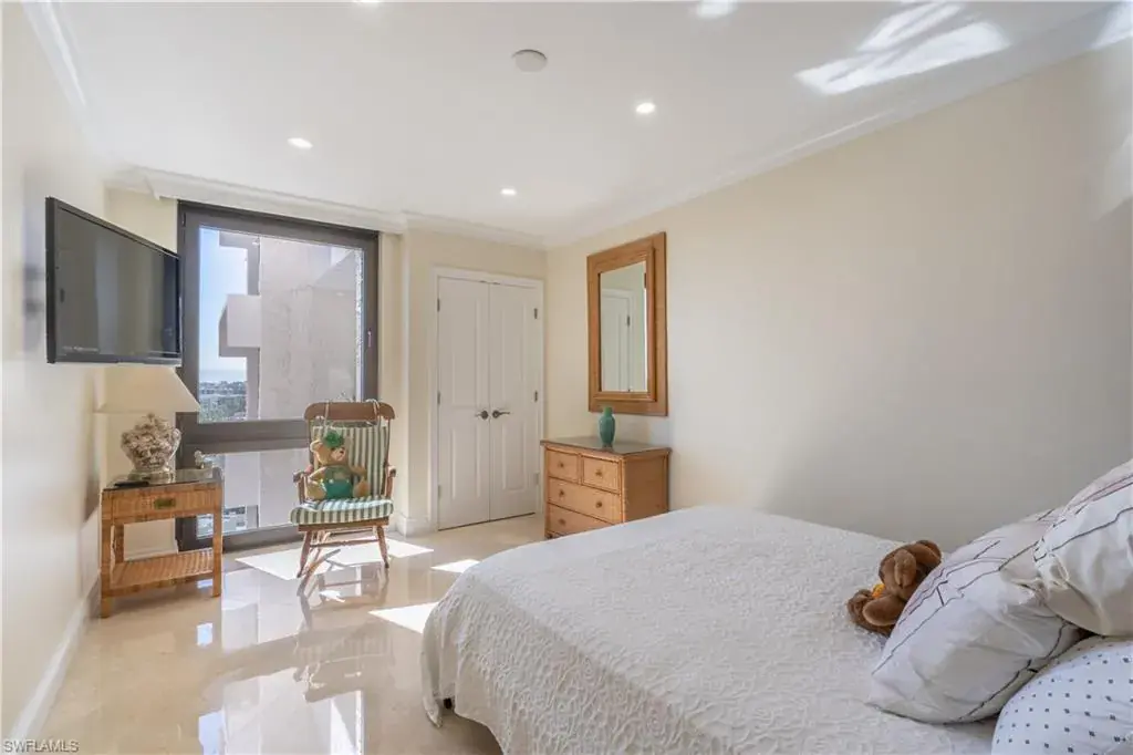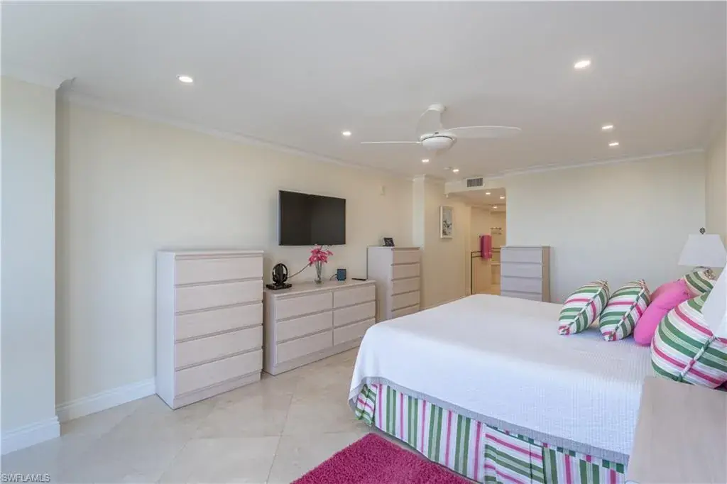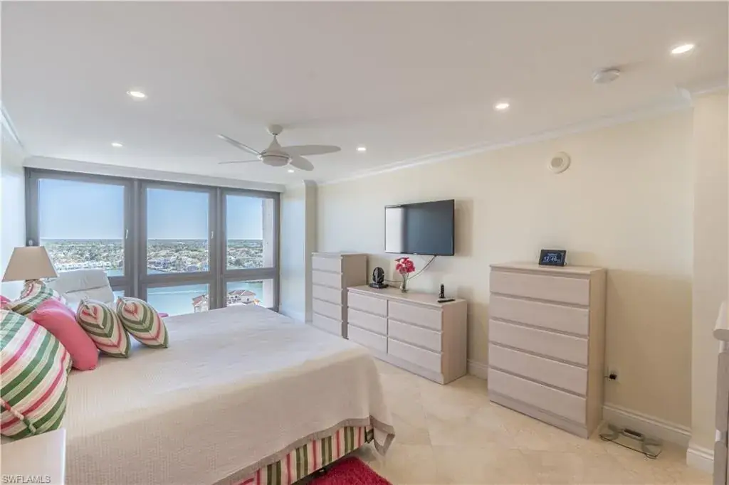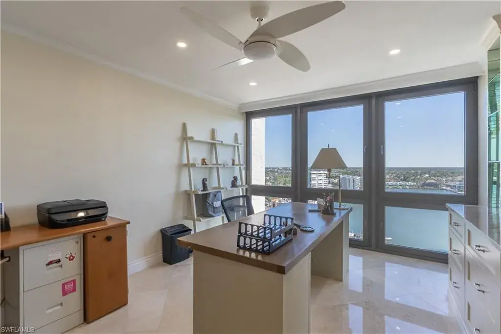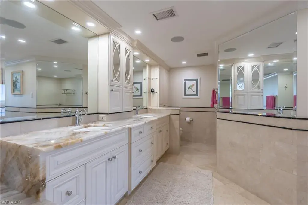 • Owner’s Suite: features spacious sleeping area with adjacent Spa-like bath, walk-in closets with custom built-ins, with picturesque water views.