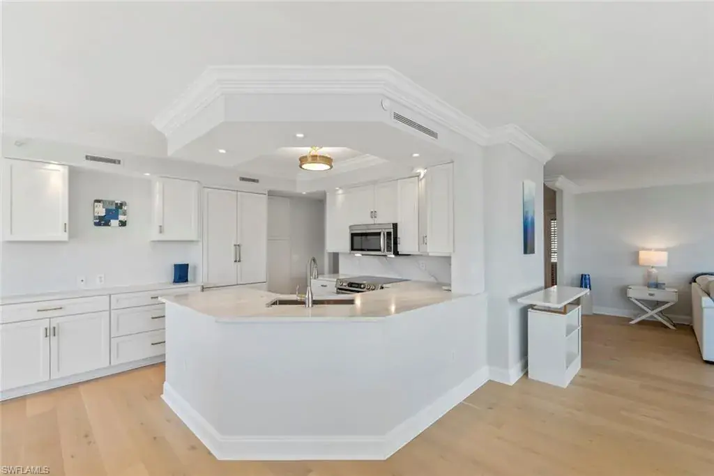 Bay & Gulf views galore! An exceptional opportunity awaits in the heart of Park Shore with this beautifully renovated, furnished condo offering a myriad of breathtaking views of the bay and stunning Gulf sunsets. Ideally located in the fabulous Allegro just steps from private Park Shore beach access and a short stroll to the upscale boutiques and dining of Venetian Village. Enjoy peaceful walks along the scenic beachfront promenade, immersing yourself in the quintessential Naples waterfront lifestyle.