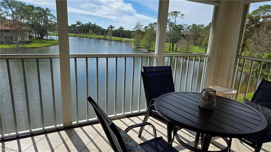 Royal Wood Golf Country Club-Amberly Village: Discover this desirable 3rd floor condo in Amberly Village, offering breathtaking views of a serene lake and the golf course. Enjoy southern exposure from the private lanai, which is open on two sides, providing abundant natural light.