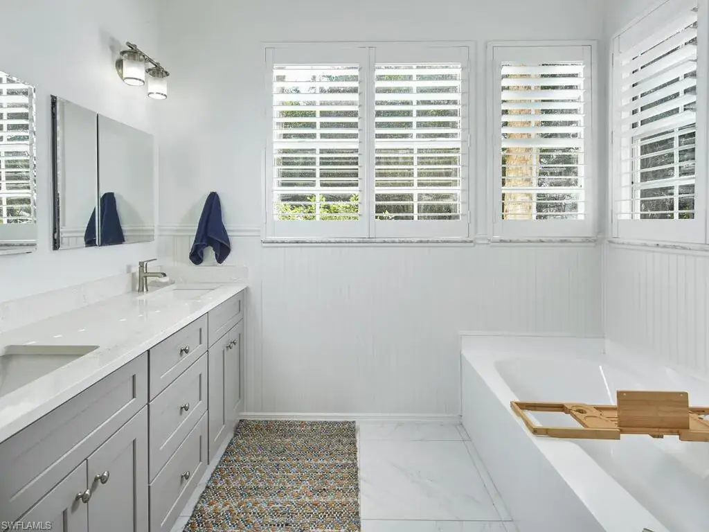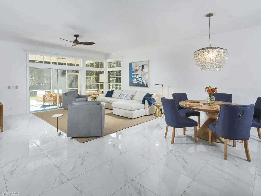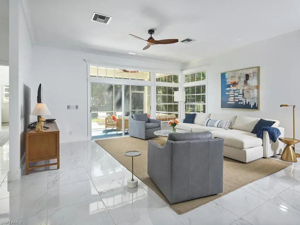Experience the elegance and ease of Wyndemere, Naples’ premier private golf community, where lush landscapes, world-class amenities, and vibrant lifestyle converge. Nestled within the sought-after Amblewood neighborhood, this beautifully updated attached villa offers the perfect blend of style and comfort in a tranquil, tropical setting. Step inside to find an open, airy living space with tiled floors throughout, flowing seamlessly into a private lanai—ideal for relaxed days and peaceful evenings in the Florida sun. The primary suite boasts a generous walk-in closet, and bath, and a walk-in shower for a spa-like retreat, the second guest bedroom is generous in space, and the