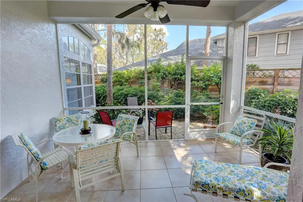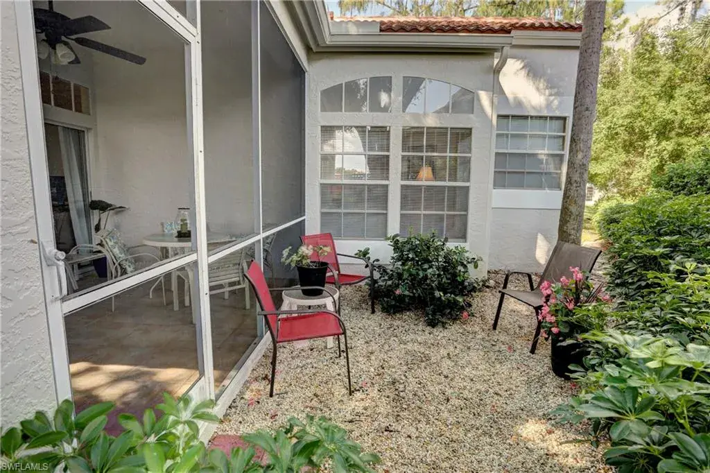 Move right in and start enjoying the fabulous Southwest Florida lifestyle! Nestled in the desirable community of Amblewood, this private end-unit is just steps from all Wyndemere amenities! Set back from the street with a long driveway, this 3-bedroom, 2-bath villa offers an open floor plan with 10’ foot ceilings, crown moldings, tile flooring throughout and new carpeting in the bedrooms. The primary suite is bright and spacious, with a large walk-in closet, primary bath with dual sinks, shower and tub. The back screened-in lanai is private and serene, a cozy place for outdoor living. The kitchen features stainless steel appliances, granite counter tops with eat-in kitchen. Separate laundry, attached 2 car garage and screened front entry porch. Amblewood is a popular pet friendly neighborhood on a charming tree lined street. 27 holes of Arthur Hills golf, 10 HarTru tennis courts, pickleball, bocce, croquet, resort-style zero entry pool, state of the art fitness center, w/full spa services & group exercise classes. New activity center with circular outdoor bar and pickle ball stadium for exhibition matches with seating for 165! Enjoy indoor/outdoor casual dining at the Tiebreaker and a lively social schedule of events/parties at the club. Wyndemere, a gated premiere 2025-2026 Platinum Club of America, known for its friendly and welcoming membership, is ideally located within minutes to world class dining, shopping and the spectacular sugar sand Gulf beaches. Live everyday like you are on vacation!