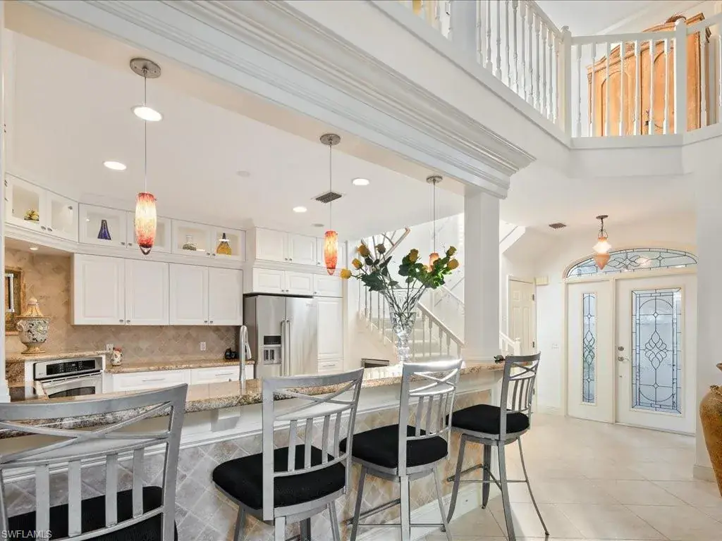 Walk to the club and all the wonderful Wyndemere amenities from this beautiful 3+bed/2.5 bath condo in the charming neighborhood of Amblewood. Brand new roof, exterior paint and outdoor lighting fixtures complete this 2 story villa with a private courtyard patio for casual entertaining. A haven to come home to after a day of golf and activities. Thoughtfully designed chef’s kitchen with Italian inspired touches, granite countertops, stainless appliances and plenty of bar seating. Elegant crown moulding adds a beautiful finish to the vaulted ceiling in the great room, which has an open yet cozy feel. Large first floor primary suite and 2 guest rooms upstairs with an open air second story loft office/den. Relax in the sunny Florida room with impact vanishing sliders opening to your private patio for entertaining guests in a lush tropical setting, landscaped with mature bougainvillea blooms. Private driveway, 2 car garage with textured epoxy flooring. Screened front entry sitting porch and landscape lighting throughout. Low maintenance for those who prefer to lock and leave and want the convenience of proximity to the club. Wyndemere CC, an award winning Platinum Club, offers many extraordinary amenities, 27 holes of Arthur Hills golf, 10 Har-tru tennis courts with stadium seating, 7 pickleball courts with 165 person stadium seating for pickleball pro exhibitions, bocce, croquet, a resort style zero entry pool, golf learning center, putting greens, driving ranges, 2 pro shops and both casual and formal dining. A full service spa, salon and state of the art fitness center with a full schedule of group exercise classes and personal training, you’ll feel like you live in a resort! This gated community is known for it’s friendly membership and active social schedule of events. Centrally located to all of Naples and a short drive to 5th Ave shopping and dining, Mercato, Waterside Shops, Venetian Village and the sugar sand beaches of the Gulf. Come enjoy this amazing lifestyle and own a piece of paradise!