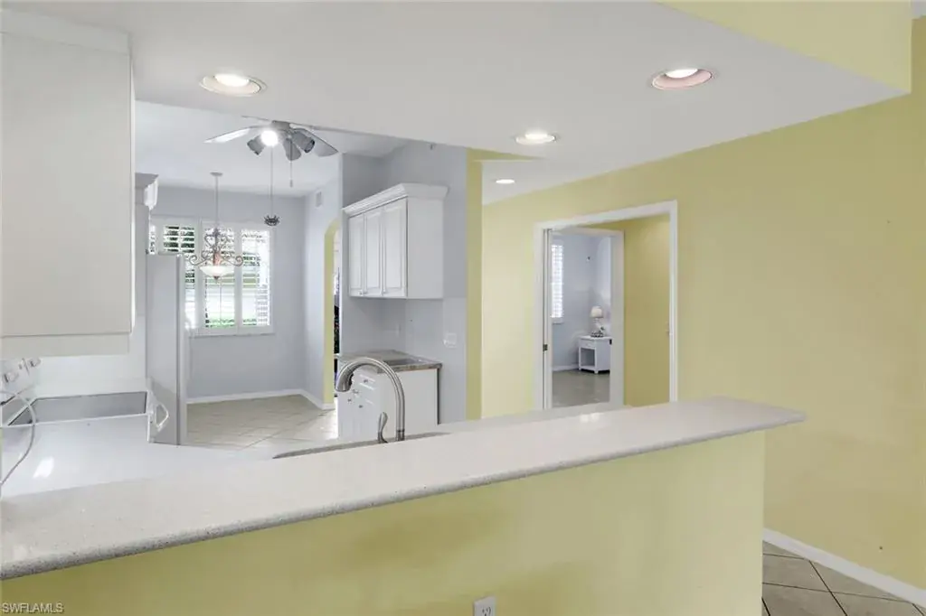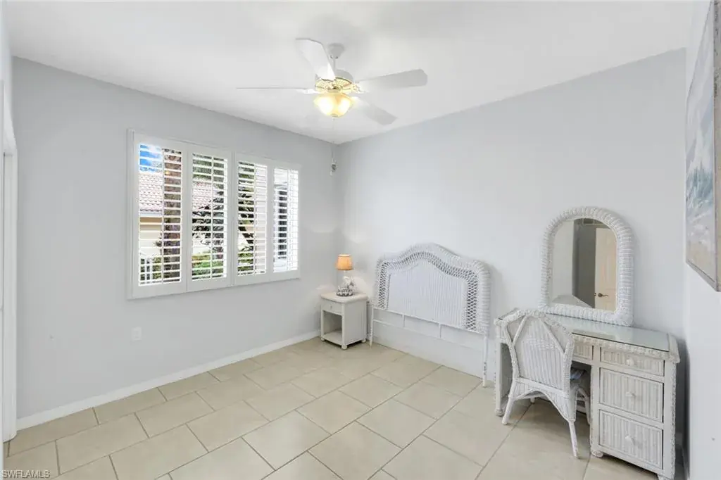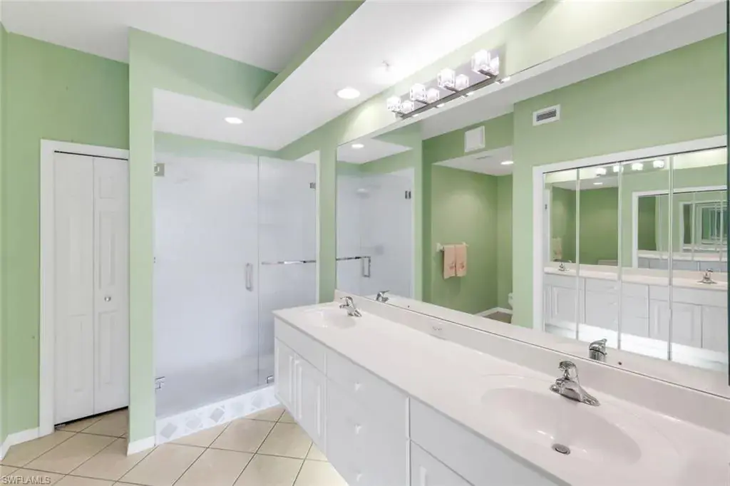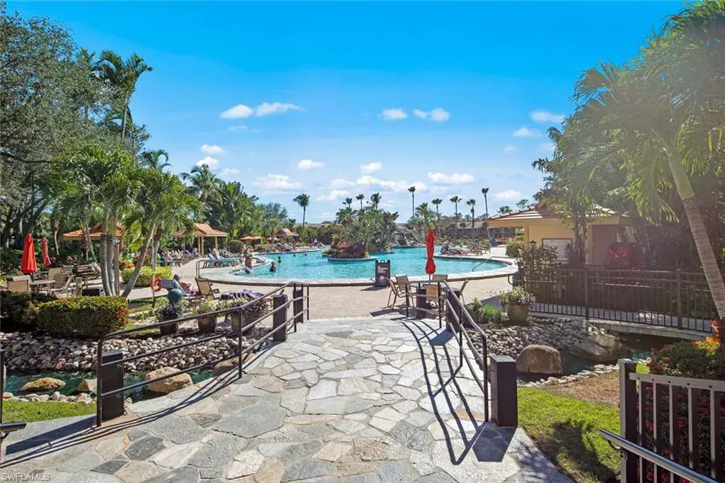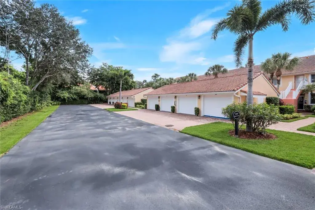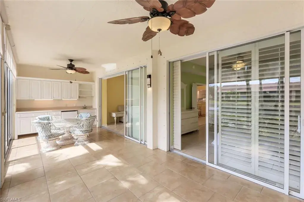 Lakeview condo located on a Premium Cul De Sac. This provides a very private and quiet environment with no traffic. Discover serene living in this beautifully appointed 2-bedroom, 2 -bath split bedroom floor plan. Enjoy tranquil lake views from over 300 square feet of extended space thanks to a fully enclosed lanai with glass sliding doors-perfect for year-round relaxation or entertaining. The summer kitchen has a full set of base and overhead cabinets, sink and refrigerator to complete this great space. The kitchen features white raised panel cabinets, quartz counters and white appliances. The open-concept layout has tile throughout with abundant light. The master suite has a tray ceiling, plantation shutters, sliding doors leading to the lanai and the bathroom has a new rain glass shower enclosure with a new tile floor, dual sinks, walk in closet and linen closet. Detached one car, 12’x24′ garage offers ample parking and storage. This condo offers the perfect blend of comfort, style and peaceful surroundings. Whether you are seeking a seasonal retreat or a full-time residence or a full- time residence, this home delivers exceptional value and lifestyle. To add to the Falling Waters lifestyle are the amenities. The largest saltwater community pool in SW FL, 11,000 sf with tropical landscaping and connected to a clubhouse that provides many activities. Enjoy a round of tennis with friends on the clay tennis courts. The bocce courts offer a place to play a fun sport with new neighbors in many of the seasonal bocce leagues. Falling Waters’s ideal location provides a 4.5-mile direct drive to the shops and fine dining offered on 5th Ave & Third Street in downtown Naples and the the beaches of the Gulf.