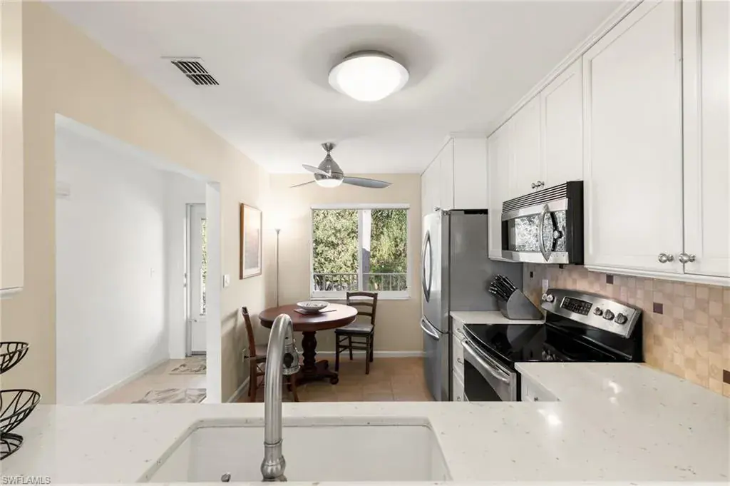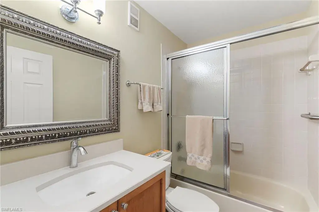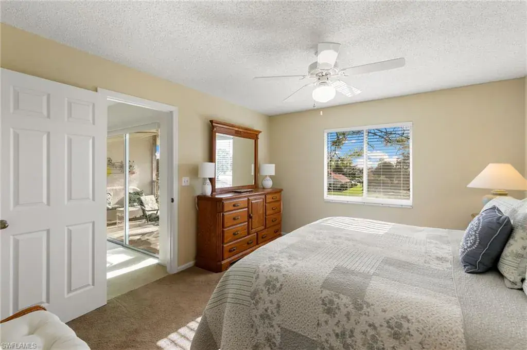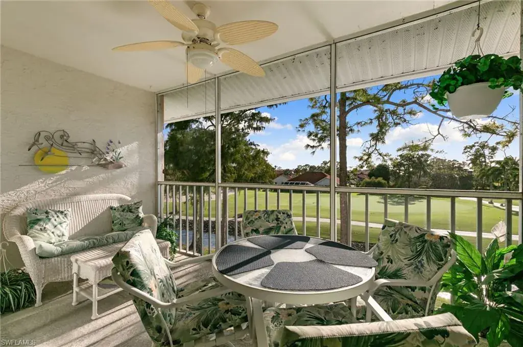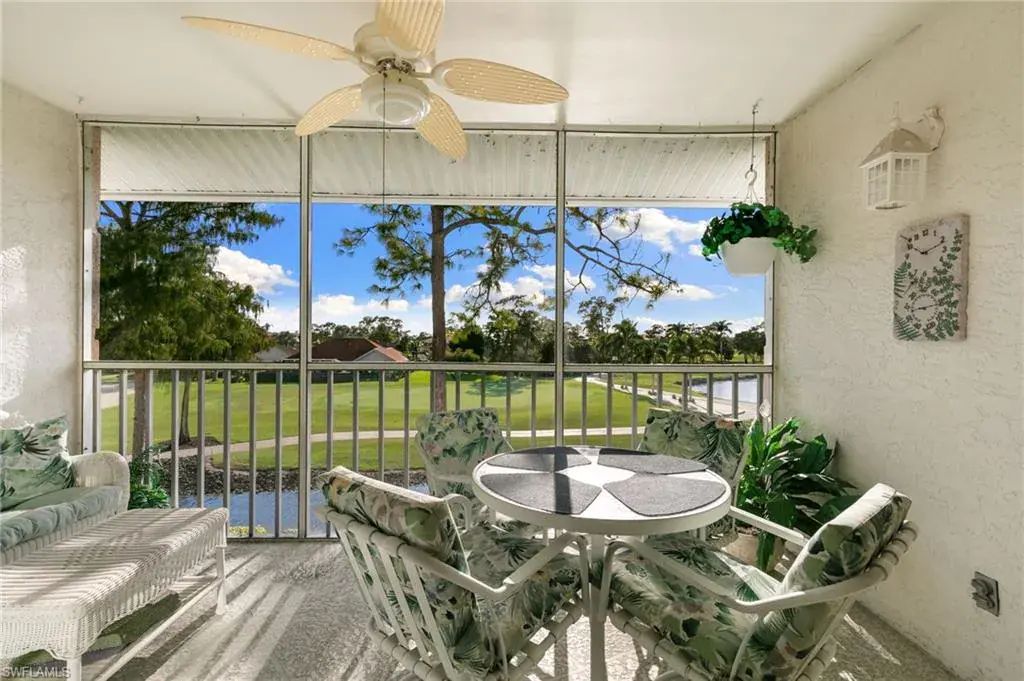 Relax and unwind on your private screened lanai, where you’ll enjoy serene southwest views of the creek and golf course—a perfect spot for morning coffee or sunset cocktails.