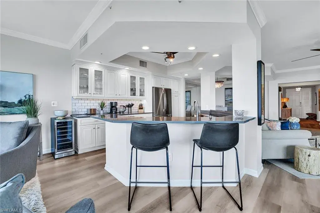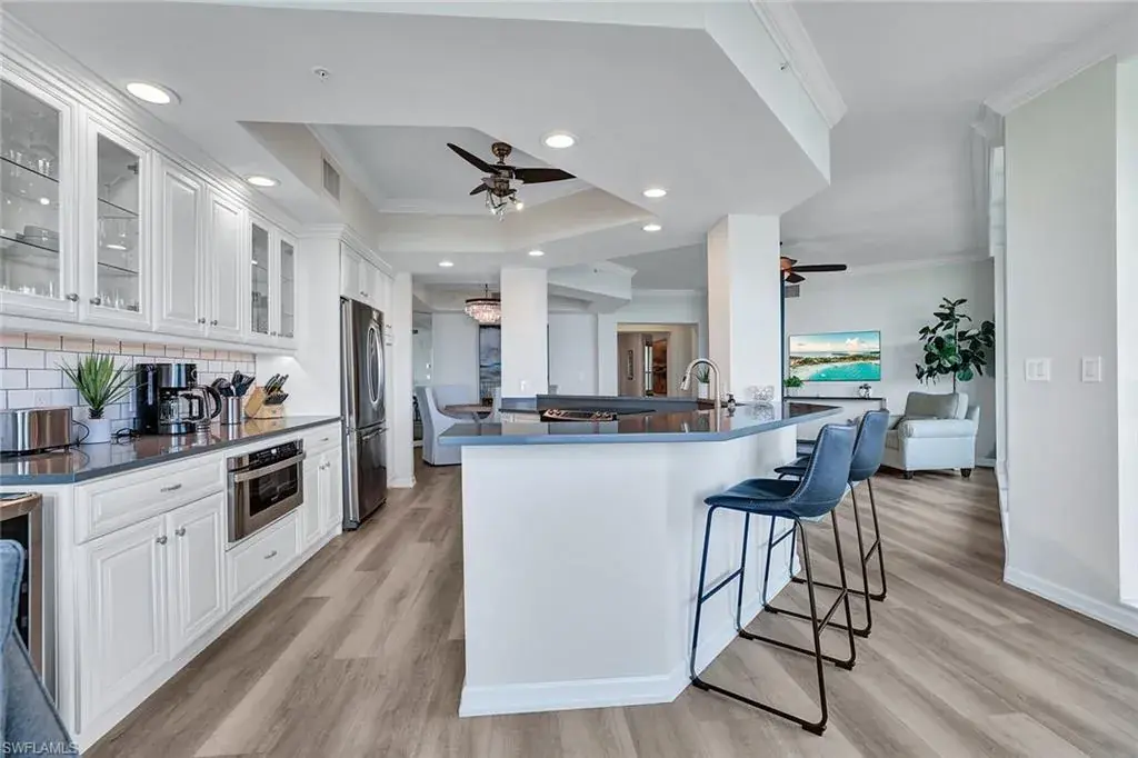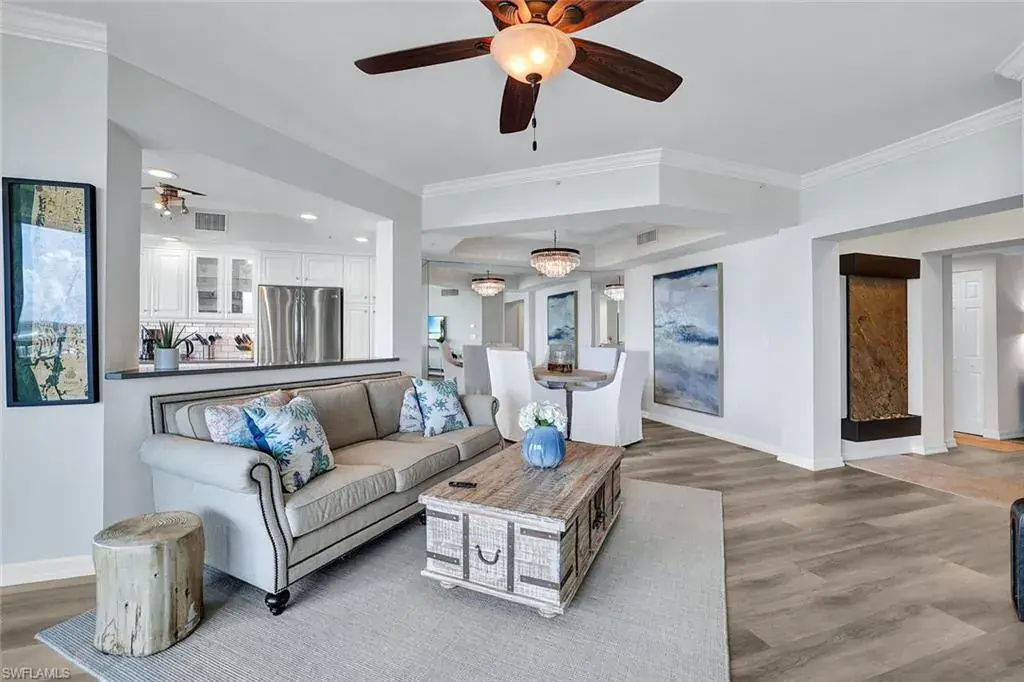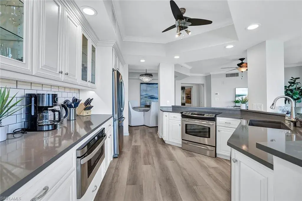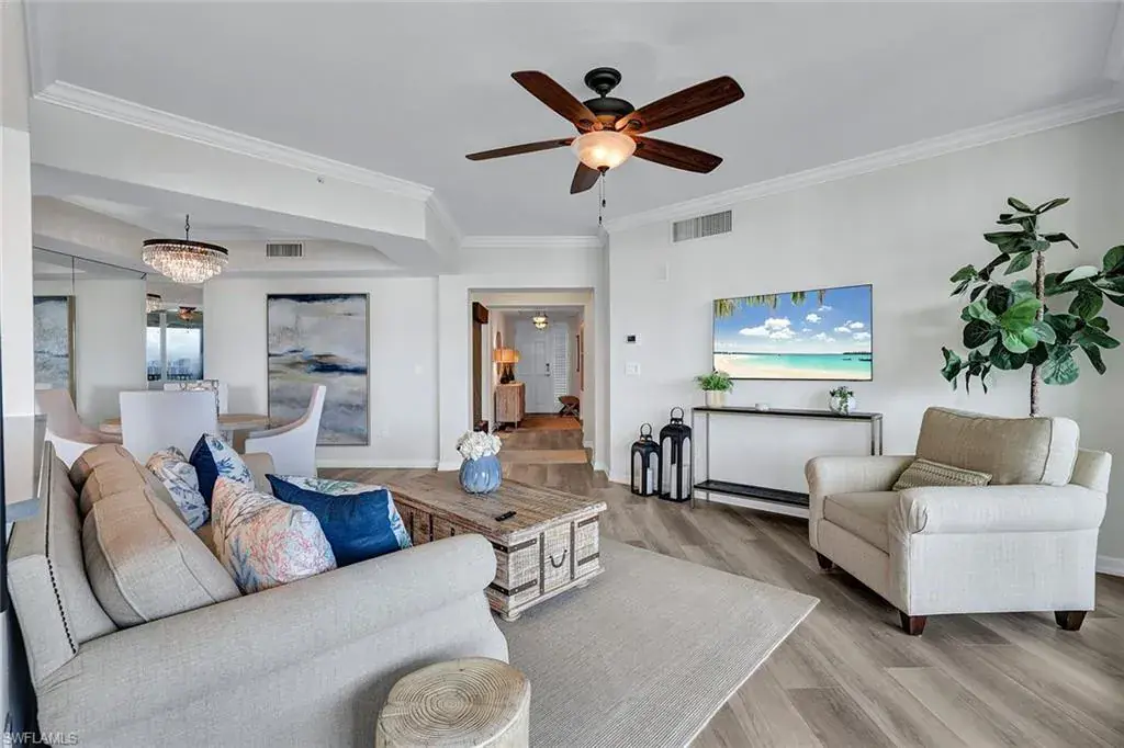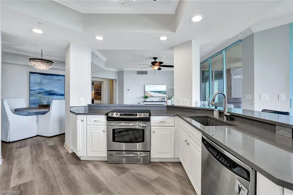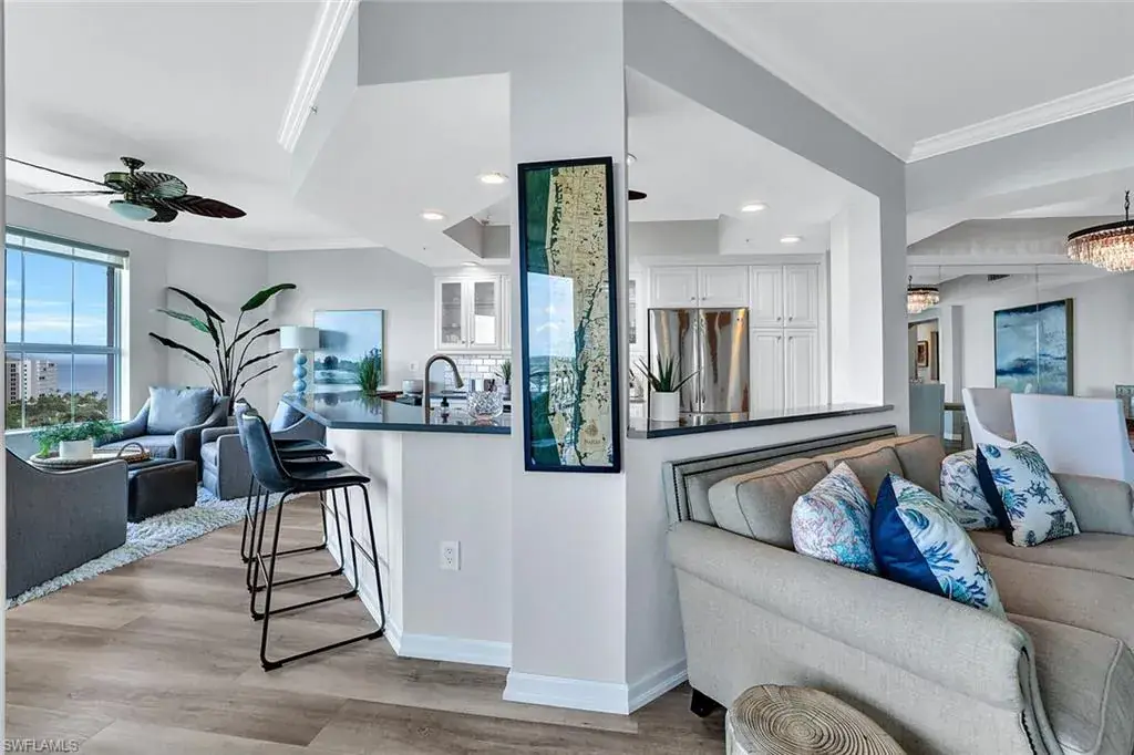 Price Improvement!! Exquisite Luxurious Living at the Dunes Of Naples! This beautifully updated “TURNKEY PENTHOUSE” is loaded with high end finishes, including Luxury Vinyl Tile flooring throughout, quartz kitchen countertops, stainless steel appliances, stylish coastal furnishings, beautiful light fixtures and ceiling fans, just to name a few. This Penthouse is in the Perfect location, walking distance to Vanderbilt Beach, the renowned Delnor Wiggins State Park, Connors Park, and minutes to upscale shopping, dining, and nightlife at Mercato or Waterside!! Step out on your lanai for the Spectacular sunset views of the Gulf of Mexico, tropical landscaping and the beautiful white sandy beaches of Naples! Enjoy the recently renovated, world class resort lifestyle ammenities that is the Dunes of Naples. The 25,000 sqft ammenity center “The Club” offers indoor outdoor dining, Poolside Tiki Bar, walk in pool with a beautifully elevated hot tub centered in the middle of this tropical oasis. The Pool area features a large sundeck, fire pit tables, ping pong, cornhole and plenty of relaxing lounge areas. The Wellness Center features state of the art fitness machines, group fitness classes, Tennis Courts/Pro Shop, Pickle ball, Spa/massage services and much much more!! Come experience your slice of Paradise in the spectacular community The Dunes!!
