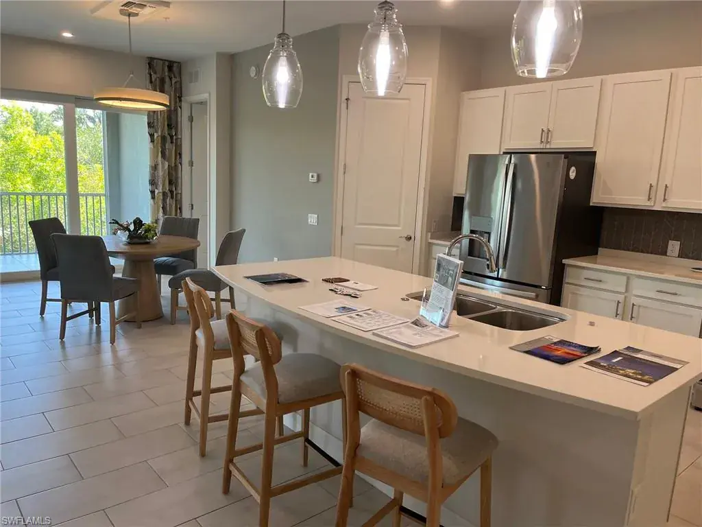 Stunningly furnished (brand NEW) Antilles’ Grand Coach Home, 2nd floor Montserrat model, offers large loft space plus 3 bedrooms, 2 full baths, laundry room and a large storage closet. This amazing open floor plan includes solid wood cabinetry and doors, on-trend wide profile ceramic tile in the main areas, Kohler fixtures, stainless kitchen appliances,Quartz counter tops, and custom built closets. Outdoor lanai extends the whole length of the living space and offers tranquil views of the preserve. Home has an attached 2 car garage. This pristine home was a model home currently offered unfurnished.