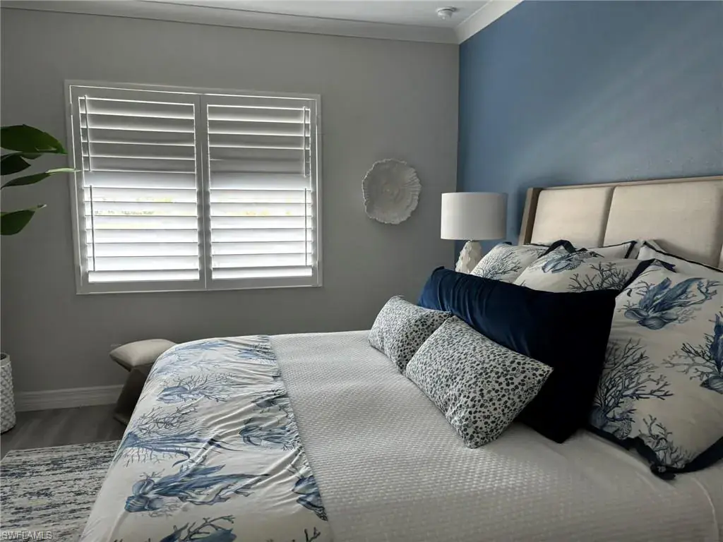 Stunning First-Floor Grand Coach Home in Antilles. Professionally decorated with timeless coastal elegance, this spacious first-floor residence features custom plantation shutters throughout and motorized silk shades at the sliders for added comfort and style. Enjoy peaceful lake views from your private lanai. Located in the gated, pet-friendly community of Antilles, just minutes from the white sand beaches of Marco Island and the vibrant shops and restaurants of downtown Naples, this home offers resort-style living with no CDD fees and no flood insurance required. Community amenities include a resort-style pool, state-of-the-art exercise room, pickleball courts, and more. Experience the perfect blend of luxury and laid-back Florida charm in this welcoming neighborhood.