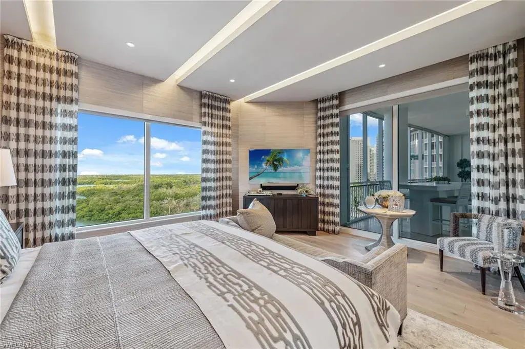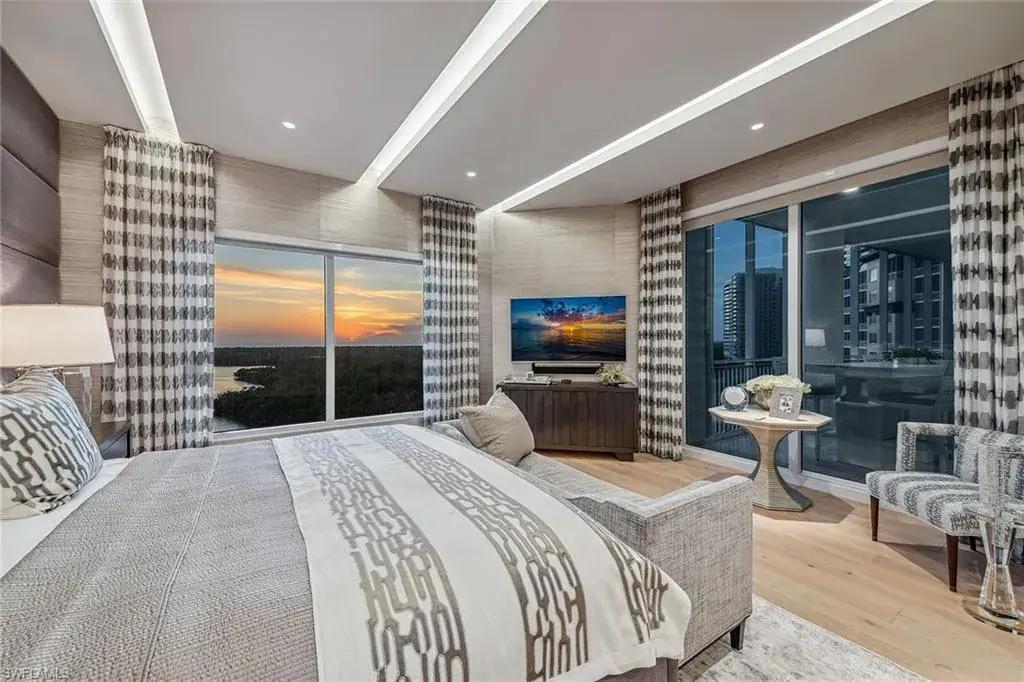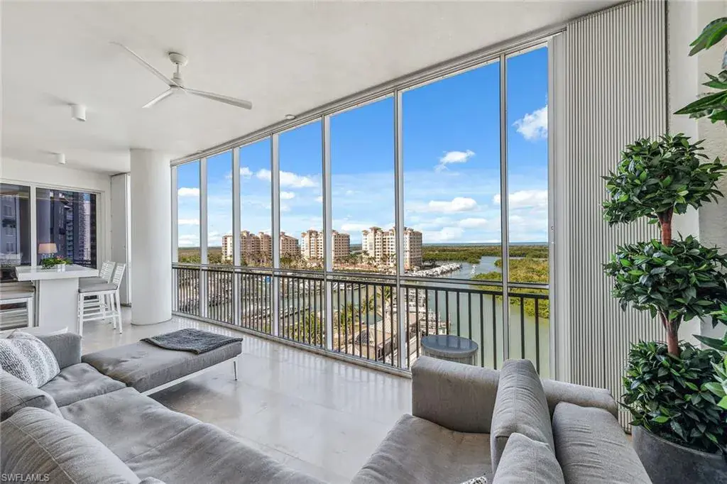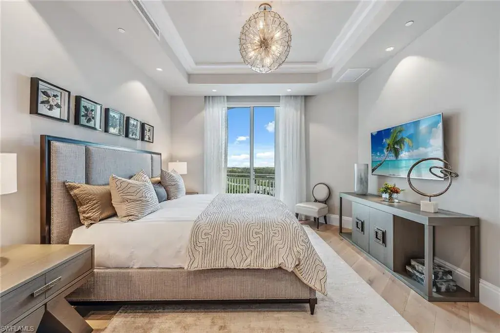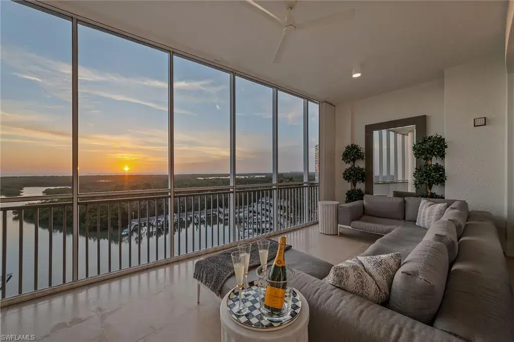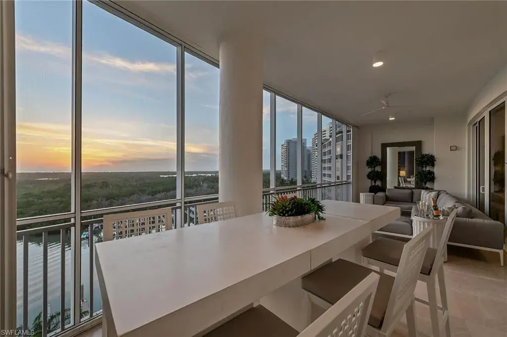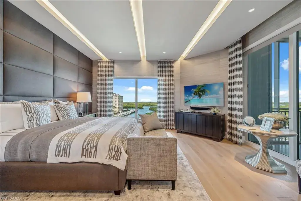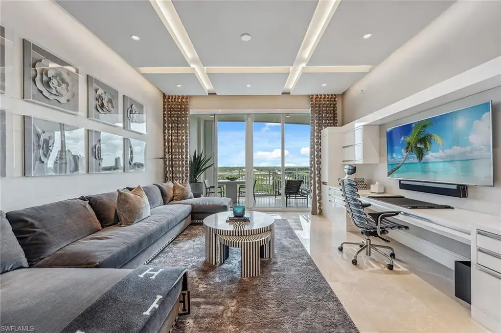 We are excited to introduce you to this exquisite residence in Aqua. This eighth-floor, three-bedroom plus den, 3 ½-half-bath, 3,940 square feet of luxurious living space has breathtaking views of the Gulf to the west and lush green views of the newly constructed Kinsale Golf Course to the east is unique in many ways. This Renee Gaddis meticulously designed residence offers an unparalleled level of luxury and elegance. No expense was spared in bringing in the finest design to afford comfort and sophistication. Enter from your private elevator and be ready to be impressed by the expanse and view of the Gulf and Wiggins Pass. The seamless flow of this residence reflects today’s lifestyle. The designer spacious kitchen and wet bar has beautiful quartz countertops, top of the top-of-the-line appliances and can rightfully be called a chef’s delight. The thoughtfully designed primary suite has spectacular views of the Gulf and includes dual custom-designed closets, a spacious luxurious bath and access to the lanai. You will enjoy the privacy yet natural light of the glass-enclosed office/den offering ample space for relaxation or work. Two spacious guest bedrooms with en suites provide privacy and comfort for your family or friends. The terrace is an outdoor paradise where you can savor breathtaking sunsets, dine alfresco, or simply unwind while listening to the ocean. This home is dripping with style and finesse. Crafted with uncompromising attention to detail, this residence was designed for the most discerning tastes. Aqua is amenity-rich including on-site concierge service, library, two spacious social rooms for casual or elegant entertaining, fitness center, spa treatment rooms, steam and dry saunas, ninth-floor level sky lounge, dog runs, large pool and a private marina. You will not be disappointed!