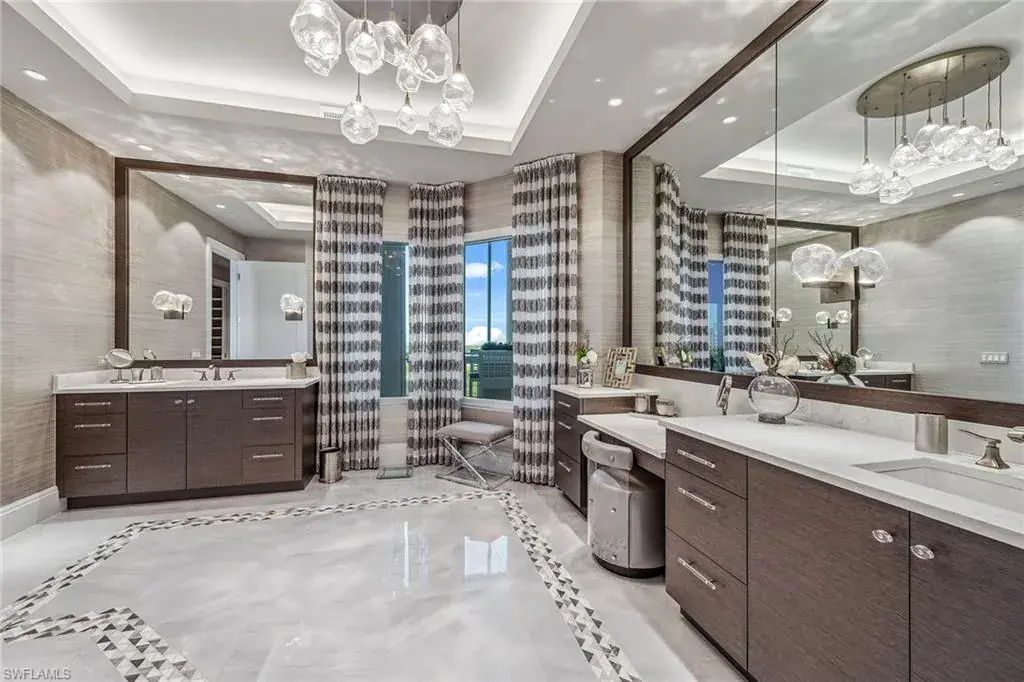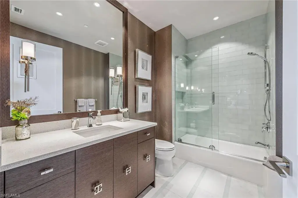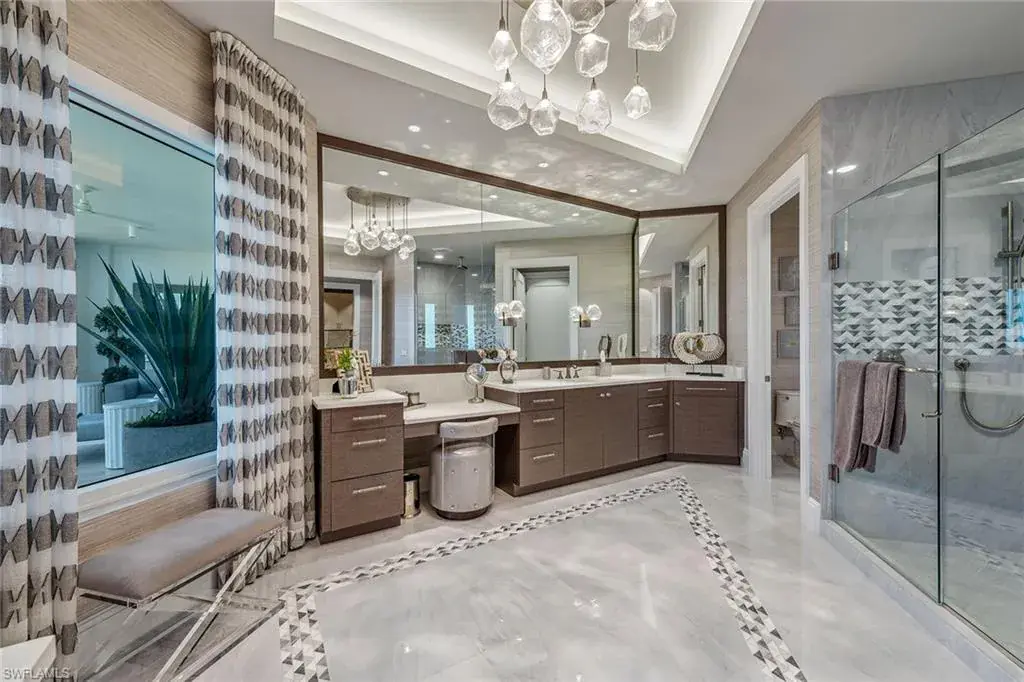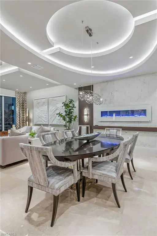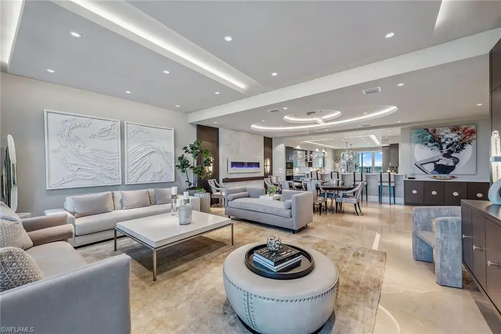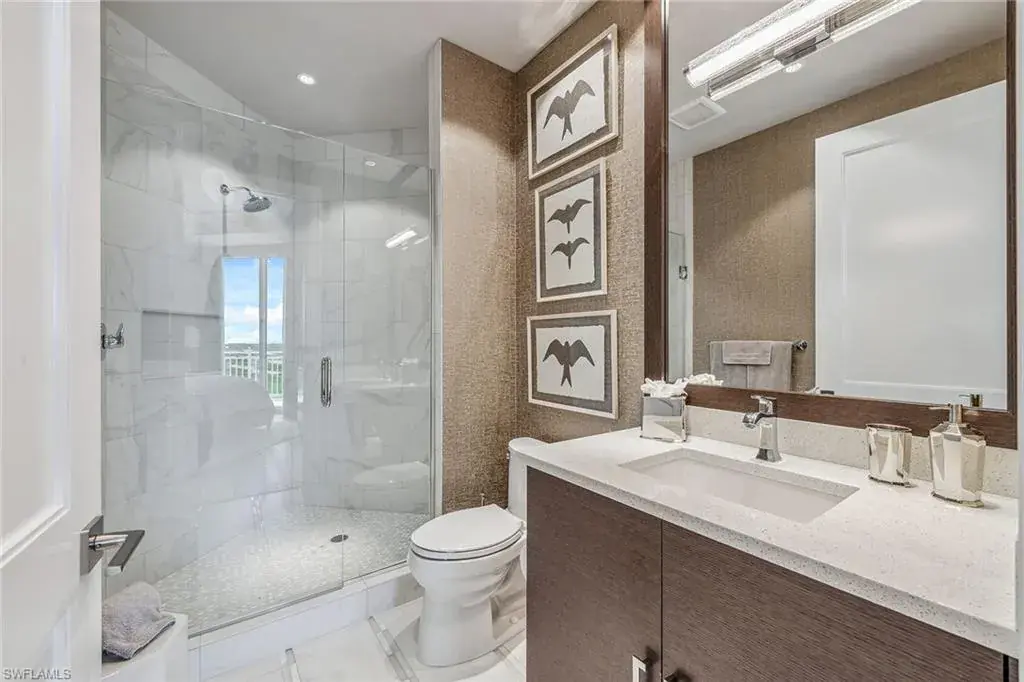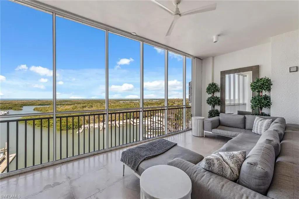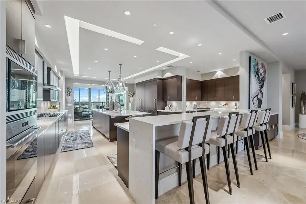 We are excited to introduce you to this exquisite residence in Aqua. This eighth-floor, three-bedroom plus den, 3 ½-half-bath, 3,940 square feet of luxurious living space has breathtaking views of the Gulf to the west and lush green views of the newly constructed Kinsale Golf Course to the east is unique in many ways. This Renee Gaddis meticulously designed residence offers an unparalleled level of luxury and elegance. No expense was spared in bringing in the finest design to afford comfort and sophistication. Enter from your private elevator and be ready to be impressed by the expanse and view of the Gulf and Wiggins Pass. The seamless flow of this residence reflects today’s lifestyle. The designer spacious kitchen and wet bar has beautiful quartz countertops, top of the top-of-the-line appliances and can rightfully be called a chef’s delight. The thoughtfully designed primary suite has spectacular views of the Gulf and includes dual custom-designed closets, a spacious luxurious bath and access to the lanai. You will enjoy the privacy yet natural light of the glass-enclosed office/den offering ample space for relaxation or work. Two spacious guest bedrooms with en suites provide privacy and comfort for your family or friends. The terrace is an outdoor paradise where you can savor breathtaking sunsets, dine alfresco, or simply unwind while listening to the ocean. This home is dripping with style and finesse. Crafted with uncompromising attention to detail, this residence was designed for the most discerning tastes. Aqua is amenity-rich including on-site concierge service, library, two spacious social rooms for casual or elegant entertaining, fitness center, spa treatment rooms, steam and dry saunas, ninth-floor level sky lounge, dog runs, large pool and a private marina. You will not be disappointed!
