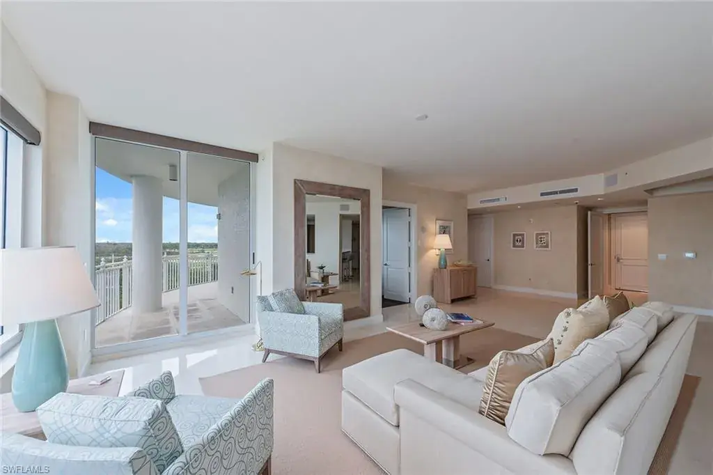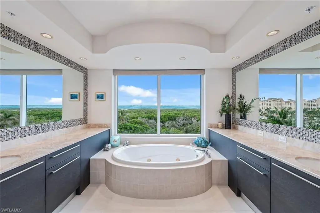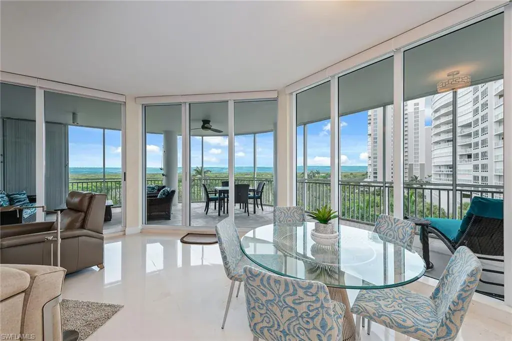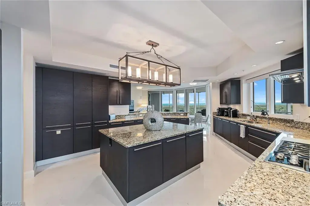 This sixth-floor residence offers unparalleled views of the Gulf of Mexico, Wiggins Pass and Aqua’s own marina from the west and beautiful views of the new Kinsale Golf Course to the east. Almost 4,000 square feet of spacious living area offering three en-suite bedrooms, four full baths and a private den/office. This den/office can be used as a fourth bedroom if needed. The powder room has a full shower that can provide the den/office with the ability to be the fourth bedroom. Step out of your private elevator to enjoy this open-concept, spacious residence. Two separate living areas provide a formal space or a more relaxed area — your choice. The gourmet kitchen has a large center island, Sub-Zero and Wolf appliances, Snaidero custom Italian cabinetry and a large entertaining bar with both a wine cooler and refrigerator. The spacious primary suite and bath offer stunning views and the ability to enjoy tranquility in your own retreat. Two spacious guest en-suite bedrooms provide your guests with privacy where they can relax and unwind. All windows and doors are hurricane-rated, plus hurricane shutters on the outside lanai provide peace of mind. Two spacious parking spaces and a storage unit for your convenience. Aqua is amenity-rich, including an on-site manager and concierge services, library, two spacious social rooms for casual or elegant entertaining, fitness center, spa treatment rooms, steam and dry saunas, ninth-floor sky lounge, putting green, simulated indoor golf, dog runs, large pool and private spaces throughout the grounds. Boat slips are available for purchase. Why wait, when you can have it all and you can have it now!