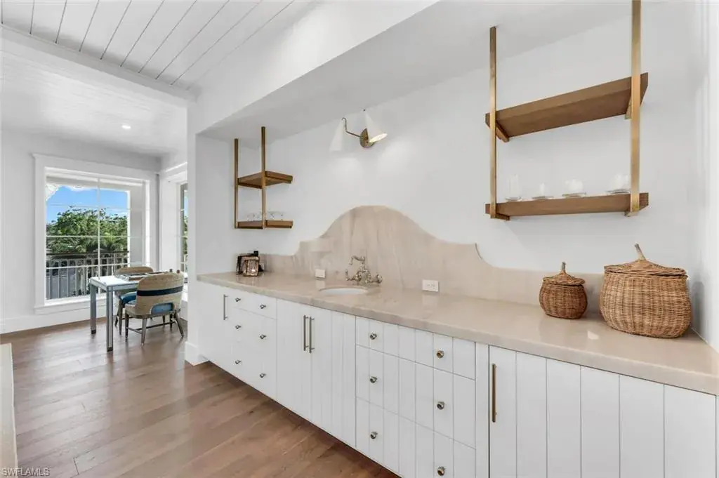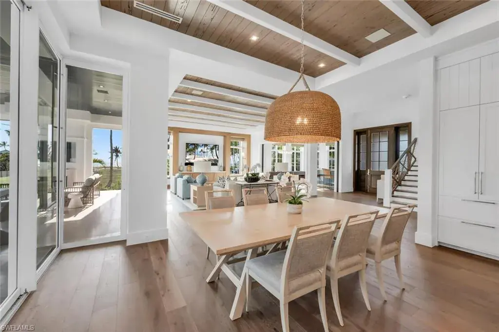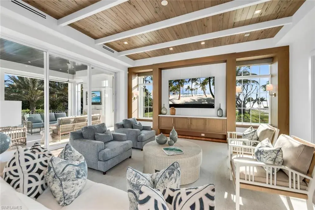 Experience the pinnacle of coastal luxury with this breathtaking Gulf-view estate, a masterpiece by Stock Custom Homes, elegantly designed by Stofft Cooney Architects, and impeccably furnished by Ficarra Designs. Nestled on a full-sized, sun-soaked southern exposure lot, this residence offers nearly instant beach access and a quick drive to Naples’ renowned 3rd Street South. Graced with a sophisticated club room featuring a full bar and mesmerizing Gulf vistas, this home is designed for refined living. The primary suite and a guest room are conveniently located on the main level, while an elevator provides seamless access to all floors, including the garage. The upper level showcases four additional bedrooms, a secondary laundry, a versatile bonus area with a wet bar, and an expansive loggia capturing iconic sunset views. Enhanced for effortless living, the property features remote-controlled hurricane shutters and bug screens, natural gas, a whole-house generator, remote shades, a stunning maintenance-free backyard with a gas fire pit, two 8,000 lb lifts for a car lover’s dream, and a whole-house water filtration system. An exceptional offering, an exquisite blend of timeless design, premier craftsmanship, and an unparalleled coastal location.
