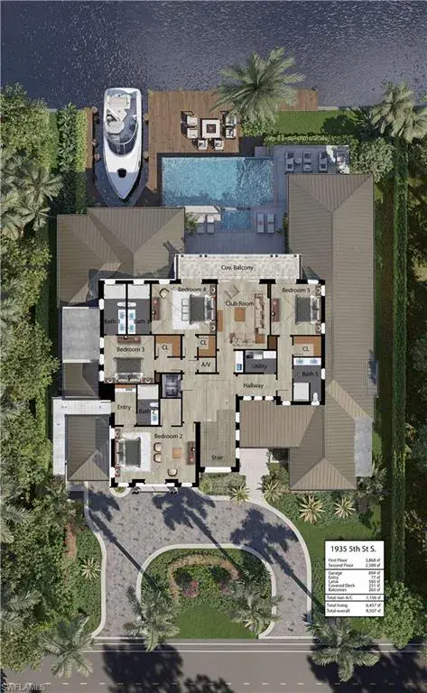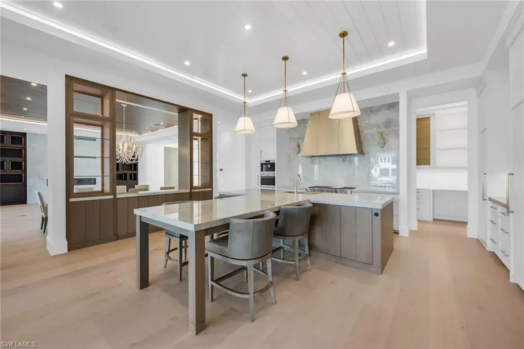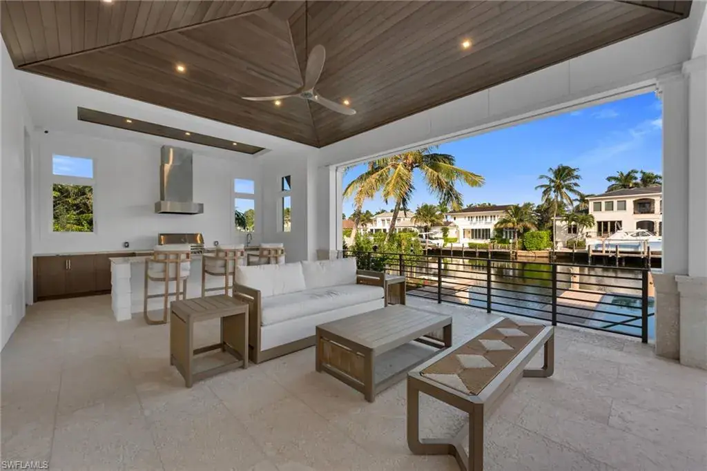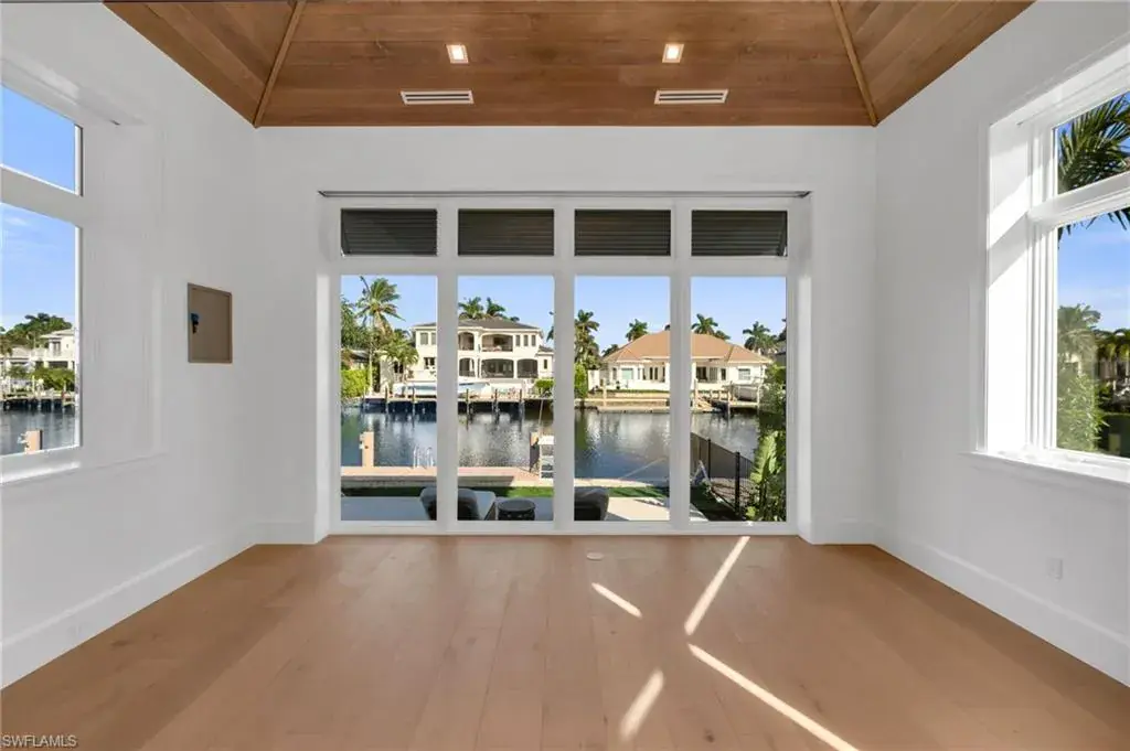 An exciting opportunity on a large lot in Aqualane Shores. Gracious entry to 100 feet at the water and 100 feet at the street lot. One of the best locations with a large water view and direct access to the Gulf of Mexico. Just a short walk to the beach, 3rd street restaurants and shops. Crafted by D. Garrett Construction and architecture by Jon Kukk. This 6,457 square foot home offers high end stunning coastal aesthetic with generous outdoor spaces. Transition from the home interior to the outside Lanai and rare cut in boat slip allowing the stunning waterside area to become part of the homes living experience. Nanny’s apartment with separate exterior entrance. Rufino Cabinetry, HVAC Fresh Air Intake, Humidifier and De-Humidifier, Micro-tile Duct Board for Rigid Air Ducts, Whole House Make Up Air, Kitchen Hood Make Up Air. Wolf 48″ Dual Fuel Range, Sub-Zero Refrigerator/Freezer, Sub-Zero 24″ Wine Storage, Cove and Miele Dishwashers, Wolf Wall Oven, Wolf Coffee System, Zip System Roof, Gulflok Standing Seam Metal Roof with PVDF Paint Finish, Eastern Exposure for enjoyment of Lanai/Patio Area in Late Afternoon and Evening Hours, Built in Electric Storm Shutters/Screens for Lanai and Patio. Coffee bar in mater suite with refrigerated drawers.BOATER AFICIONADOS TAKE NOTE. This property has a Rare 17.4ft x 30ft Cut in Boat Slip PLUS a New Dock along the length New Seawall. CAR ENTHUSIAST TAKE NOTE. A True 3 Stall Air condition Garage with the ceiling height capabilities to add car Lifts for 6 Car Parking.Elevator services garage, 1st and 2nd floor of the house. Home has a 10 ft 1 inch elevation. Completed October 30, 2025. Custom design, finish in this home represents a uniquely high-level design, construction, finish, interior design and furnishings.