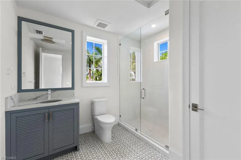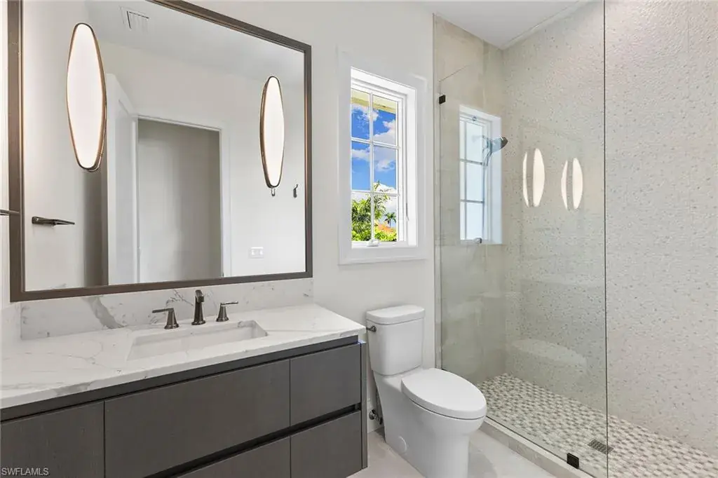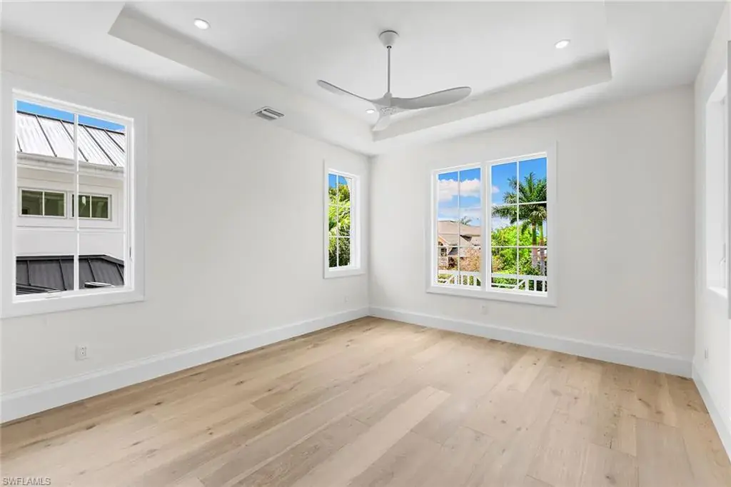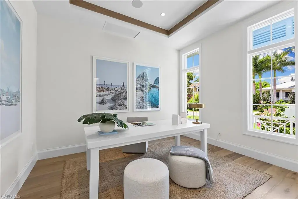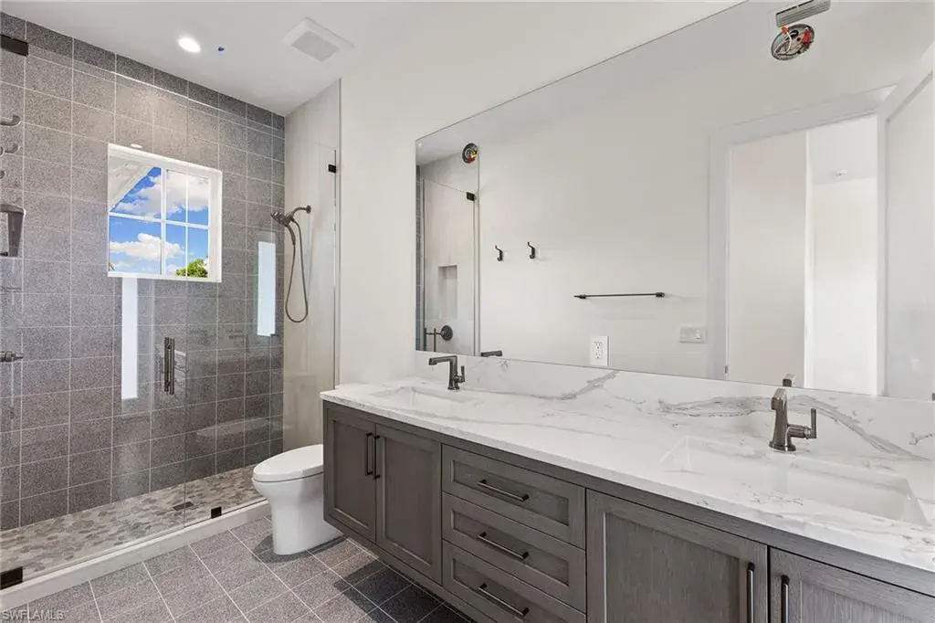 New Aqualane Shores estate situated along one of Naples’ most private streets in the heart of downtown. The six-bedroom, eight-bath, Caribbean-inspired design features two swimming pools, an interior second-floor sleeping porch, oversized balconies, decks and a private cabana suite. Entertaining at home is effortless in the combined great room, dining area and kitchen. Expansive sliding doors open from the kitchen directly to the outdoor living, dining and alfresco kitchen and grill, creating a seamless transition. The primary suite showcases a generous dressing room with wraparound closet. The first floor includes a wine room, elevator, study with private exterior entrance, laundry room, butler’s pantry, powder room and a three-car garage. The great room leads to a lap pool with sun shelf and flush spa, perfect for a morning swim. A second pool with sun shelf and water feature is surrounded by a tropical environment for ultimate privacy. The second floor hosts four en-suite guestrooms with walk-in closets. A detached sixth bedroom is located above the garage with a private entrance and front balcony. Deeded boat dock accommodates a 30-foot boat with direct access to Naples Bay included just steps from the residence. Built by Waterside Builders, designed by MHK.