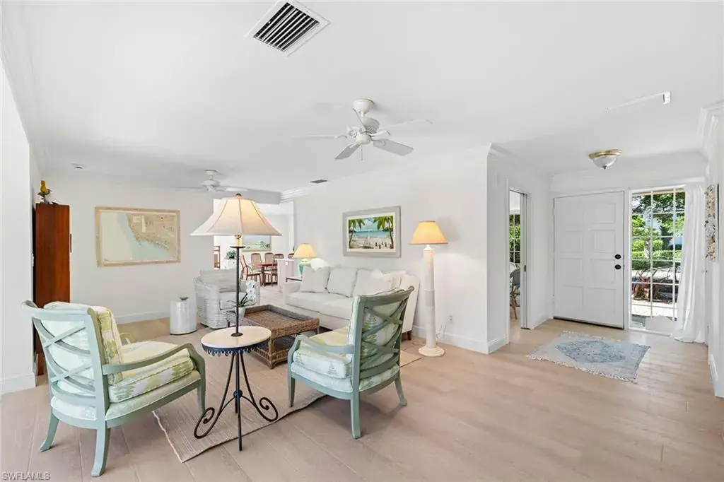 Discover a hidden gem in the exclusive Aqualane Shores neighborhood. This charming spacious three-bedroom, two-bath cottage offers privacy, comfort and a seamless blend of indoor-outdoor coastal living. The living area and updated kitchen boast abundant natural light, creating a warm and inviting atmosphere. The pool area surrounded by lush landscaping is a private retreat ideal for relaxing or entertaining guests. A separate rear-access design off Forrest Lane enhances convenience, while the attached garage ensures practicality and extra storage. Just a short distance from pristine Gulf of Mexico beaches and cultural amenities of Third Street South, this home offers the best of Naples living.