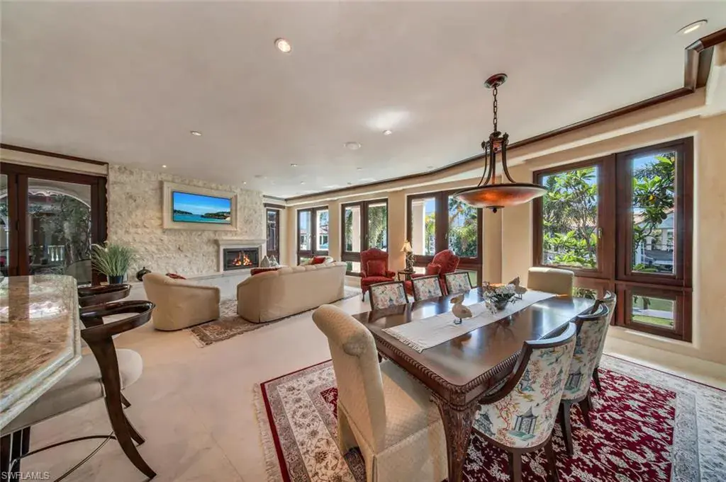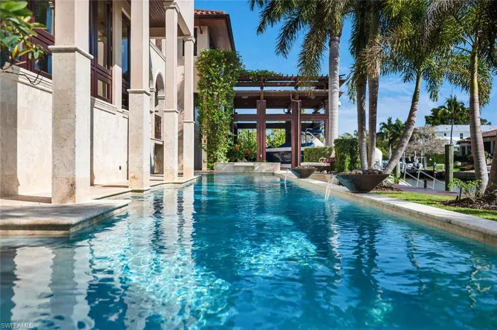 bridge free! Sit and drink your morning coffee or enjoy an evening glass a wine in the many outdoor spaces this home has to offer . Swim laps in the 60 foot salt pool electric and gas heated 8 ft deep throughout. 10 minute walk to the Gulf. 3rd level terrace with views of the Bay to the east and sunset to the west. Unparalleled beauty defined in this Asian-Italian inspired courtyard home. Upon entering through an iron gate you are greeted by a flowing water koi pond, exquisite Marmorino venetian plaster walls on the interior and exterior, Luxbaum windows, stone and rosewood floors throughout highlighted by blooming bougainvillea views enjoyed from angle. Ample space for relaxation and entertaining in the large great room dining kitchen area, 5 bedrooms, 5 full baths, and 2 half baths. The second-floor holds an additional family room with bar and kitchen area perfect for getting away when the family is visiting. The second level the spaces are joined by an interior hallway or an outdoor terrace sitting area to the master suite. The master bedroom has a private sun terrace, a walk-in closet, a large bathroom with dual marble sinks, soaking tub and steam shower. Move-in ready, being offered furnished. Minutes to 3rd Avenue shopping and dining. This home was designed by Tom Pitchard of Matterlake Designs in NYC and built by Garcia Builders . Elevation certificate is available – contact listing agent.