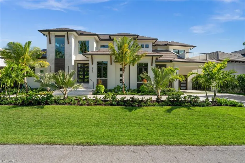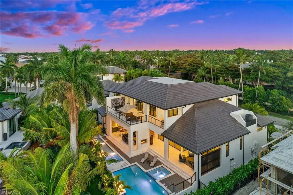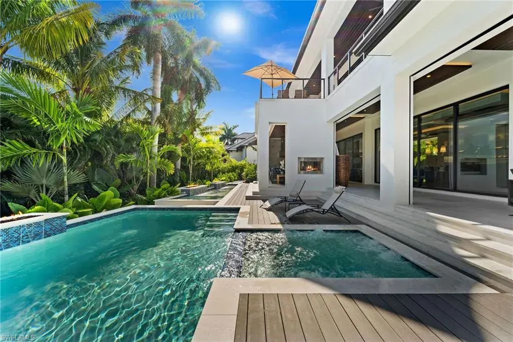 Live the Ultimate Olde Naples Lifestyle. Located just off the iconic Gordon Drive, this newly constructed 2024 masterpiece offers the best of coastal living—direct beach access right across the street and a short stroll to the renowned dining, shopping, and charm of Third Street South. Nestled on a private homesite, this 5-bedroom + study, 5.5-bath home combines exceptional craftsmanship with timeless elegance, creating a sanctuary where luxury meets lifestyle. Every inch of this residence reflects meticulous attention to detail, from the warm wood tones and chic blue accents to the sun-filled interiors and finest designer finishes. Entertain effortlessly with a gas-heated pool and spa featuring cascading water features and fire pits, while an outdoor kitchen and fireplace invite al fresco dining under the stars. Inside, the open kitchen and butler’s pantry are a chef’s dream, complete with a 100-bottle wine cooler and a “hidden” walk in pantry found behind custom cabinet doors. The kitchen and great room create a seamless space for hosting guests for elegant dining or a casual watch party. A Lutron lighting system sets the mood throughout, while an elevator adds ease to daily living—accessing each level from the garage to both levels of the living areas. A generator provides additional piece of mind in addition to the fact that this newly constructed home meets the current codes for storm protection. Guests will be excited to unwind upstairs in the family room, with bar, or retreat to a private wing featuring its own bedroom, bath, living room, breakfast bar and balcony. Each bedroom includes a walk-in closet with custom storage, and the expansive second-floor balconies allow ideal for your guests to enjoy outdoor space right off their bedroom or the upstairs family room.
