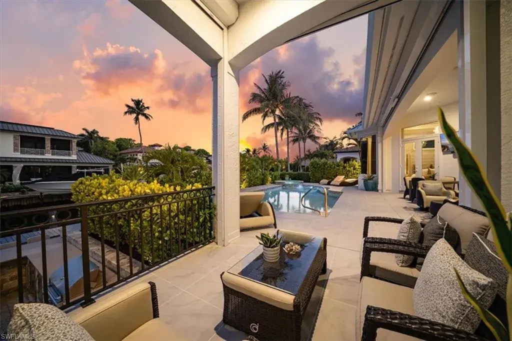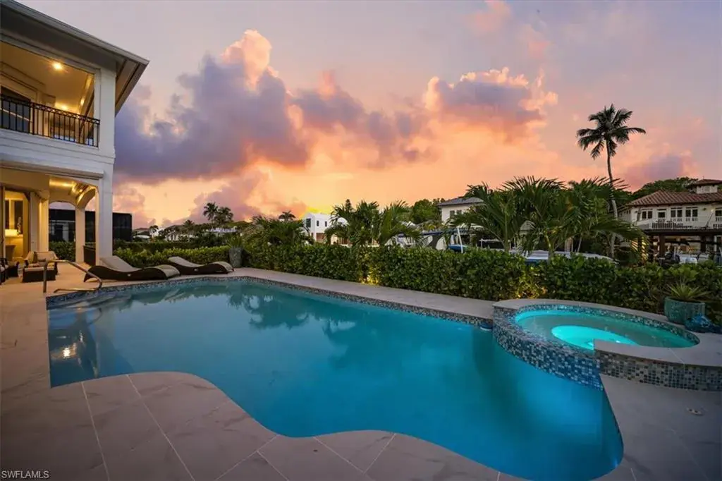 Tucked along a direct Gulf-access canal in prestigious Aqualane Shores, this spectacular estate captures the essence of Naples waterfront living. Offering southern exposure, a new seawall and dock (2023), and a full interior transformation – this home combines timeless coastal design with modern innovation and effortless livability. Designed for those who value refined coastal living, the residence showcases seamless indoor-outdoor flow with a resort-style pool and spa, expansive tiered decking, and an upgraded outdoor kitchen overlooking tranquil water views. Inside, wide-plank oak flooring, soaring ceilings, and elegant millwork create a timeless yet modern aesthetic. The light-filled main level features a grand great room, gourmet chef’s kitchen, and a serene primary suite with direct lanai access, while an additional guest suite provides comfort and privacy. Further highlights include a whole-home generator, upgraded HVAC systems with dehumidifier and garage A/C, new pool equipment, 25,000 lb. boat lift, and all-new televisions throughout. Enhanced landscaping, a comprehensive alarm and camera system, and meticulous attention to detail, inside and out, ensure the home lives as effortlessly as it looks. Just a short walk from Naples’ world-class beaches and the fine dining and boutiques of Third Street South, this Aqualane Shores home exemplifies luxury waterfront living at its finest.