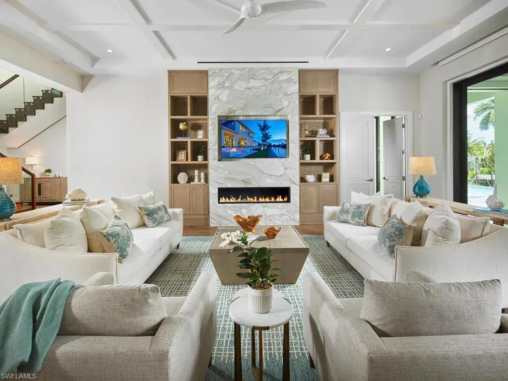 A Home That Defines Naples Living! Nestled in one of Naples’ most coveted waterfront enclaves, this architecturally stunning residence by Stofft Cooney and constructed by Waterside Builders redefines coastal contemporary elegance. Spanning an impressive 8,000 square feet, this amenity-rich retreat effortlessly combines sophistication with the comforts of an intimate luxury lifestyle. Every inch of this thoughtfully designed home has been curated to cater to families, entertainers, and discerning investors seeking a property that embodies both form and function. Upon arrival, the grand entrance opens to an inviting floor plan bathed in natural light, where neutral hues and artful accents create a serene yet striking ambiance. The open-concept kitchen, equipped with state-of-the-art Sub-Zero, Wolf, and Cove appliances, is a culinary enthusiast’s dream. The adjoining breakfast nook is perfect for morning gatherings, while the seamless flow to the dining and living areas makes hosting elegant soirées a breeze. For moments of quiet refinement, the adjacent Club Room offers an intimate setting for poolside conversations or evening relaxation, blending polished sophistication with warm comfort. The outdoor living space, with its shimmering pool and waterfront views, invites al fresco dining and memorable gatherings under the stars. The private owner’s suite on the main level is a sanctuary of tranquility, featuring two oversized walk-in closets and a spa-inspired bath flooded with natural light. Upstairs, a spacious lounge leads to three en-suite guest bedrooms, each a haven of privacy and comfort. The pièce de résistance is a second owner’s suite, complete with a private balcony offering breathtaking water views—an ideal escape for unwinding after a day exploring Naples. Perfectly situated just moments from the vibrant charm of 3rd Street South, the Naples Pier, and the area’s pristine beaches, this home offers an unparalleled lifestyle that embodies the very best of Naples living. Whether you’re hosting family, entertaining friends, or seeking a sound investment in an exclusive market, this property promises it all. Discover your dream today… claim this extraordinary slice of paradise.