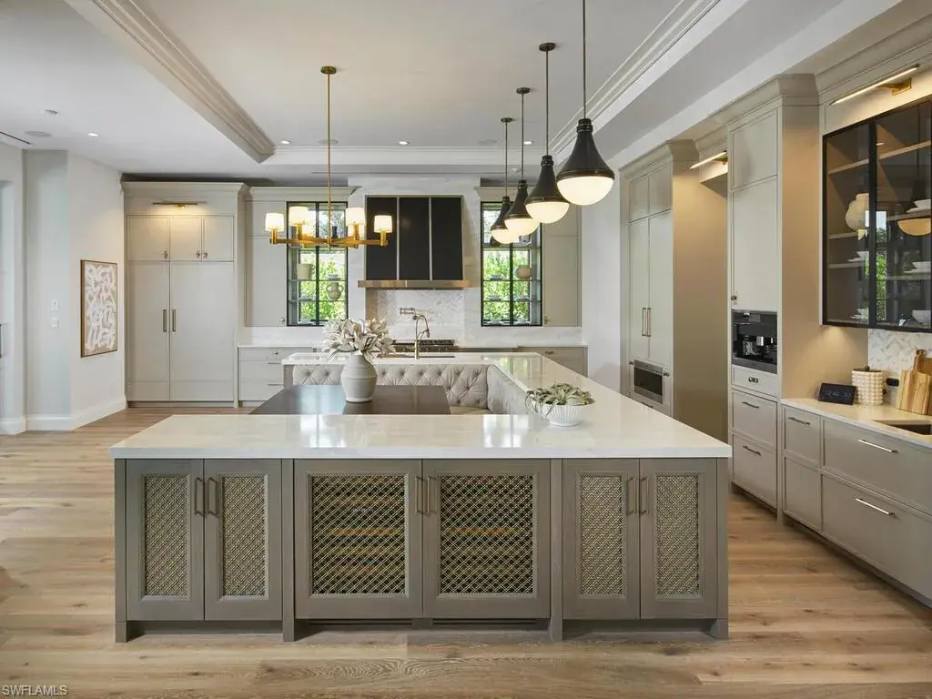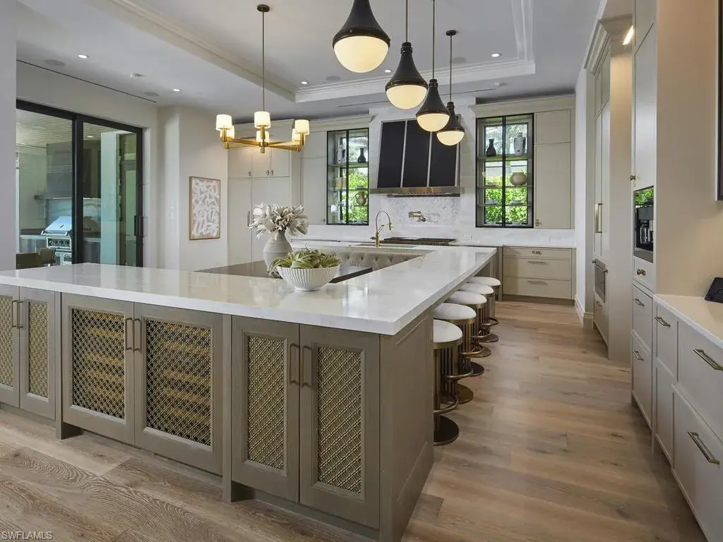 Discover this stunning custom-built five-bedroom haven in coveted Aqualane Shores, mere steps from Naples’ pristine beaches and vibrant 3rd Street South. Nestled on a picturesque waterside lot, this 5,900+ sqft under-air masterpiece boasts an additional 1,200 sqft of finished outdoor living space, perfect for soaking in the breathtaking pool and water views.