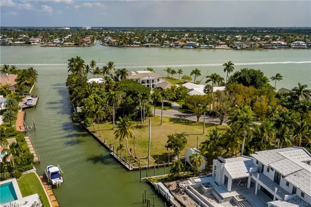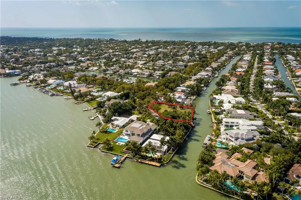One of a kind Aqualane Shores estate lot featuring 181 ft of waterfront and 238 ft of street frontage lined with beautiful mahogany trees. This property measures approximately 27,400 sq. ft.(.63 acres) and is virtually twice the size of a standard Aqualane Shores lot. Here is an opportunity to build your new custom estate home with lots of green space, multiple garages, and extensive dockage for your fleet of boats. Comes with a 60 ft. cut-in boat slip than can be covered with a roof to protect your yacht. This is a car collectors dream! Lot size allows for a motor court and multiple garages to accommodate as many as 8-10 cars with the use of lifts. There is plenty of space to build a separate pool cabana / guest quarters either poolside or above your detached garage. This spectacular building site sits one house away from Naples Bay providing views of the bay from your dock and second story of your new home. Towering royals, coconut palms, gumbo limbos and mango trees add to the uniqueness of this amazing estate sized property. The lot is located at the very end of 18th Ave South in a private setting, walking distance to the beach and 3rd street shopping and dining. This is the last of its kind in Aqualane Shores.