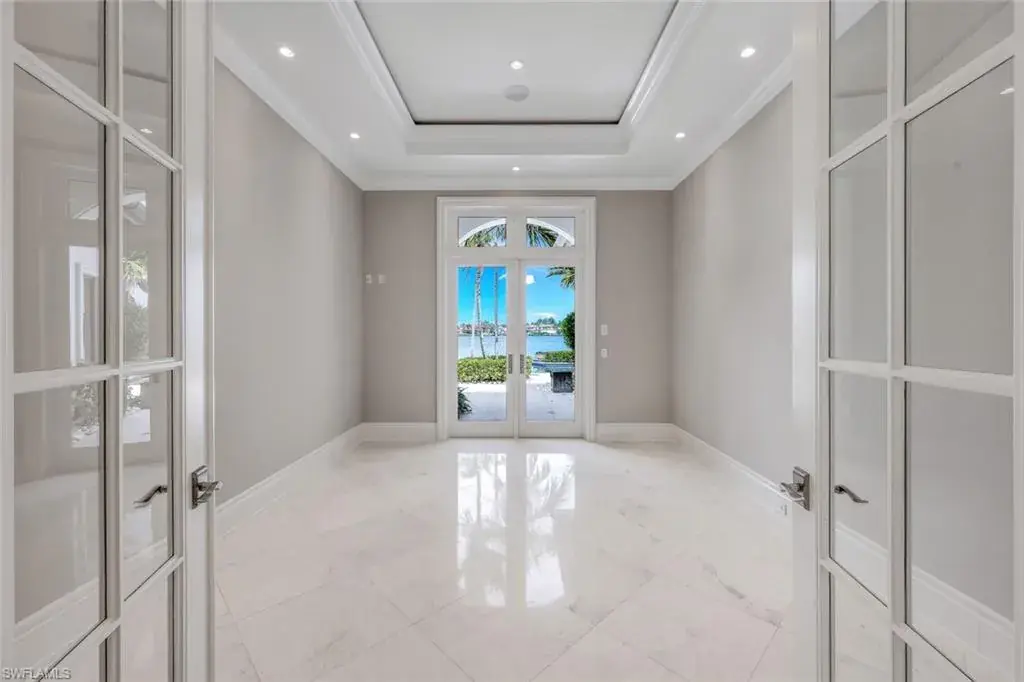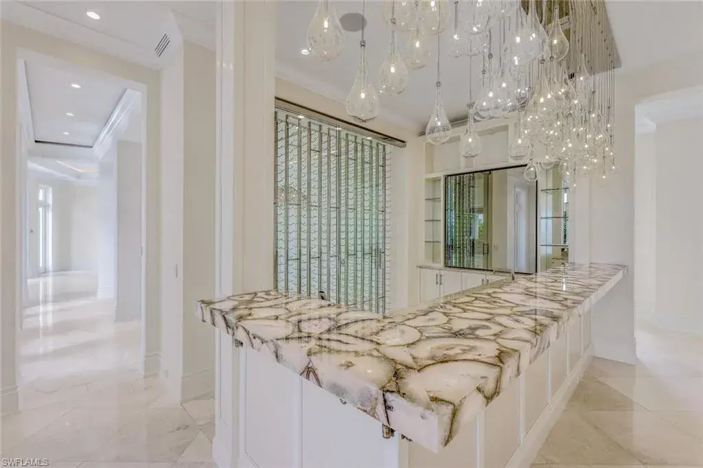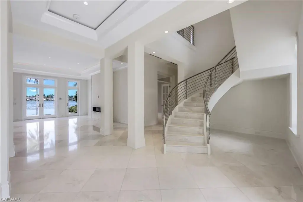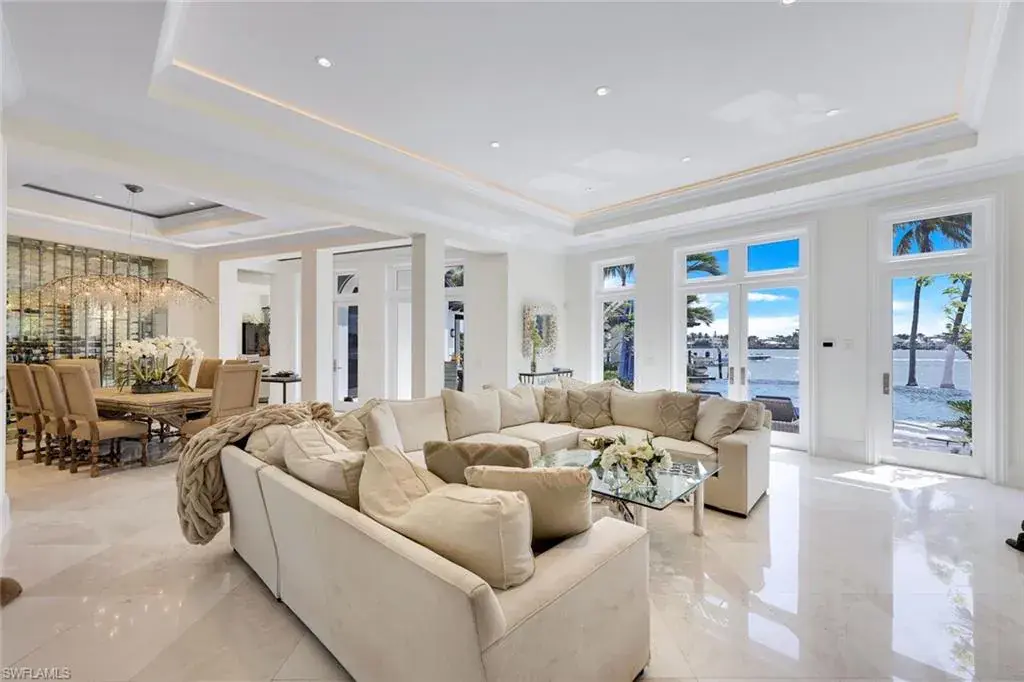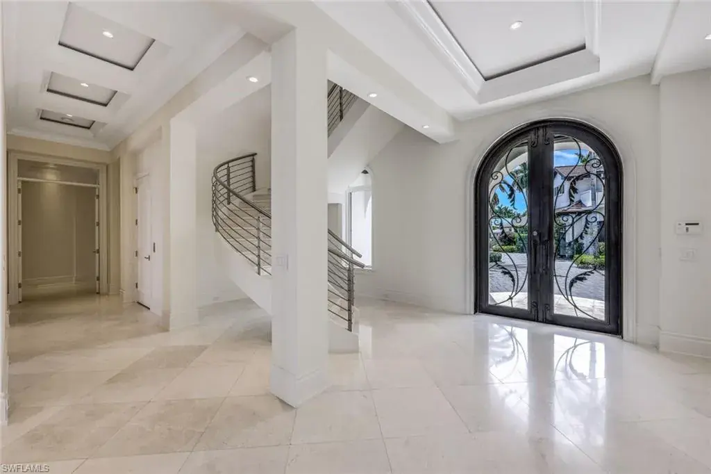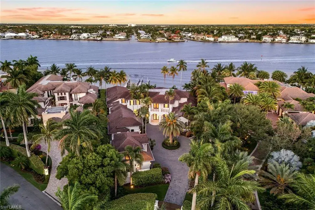 A once in a lifetime opportunity! Seize the chance to own this iconic estate in Naples Florida, a legacy property boasting 158 feet of pristine bay frontage in Aqualane Shores, offering breathtaking views and an opulent lifestyle. Set within private, gated, and expansive fenced grounds, this home features 6 ensuite bedrooms, a theater room, a separate guest house, a glass wine wall, an elevator, and state-of-the-art smart home technology. Minutes from the beach, vibrant 3rd Street South, and the upscale dining and shopping of 5th Avenue, this residence is a sanctuary of luxury. Car enthusiasts will revel in the 6-car air-conditioned motor court with space for additional lifts. Outdoor living is elevated to resort-style entertainment with an infinity-edge pool, swim-up cabana, and a sprawling covered lanai with an outdoor kitchen, including a pizza oven. Boaters will appreciate the 75-foot private dock and two boat lifts. Live life to its fullest, blending superior location with luxurious, tranquil amenities in this timeless estate.