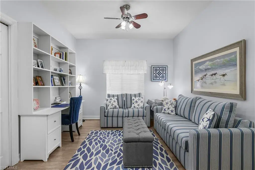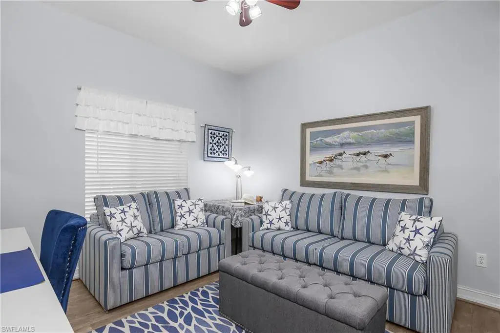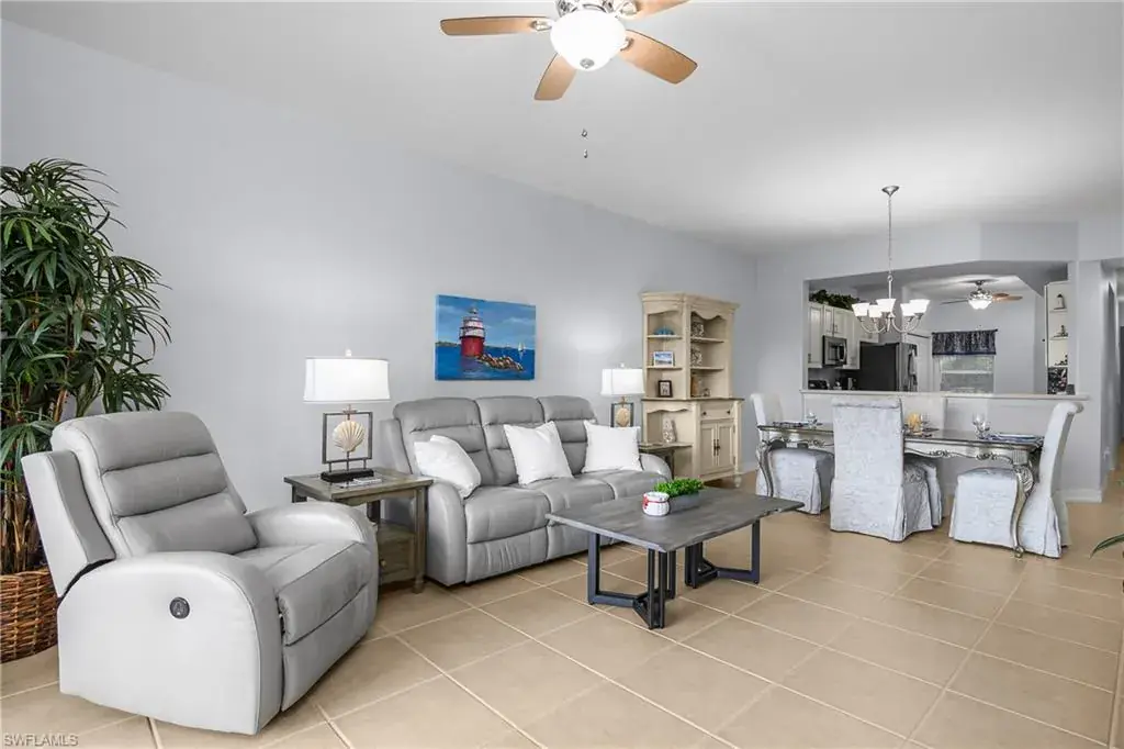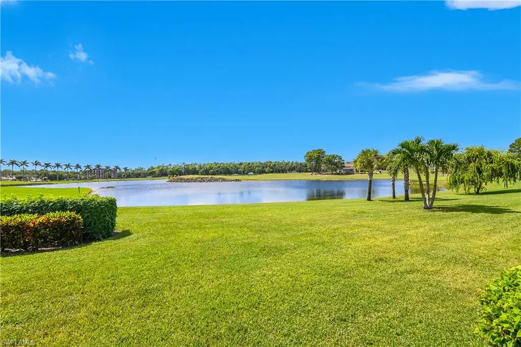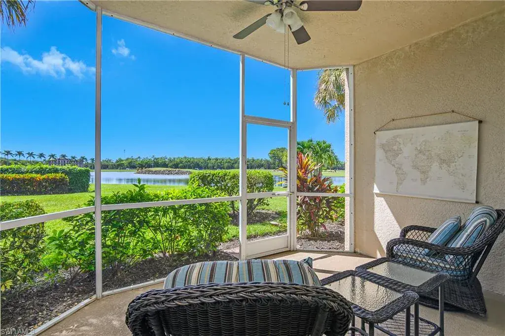 “Discover Your Dream” in Aquamarine at Sunstone, Lely Resort! Imagine a SPACIOUS 1,617sqft living area coach home that’s turnkey furnished with 3 beds, 2 baths,master bath features 2 vanities and large garden tub, NEW kitchen cabinet refacing in eat-in kitchen, NEW washer, a NEW A/C, a NEW roof and a 1 car garage. Guest bedrooms upgraded with vinyl plank flooring. The 2nd guest bedroom can also be enjoyed as an office/den. Enjoy your southerly view on your screened in lanai of a golf course fairway and PANORAMIC lake view. Now, imagine having this charming coach home in a community where beautiful tropical elements such as Royal palms are everywhere and with a community pool. The PLAYERS CLUB and SPA MEMBERSHIP is included. It provides exclusive access to a full selection of amenities such as a large lagoon pool with a waterfall, tiki bar and huts for private gatherings. The Club also has 13 tennis courts, 4 pickleball courts, 4 bocce courts a 6,000 square foot fitness center and spa and a wide assortment of services and multiple dining options. If you’re a golfer, there are two public courses (Flamingo and Mustang) and one private golf course (Classics) available in Lely Resort.