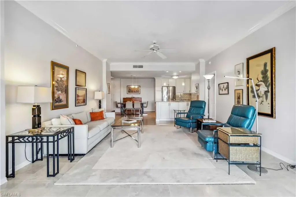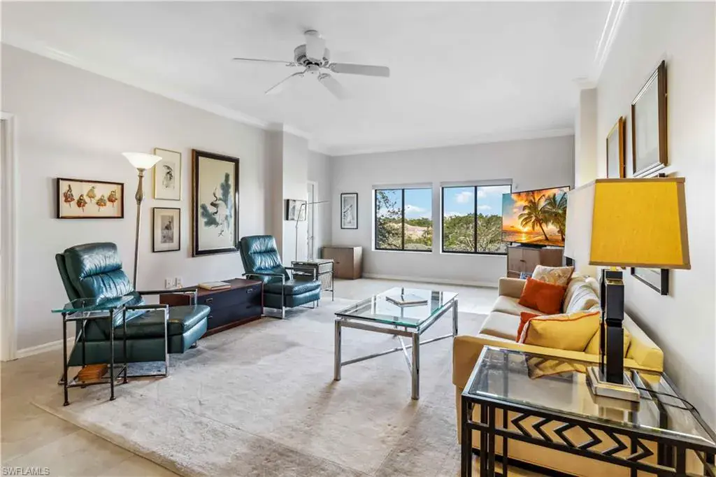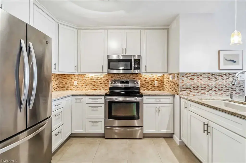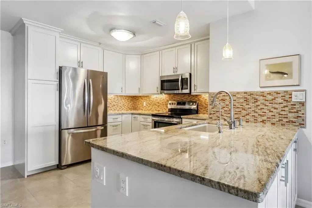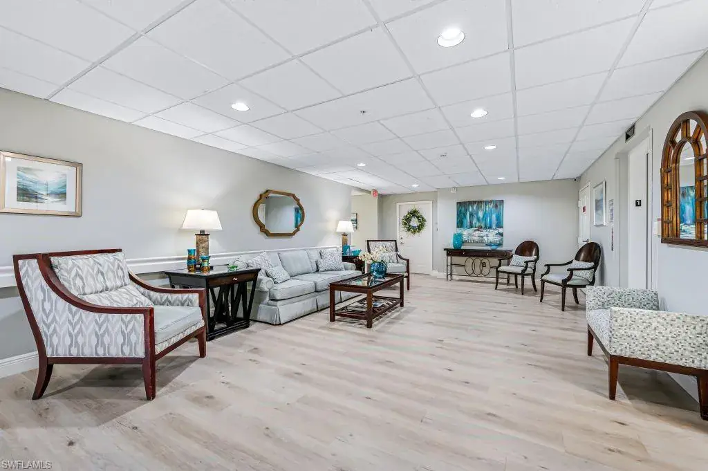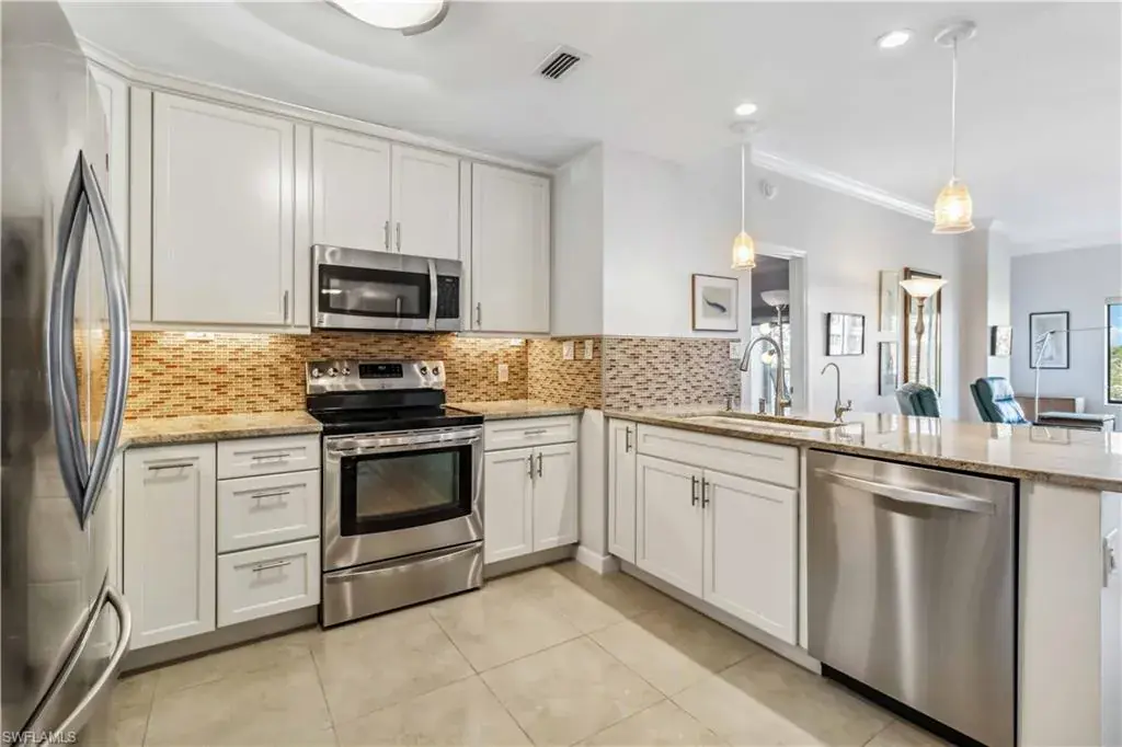 Arbor Trace is a premier destination for 55+ adults offering breathtaking coastal scenery and an active retirement lifestyle. Welcome to your dream home in Arbor Trace, Naples! This stunning fourth-floor condo offers over 1800 square feet of fully renovated living space, featuring three spacious bedrooms and two and a half beautifully updated baths. The modern kitchen is a chef’s delight, with sleek shaker cabinets, stainless steel appliances, and elegant tile flooring. Relax and take in serene lake views from not one, but two private balconies. Plus, enjoy the added convenience of your own private garage space. Monthly condominium fees include all your utilities except property taxes and contents insurance. Arbor Trace is a resident-owned community that offers exceptional amenities, including a resort-style heated pool, fitness center, tennis/pickleball, bocce courts, a golf putting green, two libraries, special events, and gourmet dining at the clubhouse. Benefit from comprehensive support services such as 24-hour medical monitoring, transportation to medical appointments, shopping, and group outings. Arbor Trace is a vibrant 55+ community that offers the unique advantage of deeded condominium ownership with 100% equity and no financial or medical requirements, allowing you to rent, sell, or pass your home to your heirs. Enjoy peace of mind with an onsite continuum of care.