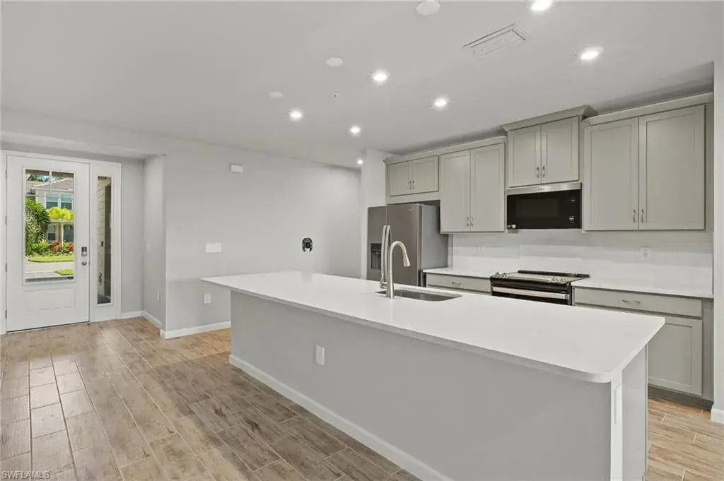 Waterfront view! The Delmar is a 1st-floor coach home that features 1,341 square feet of thoughtfully designed living space with 2 bedrooms, 2 baths, and a 1-car garage. This low-maintenance home features a designer kitchen that includes a spacious island with a breakfast bar that comfortably sits 5 people. With Stone painted cabinets and New Carrara Marmi quartz countertops, this kitchen really shines. The kitchen flows seamlessly to the dining area and Great Room. Three large windows provide an abundance of natural light into the home. The owner’s suite is sunbathed by 3 large windows and features a private owner’s bath with a generous walk-in closet. The 2nd bedroom is located conveniently near the 2nd full bath. The covered, screened lanai provides a beautiful setting to enjoy the beautiful Naples weather. Photos, renderings and plans are for illustrative purposes only, and should never be relied upon and may vary from the actual home. The photos are from a furnished model home and not the home offered for sale.