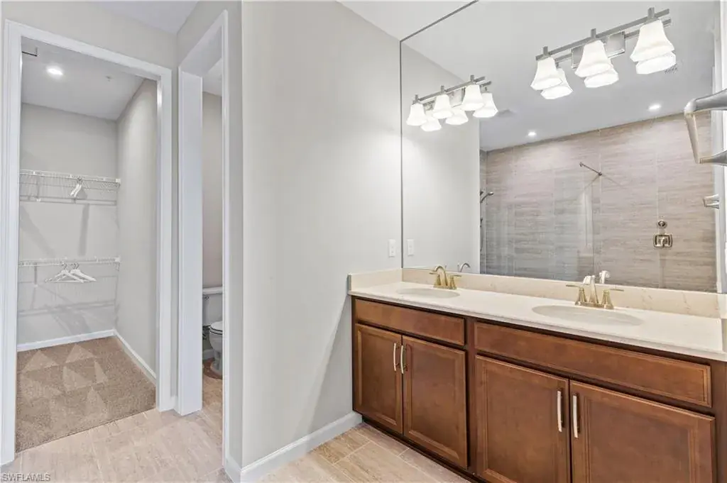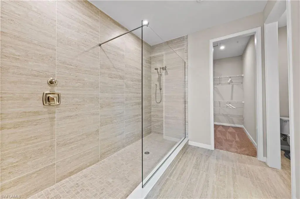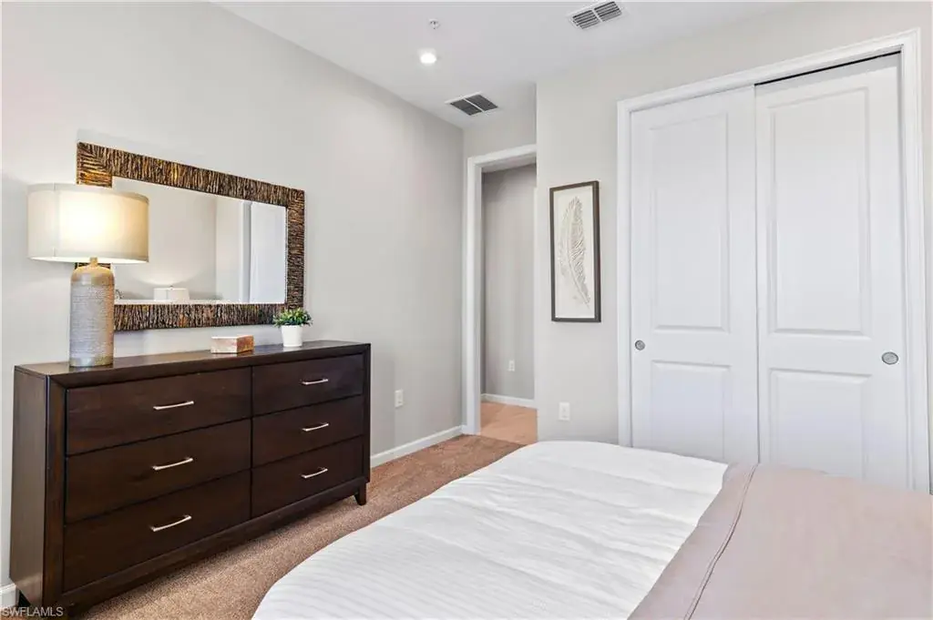 The private owner’s suite boasts water views, a spacious walk-in closet, and a spa-inspired bath featuring a dual vanity and a luxurious walk-in shower with glass enclosure. The secondary bedroom includes its own balcony, a charming retreat with natural light and outdoor access.