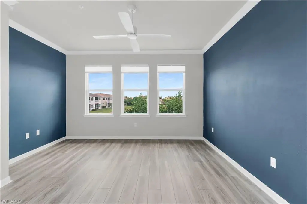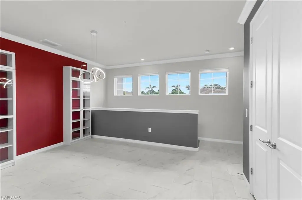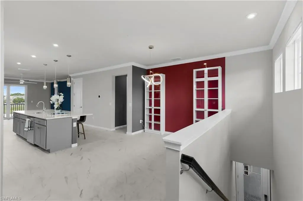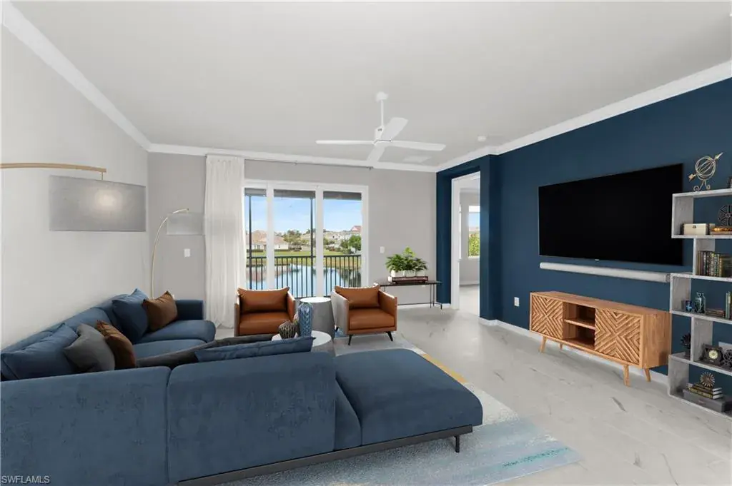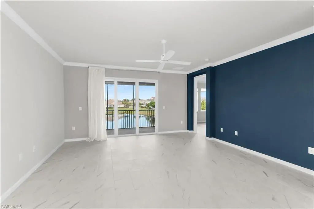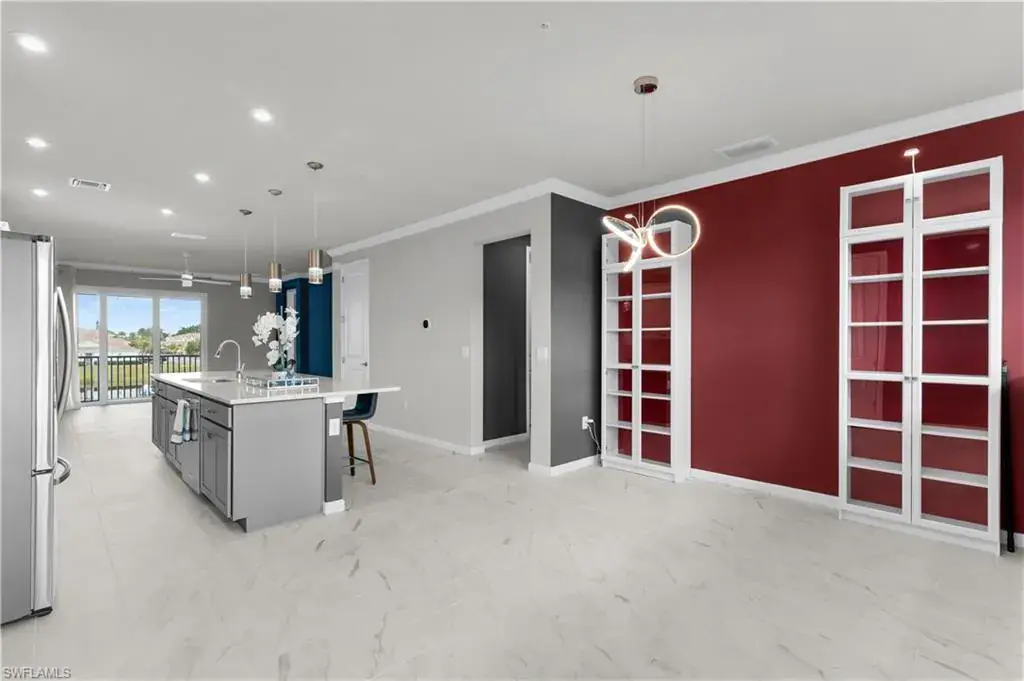 The main living areas are enhanced with marble-style white and gray ceramic tiles ,modern luxury vinyl flooring runs through the bedrooms and closets, all complemented by crown moldings, recessed lighting and a sophisticated wall color palette adding a refined touch to the space.