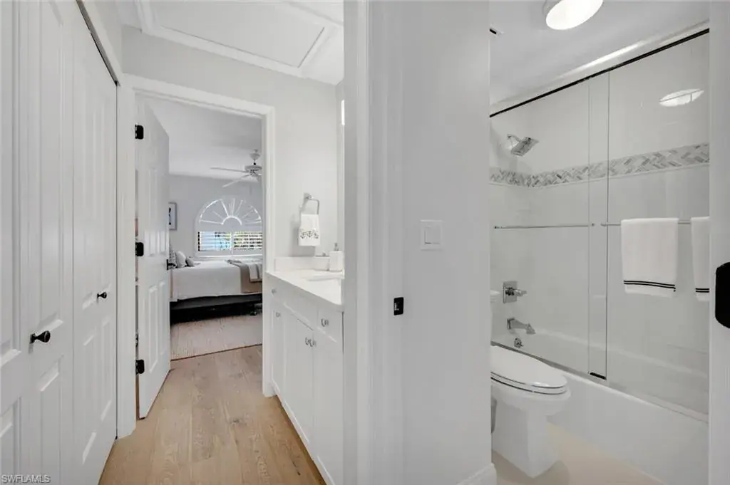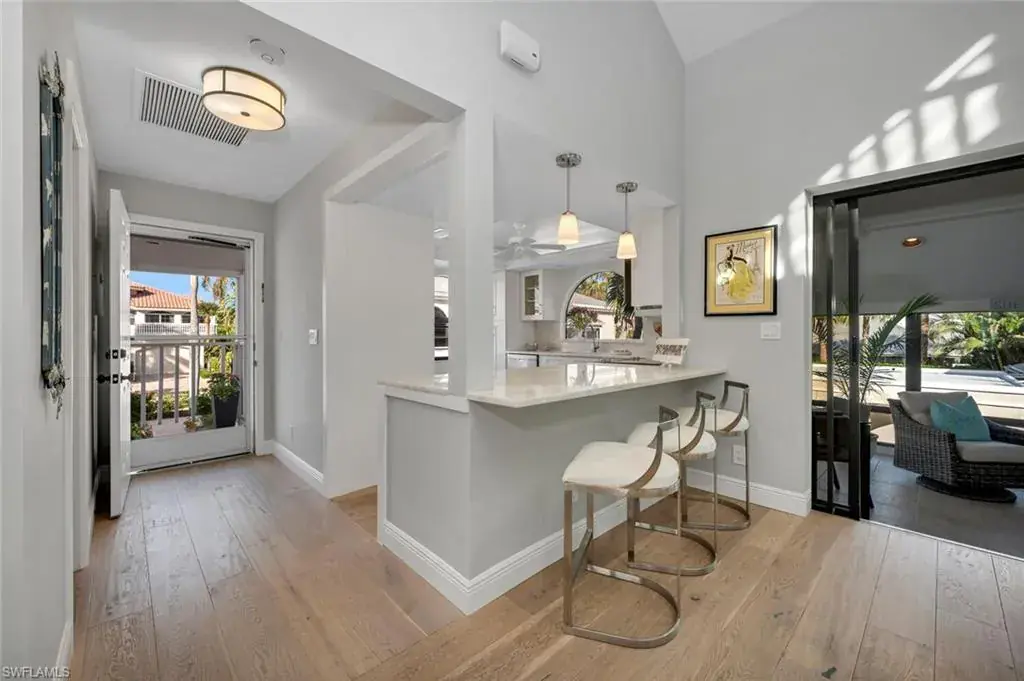 Magic of Olde Naples .. Amazing 3 Bedroom Updated condo with loft and enclosed lanai for wonderful living space at amazing price Rarely available condo with light beachy vibes and timeless quality featuring European hardwood white Oak wide plank flooring, Crisp white kitchen with quartzite and newer stainless appliances with light spilling in from unique windows. Split bedrooms are perfect for guests’ privacy. Spacious primary bedroom with ensuite has wonderful California closets and beautiful marble bathroom. Loft with a 360 degree view of 3rd St. can be Office, yoga studio or 4th Bedroom Single car garage Community Pool Come live the city life with iconic Saturday morning Farmers Market on 3rd St., Parades, Art Shows, Great shopping and Amazing restaurants and… a beach. 3 blocks away Come to Paradise