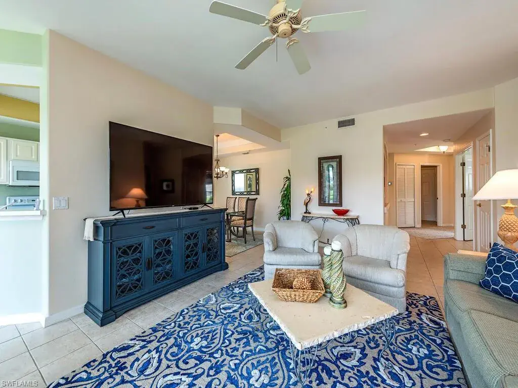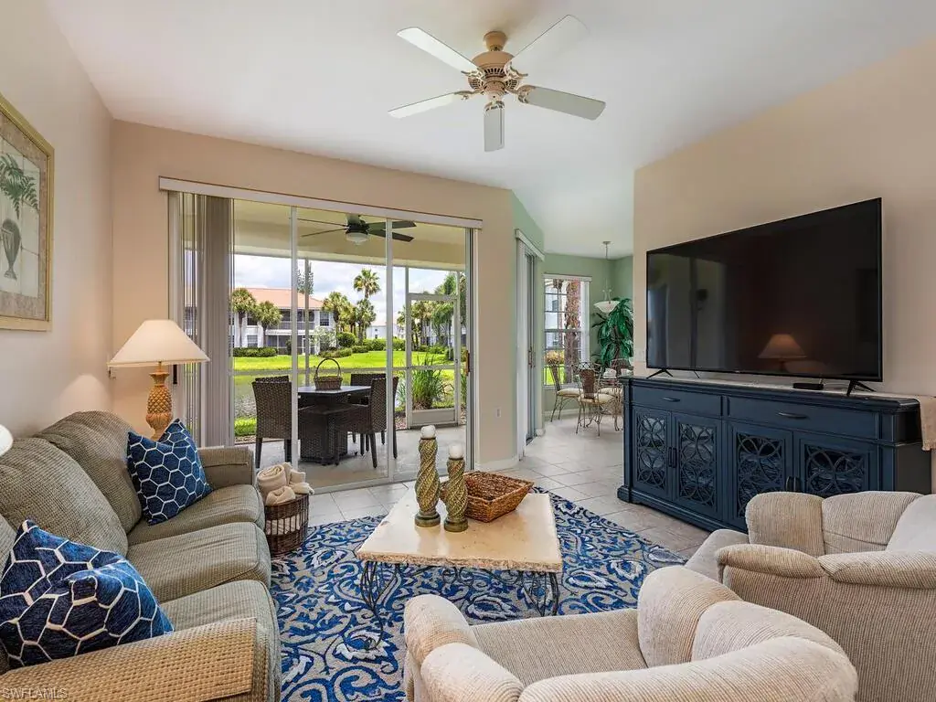 Immerse yourself in luxury living with this exquisite 2-bedroom plus den, 2-bath condo nestled within the prestigious Pelican Marsh community. Offered turnkey furnished, this meticulously designed residence boasts tile throughout, creating a sleek and contemporary ambiance. The thoughtfully crafted split floor plan ensures privacy and comfort, while the single-car garage provides convenience and security.