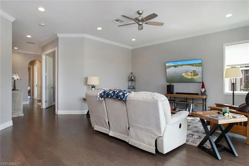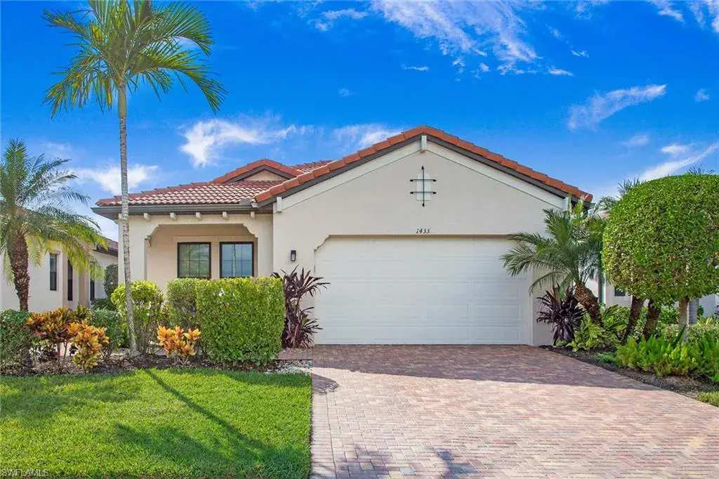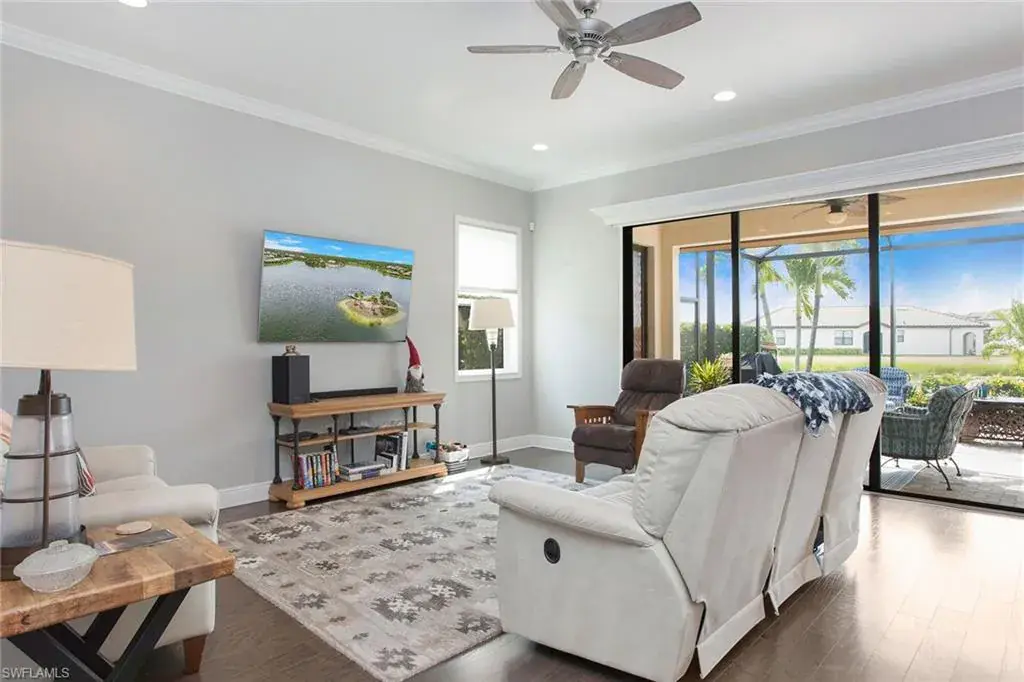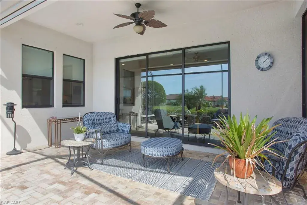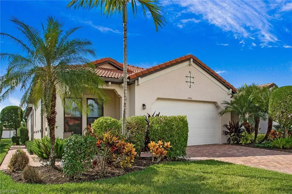 Welcome to Artesia, one of Naples newest private gated lifestyle communities offering an abundance of amenities. Built by renowned WCI, this beautiful waterfront Sand Dollar model features luxurious high-end finishes and valuable upgrades throughout including generator, solar panels for electricity and hot water heater, whole-house water filtration system, porcelain tile flooring, low maintenance COREtec luxury wood-look vinyl flooring, Closet Factory custom primary closet, UV in-duct air purifier, newly installed impact-resistant windows, custom window treatments throughout, Storm Smart hurricane screens, upgraded 8-foot interior doors, upgraded crown molding and trim, extended lanai and enclosed front porch with Fabri-Tech screens, soothing hot tub and potential to build the pool of your dreams. The well-appointed kitchen features a large walk-in pantry, 42-inch upper cabinetry, under-cabinet lighting, custom tile backsplash, high-end stainless-steel appliances, granite countertops, expansive breakfast bar and adjacent dining area. The expansive and private master suite features a dual sink vanity with Arabescato Bianco marble countertop, stylish custom-tiled shower, discreet water closet and a spacious walk-in closet with custom built-ins. The den offers the potential for a third bedroom. Convenient laundry facility with utility tub and storage cabinetry. Oversized extended screened-in lanai with gorgeous waterfront sunset views. Charming covered front porch with eastern sunrise exposure. Enjoy the modern clubhouse featuring festive community social events, resort-style swimming pool, three newer pickleball courts, two newer bocce ball courts, billiards room, fully equipped gym, exercise and craft classes, movie theater, dog parks and lakeside recreational paths. Short drive to downtown Naples and Marco Island, the best of both worlds. The HOA fee includes cable and internet. No CDD fee. Homeowner has flood insurance. Small refrigerator in kitchen and chest freezer in garage are excluded.
