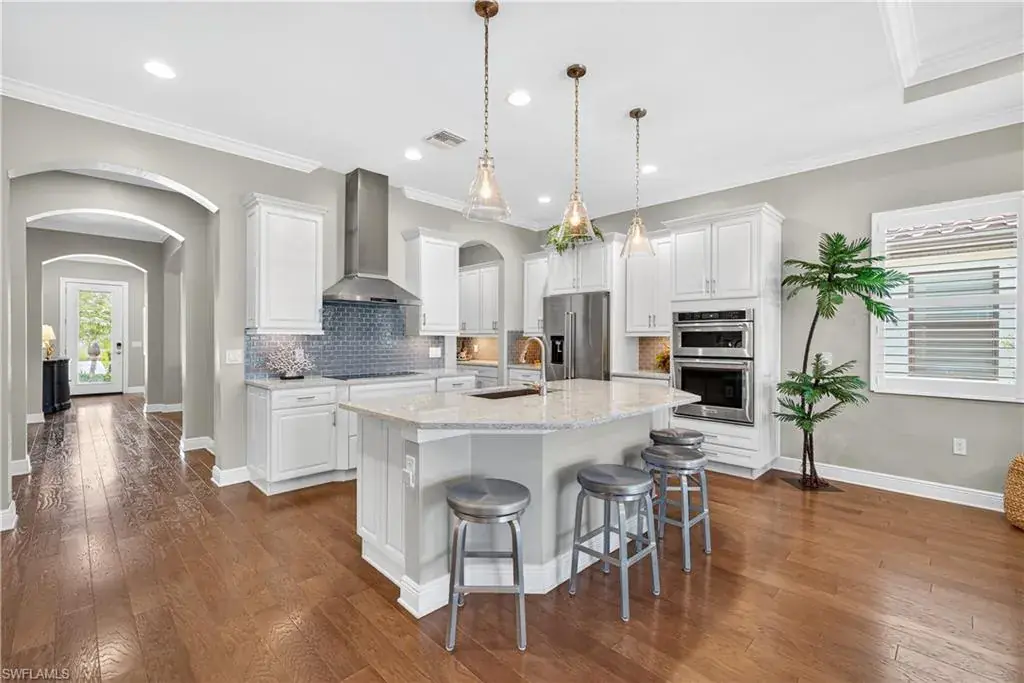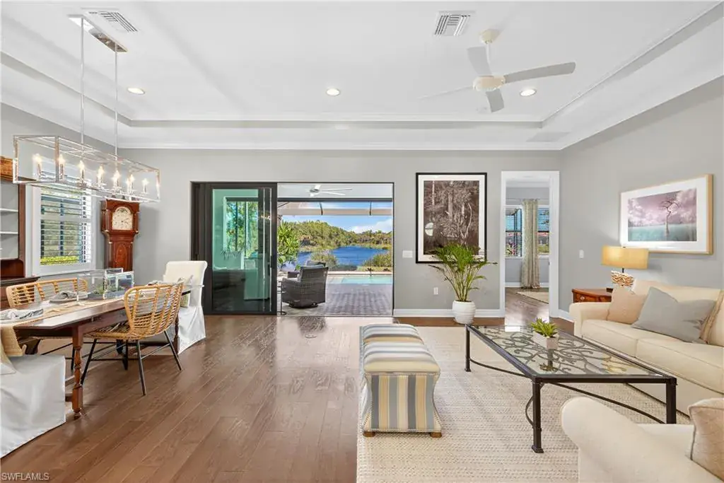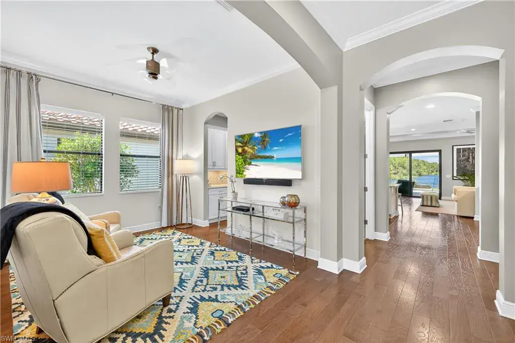 Experience the pinnacle of refined coastal living in this impeccably designed 2,420 sq. ft. WCI residence, where serene lake and preserve views greet you the moment you step through the door. Built with impact-resistant doors and windows, this 3-bedroom plus flex/dining room/den/study, 4-bath home blends timeless craftsmanship with modern sophistication.