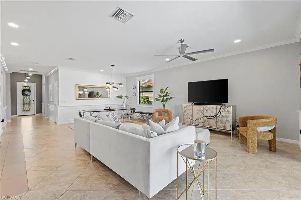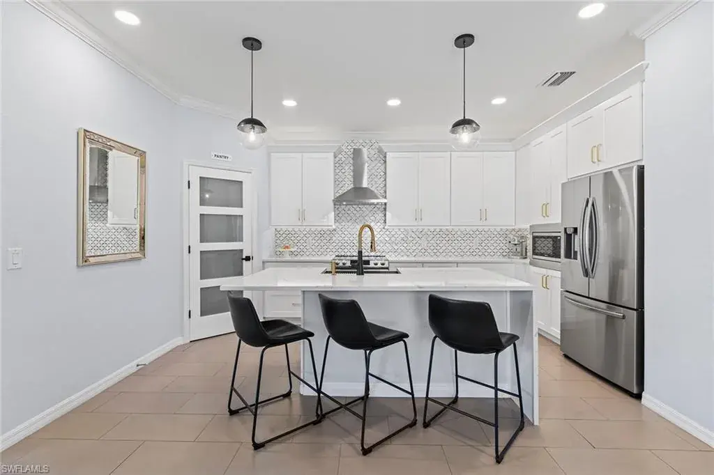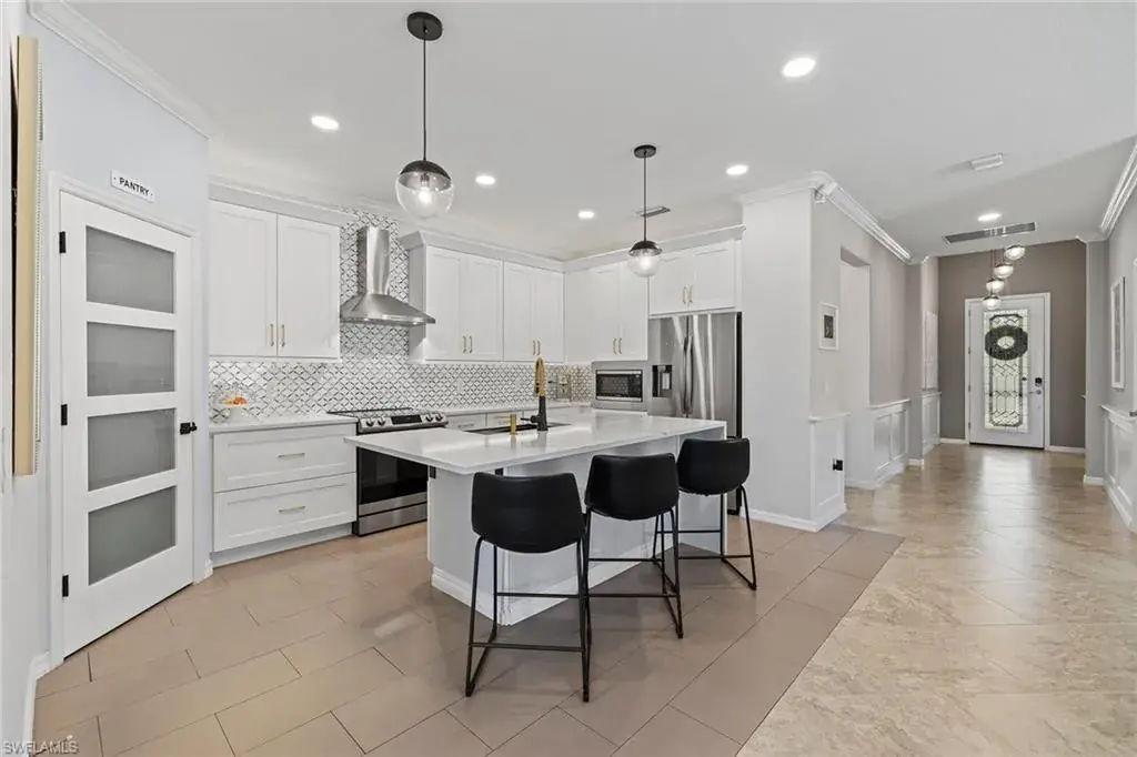 In the prestigious Artesia community of Naples, this exquisite lakefront home offers luxury living at its finest. A beautifully updated white kitchen with an oversized island is the heart of the home, ideal for entertaining. The expansive main suite boasts a spa-like bath and dual walk-in closets. A second en-suite bedroom ensures privacy for guests. Step outside to a serene oasis with a sparkling pool, relaxing hot tub and breathtaking water views. Enjoy peace of mind with a whole-home generator and water filtration system. Artesia’s resort-style amenities include pickleball, a clubhouse with a kitchen and theater room, and a stunning community pool. Just minutes from Naples and Marco Island’s world-class dining, shopping and beaches, this home is the epitome of Florida luxury.