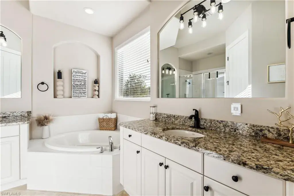Back to Market – Just in Time! =) Located in the gate-secured enclave of Ashton Place within the premier Lely Resort, this stunning one-story home offers the ideal blend of resort-style living and serene privacy with automatic access to The Players Club & Spa. Step into this refined, yet relaxed Florida living. The perfectly planned 3-bedroom / 2-bath layout (plus den/living room or flex space) features tile flooring throughout, volume ceilings, abundant natural light, and a seamless indoor-outdoor connection. Prepare to be delighted by the gourmet kitchen—granite countertops, breakfast bar, ample cabinetry, large pantry—and then gaze out through expansive sliding glass doors into your private backyard oasis. The oversized lot provides no rear neighbors and lovely lake views. Outside, your screened lanai overlooks the sparkling pool & spa combo—ideal for relaxing at sunset or entertaining friends and family. The tranquil lakefront setting enhances the ambiance. As a resident of Ashton Place at Lely Resort, you’ll also enjoy exclusive access to the acclaimed The Players Club & Spa—featuring resort-style pools, full-service spa, fitness center, tennis & pickleball courts, and dining. Golf lovers take note: 3 championship courses lie right at your doorstep. Whether you seek a full-time residence or a premium seasonal retreat, this turnkey property invites you to “live the Naples life” in style—with top-notch luxury, privacy, and location.