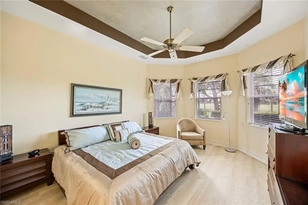 Come home to a well-maintained and updated, Stock Tivoli model, pool home in the gated community of Ashton Place. This bright and airy home boasts scenic views of the Classics Golf course driving range, so no carts intruding on your privacy while you relax in your heated pool or enjoy your spa. This home’s many features include three spacious bedrooms, a den, formal dining room and kitchen open to the great room. The kitchen has been upgraded with mesmerizing, marbled quartzite countertops, and stainless appliances that include a convection range. The front door has decorative impact glass for additional natural light. The guest bath has also been given a facelift. Hard flooring throughout, the living area has diagonal tile and bedrooms have luxury vinyl. There are tray ceilings complementing their height, and custom window treatments. The primary bath features a decorative listello in the spacious shower. This home includes deeded membership to the award-winning Players Club and Spa. The club is considered to be the gold standard in resort community recreation and features three pools, 13 tennis courts, four pickleball, four bocce courts, an attended fitness center and full-service spa. The two club restaurants offer indoor and outdoor casual and elegant dining. Lely Resort is conveniently close to all amenities, restaurants and beaches of Marco Island and downtown Naples.