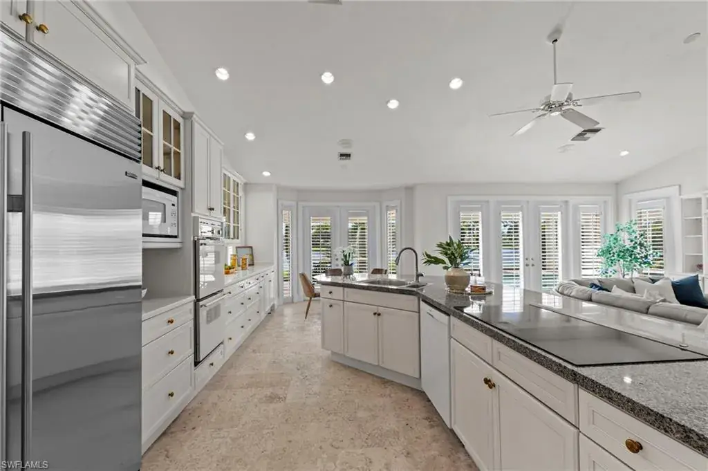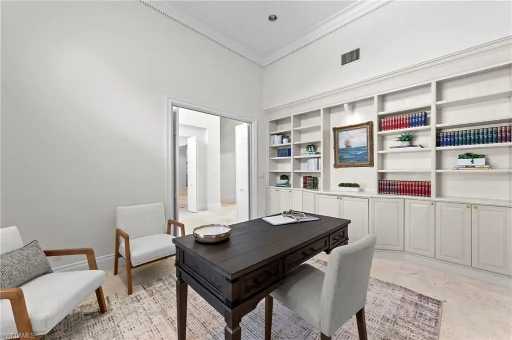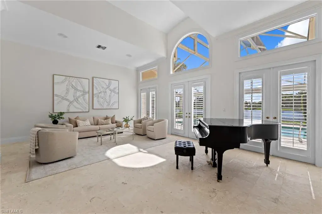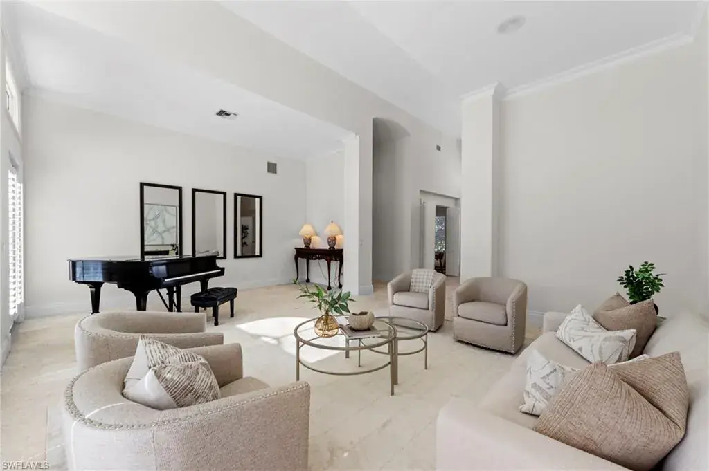 Experience timeless elegance and panoramic water views at 780 Brentwood Point, a distinguished estate tucked in Audubon Country Club of North Naples. This impressive 3-bedroom plus den, 3.5-bath residence spans nearly 3,900 square feet on a .45-acre lot, perfectly positioned to capture an ideal southern exposure and wide lake view that fill the home with natural light from sunrise to sunset. Inside, the freshly painted interior creates a light, bright ambiance enhanced by travertine flooring, soaring ceilings, and expansive windows throughout. The open-concept design offers effortless flow between formal and casual living spaces, while the oversized screened lanai extends the living area outdoors – surrounded by lush tropical landscaping and tranquil water views, perfect for relaxing or entertaining. Within Audubon Country Club, residents enjoy a premier lifestyle highlighted by an 18-hole championship golf course, Har-Tru tennis courts, pickleball, a state-of-the-art fitness center, and a resort-style pool. The newly renovated clubhouse offers both fine and casual dining options and a vibrant year-round social scene. Ideally located west of U.S. 41, just minutes from Naples’ beaches, dining, and shopping, this exceptional home is set against one of Audubon’s most scenic backdrops and offers the perfect blend of natural beauty and relaxed sophistication that defines country club living in Naples.