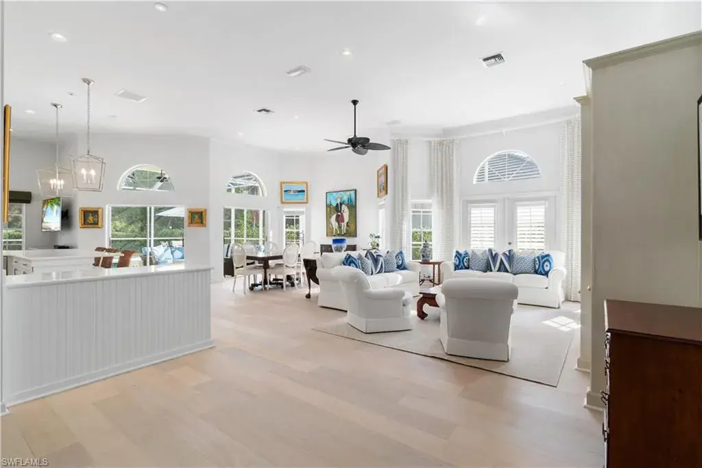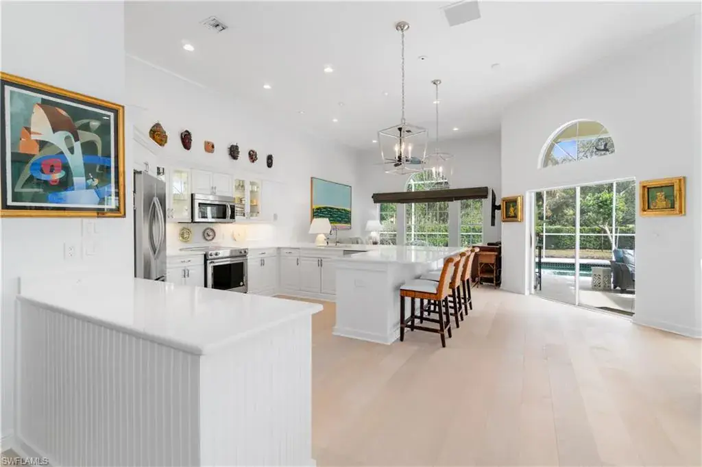 This beautifully renovated home, situated along the golf course in the prestigious “Audubon Golf & Country Club” in North Naples, offers an exceptional living experience. With a bright and airy open floor plan, it features 3 bedrooms, 3 baths, soaring ceilings, stylish wood-look tile flooring, and a brand-new roof (2024). Relax in privacy on your screened-in lanai, complete with a pool, newly installed pool deck pavers (2024), and ample space for lounging, all surrounded by lush landscaping. The chef’s kitchen has been beautifully remodeled with pristine white quartz countertops, elegant white and glass-enclosed cabinetry, stainless steel appliances, including an electric range and wine refrigerator, and a convenient breakfast bar. The spacious primary suite features private lanai access and a luxurious, updated bathroom with dual vanities, a large walk-in shower, and separate soaking tub. Additional upgrades include new pavers on the driveway and walkway (2024), fresh interior and exterior paint, and a remodeled guest bath. “Audubon Golf & Country Club” offers unparalleled amenities, including 24-hour gated security, an 18-hole championship golf course, tennis, pickleball, a scenic Bayside boardwalk, and a newly renovated clubhouse with dining options. Residents also enjoy access to a brand-new, spectacular poolside club and café. Just 5 minutes from Mercato and Southwest Florida’s world-renowned beaches, this home is ideally located for the ultimate in convenience and luxury living.