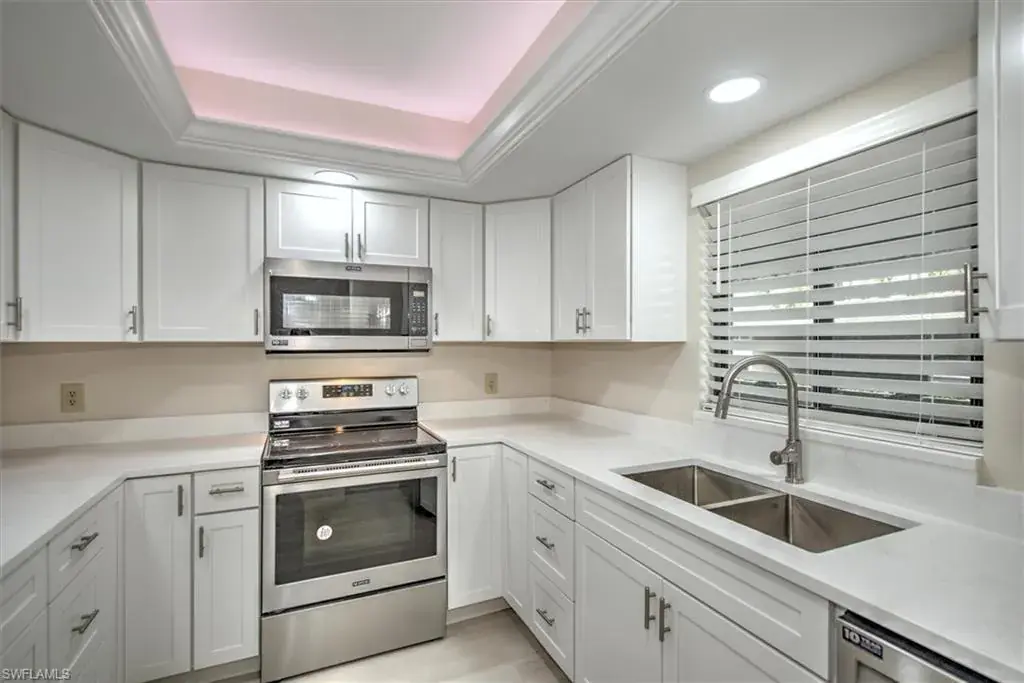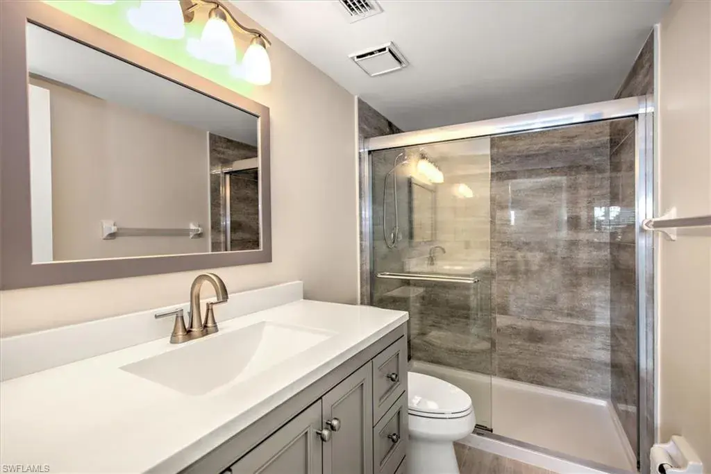 This beautifully renovated 1st floor residence, featuring 2 bedrooms and 2 bathrooms, is ready for you to make it your own. The property boasts new LVP flooring throughout. The seller has meticulously rebuilt both bathrooms from the studs, incorporating new tiled showers, vanities, sinks, faucets, lighting fixtures, toilets, tiled flooring, new doors, and custom sliding shower doors. As part of the renovations, there is a new kitchen with quartz countertops, stainless-steel appliances, and new cabinets, lighting, and plumbing fixtures. The windows have been replaced with high-impact storm windows. There are new closets with ample storage, new doors, and new hardware. The bedroom doors have also been replaced with new hardware. The entire residence has been repainted and fitted with new baseboards throughout. The lanai area has storm protection shutters. A new HVAC system was installed in 2024. This property features an enclosed carport with ample storage space. It is conveniently located near downtown 5th Avenue and nearby shopping centers, and it is just a short drive to The USOP National Pickleball Center. This home offers an excellent opportunity to own a fully renovated property where everything has been updated. Additionally, it is a pet-friendly residence.