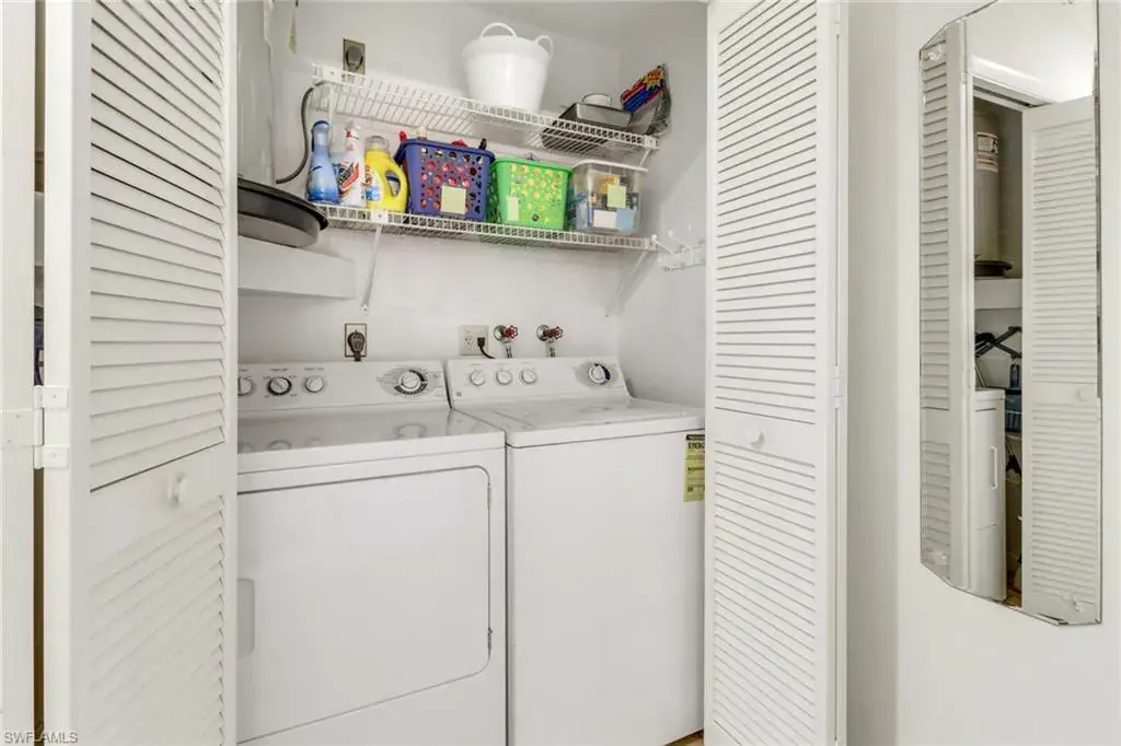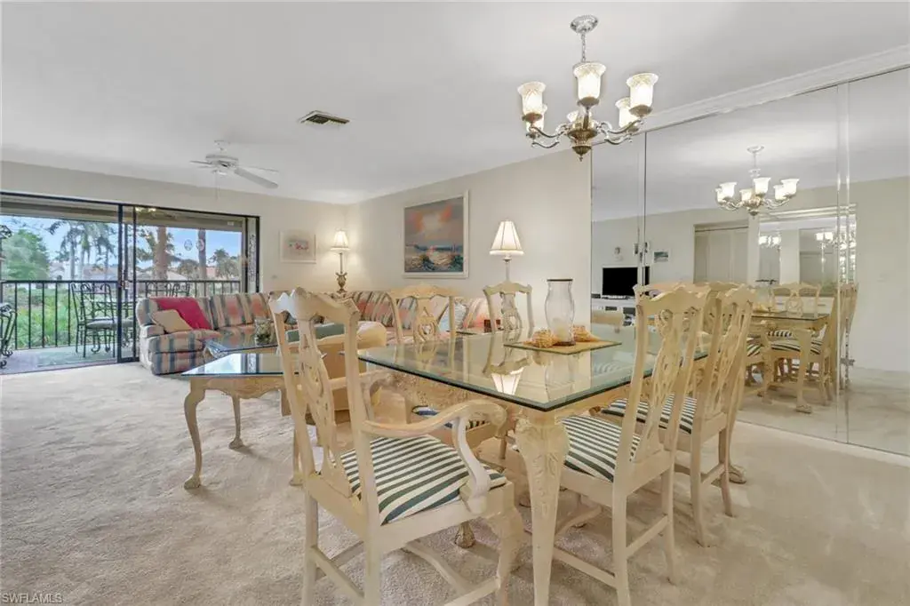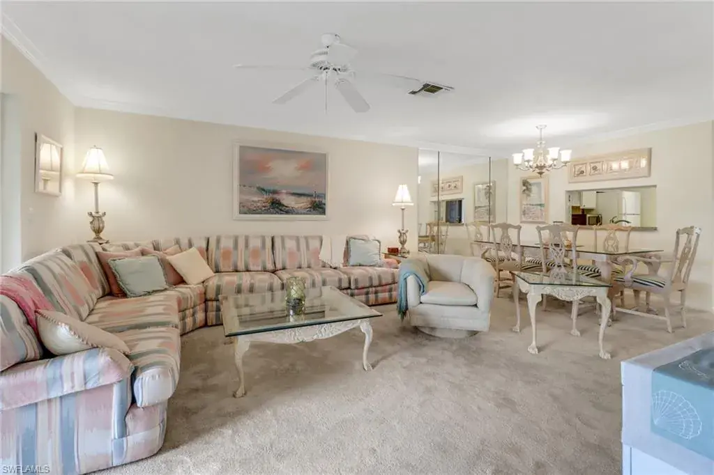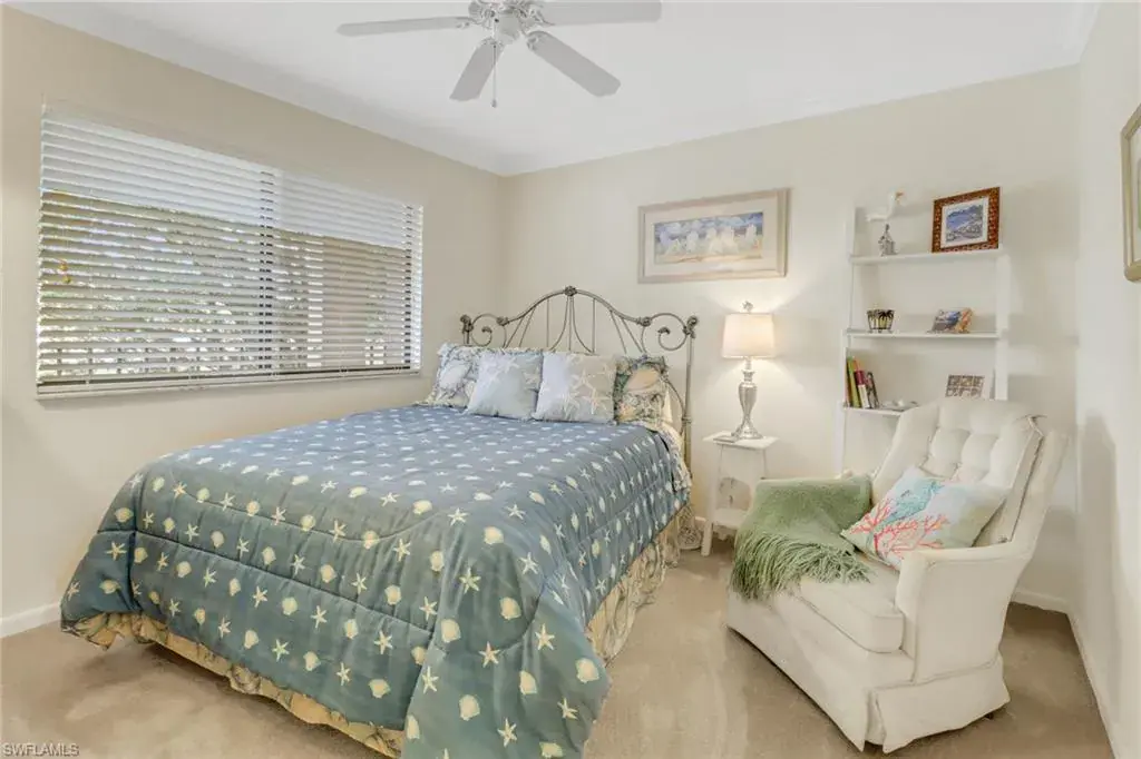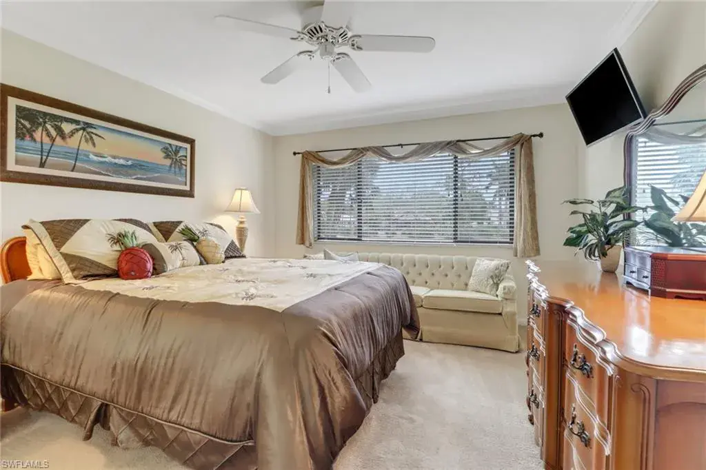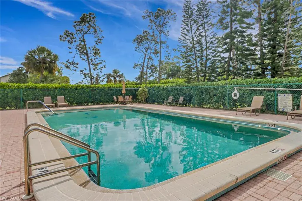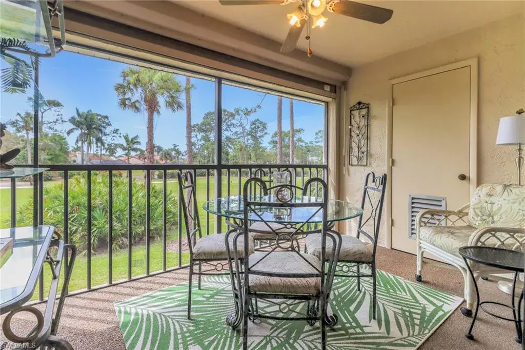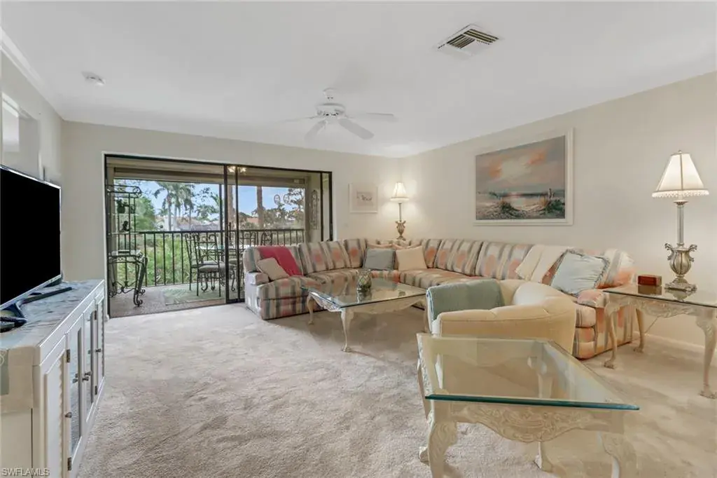 Welcome to the intimate and tranquil community of Augusta Woods with only 64 units! This home is in the perfect location for everything Naples has to offer. Grab a cup of coffee or a drink and enjoy stunning views of the Royal Palm Golf Course from this two bedroom two bath second floor condo with southern exposure. Beautifully maintained with tile and carpet throughout, this home is being sold turnkey with a new hot water heater, stove, and a 1-year home warranty on all major appliances including the HVAC! This charming home comes with in-unit laundry (most units are on the lanai), a storage closet on the lanai, a covered parking space and an extra storage closet in front of the home for comfort and ease. Ample guest parking to entertain family and friends, this gorgeously landscaped community features a pool, outdoor shower, and restrooms. Meticulously looked after with a new roof, paved parking, and fresh paint, this is a community that cares. Minutes from downtown Naples, the Bayshore Art District, the Naples Pickleball Center, home of the US Open, and beautiful white sand beaches. The dues include: Cable, internet, insurance, irrigation, water, sewer, trash, landscaping, pest control, street maintenance, and reserves!