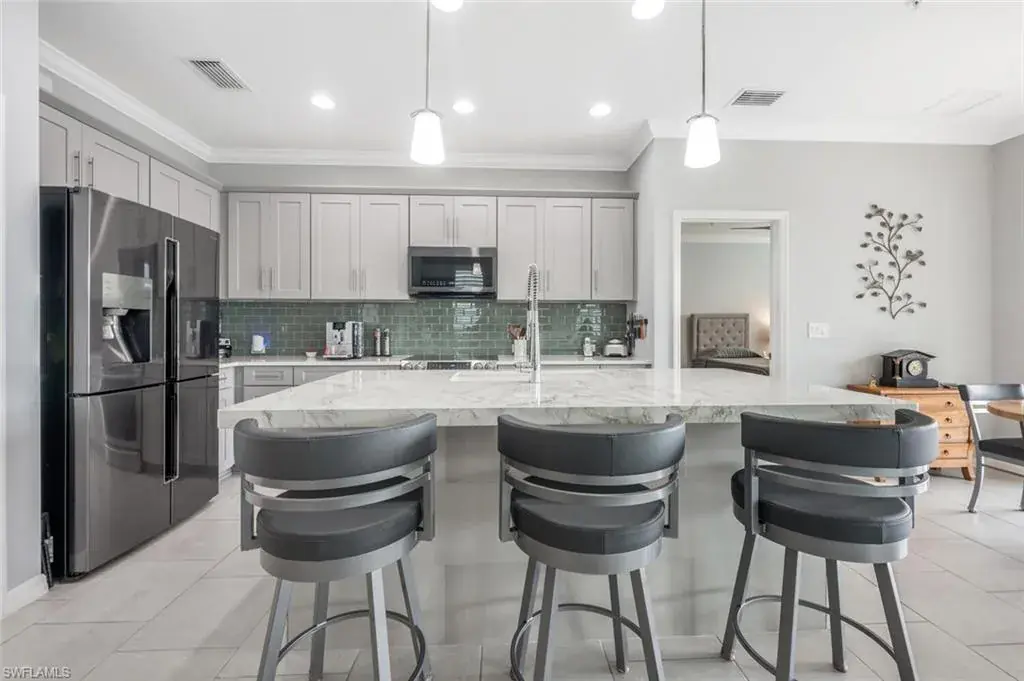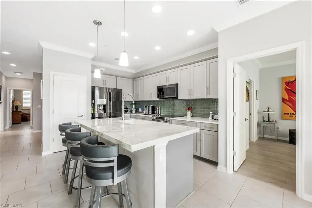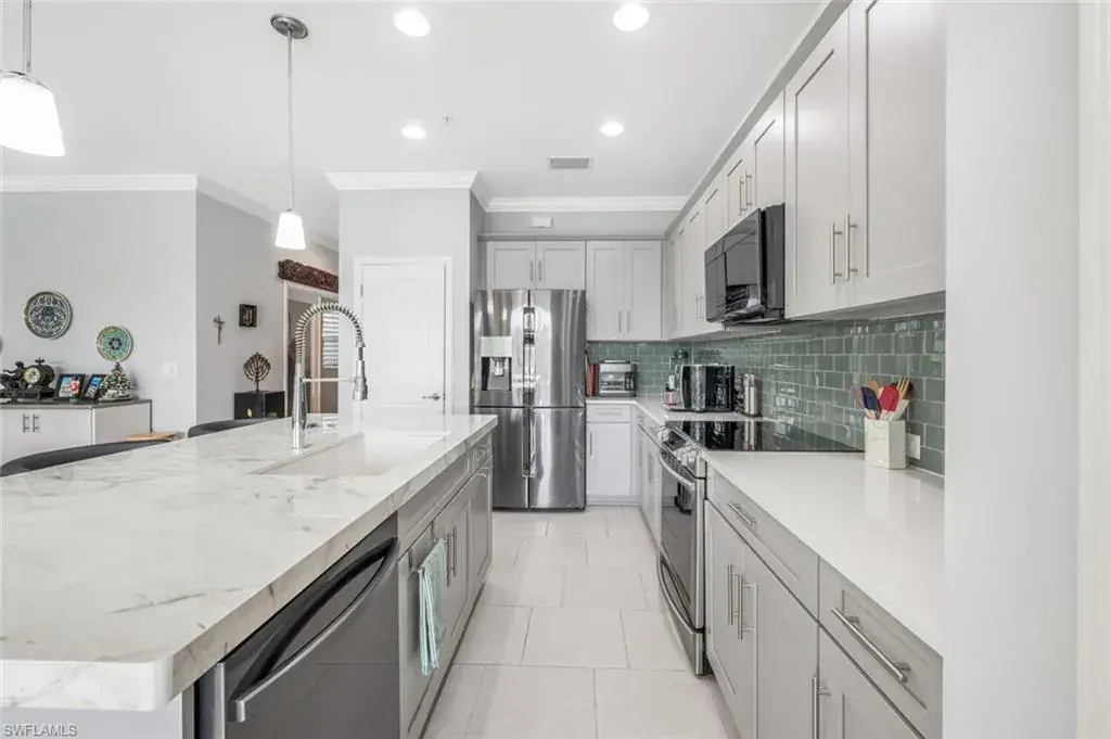 Meticulously maintained 2 BR + den condo with lake view & numerous upgrades. Impact windows & doors for storm protection. Top of the line black stainless appliances, crown molding, plantation shutters, tile flooring, even the lanai has tile & solar shades. And if that is not enough, seller put in a top of the line 19 seer, variable speed Daikin a/c (2024), hot water tank (2025) beautiful porcelain countertops in the kitchen, Cullligan water filtration & softener that services the entire condo, pull out shelves in kitchen cabinets & pantry, and an amazing custom master closet. The owner even upgraded the garage with a durable epoxy floor & custom cabinets. And if you don’t like stairs, there is even an Acorn Chair Lift. Convenient to downtown
