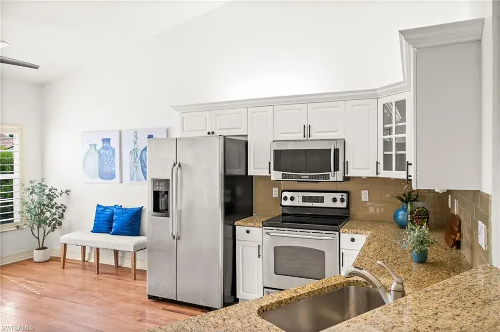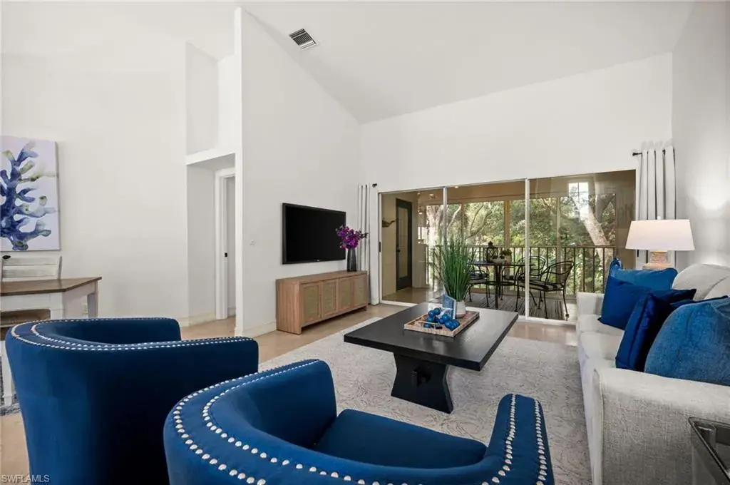Welcome to this stunning 2-bedroom, 2-bathroom condo located on the second floor and featuring an open, airy floor plan. The unit boasts soaring cathedral ceilings, a spacious eat-in kitchen with granite countertops, stainless steel appliances, and beautifully updated showers. The generous primary suite includes dual vanities and a walk-in closet for ample storage. A split-bedroom layout offers added privacy—perfect for guests. You’ll also love the large laundry room, abundant storage space, and a screened lanai with tranquil park views—ideal for relaxing or entertaining. This home includes an assigned parking spot conveniently located just steps from your private entrance. The pet-friendly community allows up to two dogs or cats under 20 lbs. Avalon residents enjoy access to two swimming pools, a spa, and an outdoor kitchen with grills—great for gatherings. Ideally situated just moments from the Pelican Bay Community Center, you’ll have access to a state-of-the-art fitness center, tennis courts, and a tram station for easy beach access. Pelican Bay members also enjoy beach attendants, kayaking, biking, and miles of scenic nature trails. Just minutes from the upscale Waterside Shops, this condo offers a perfect blend of luxury, location, and resort-style amenities.
