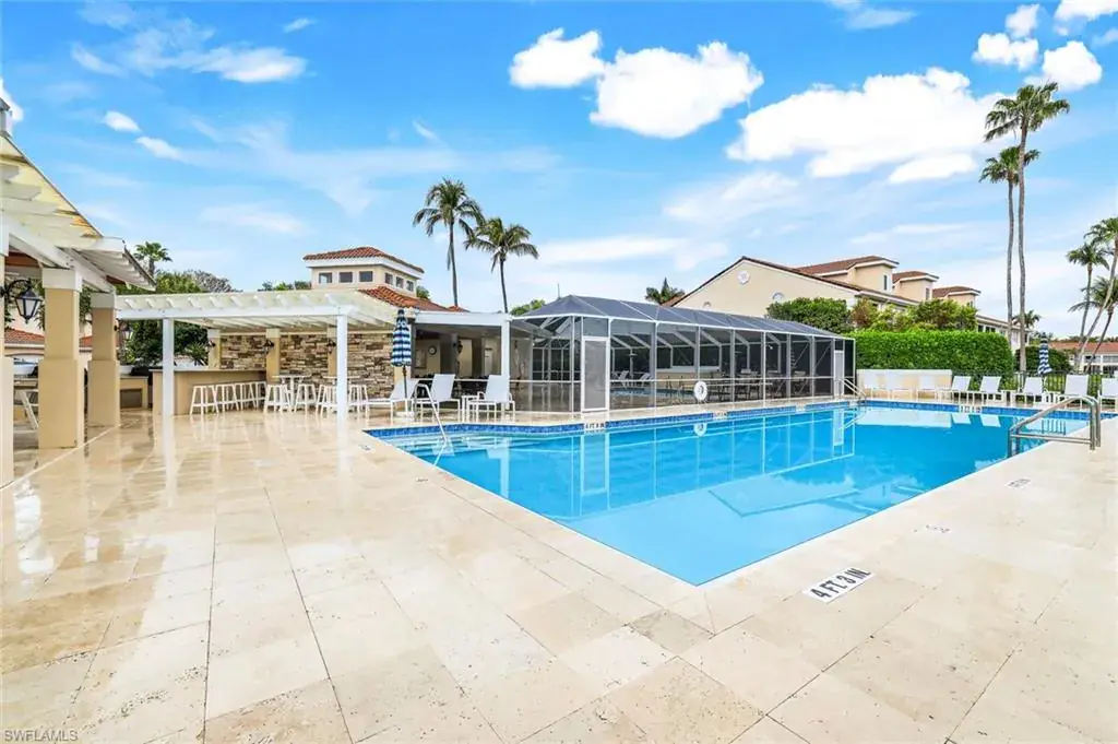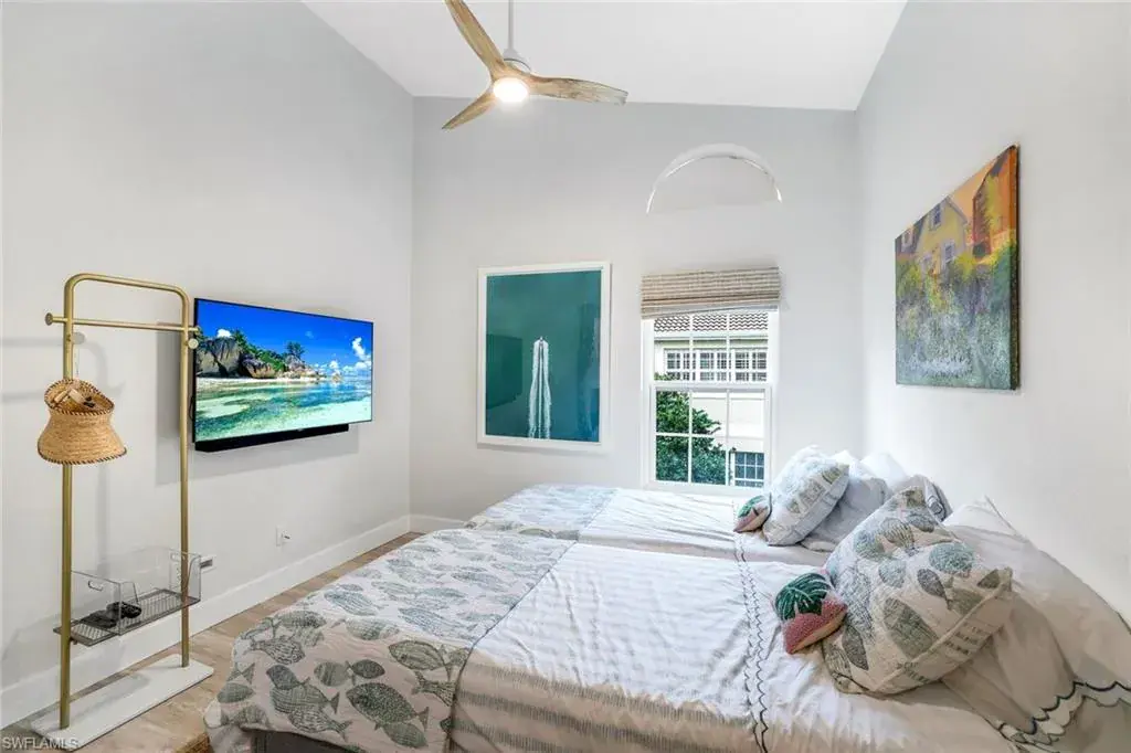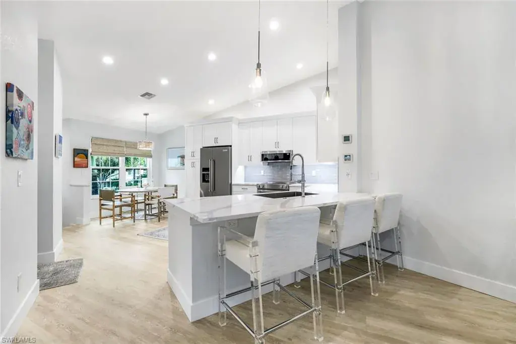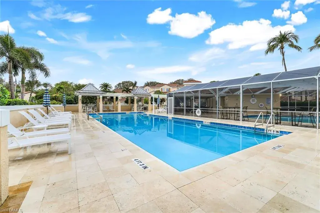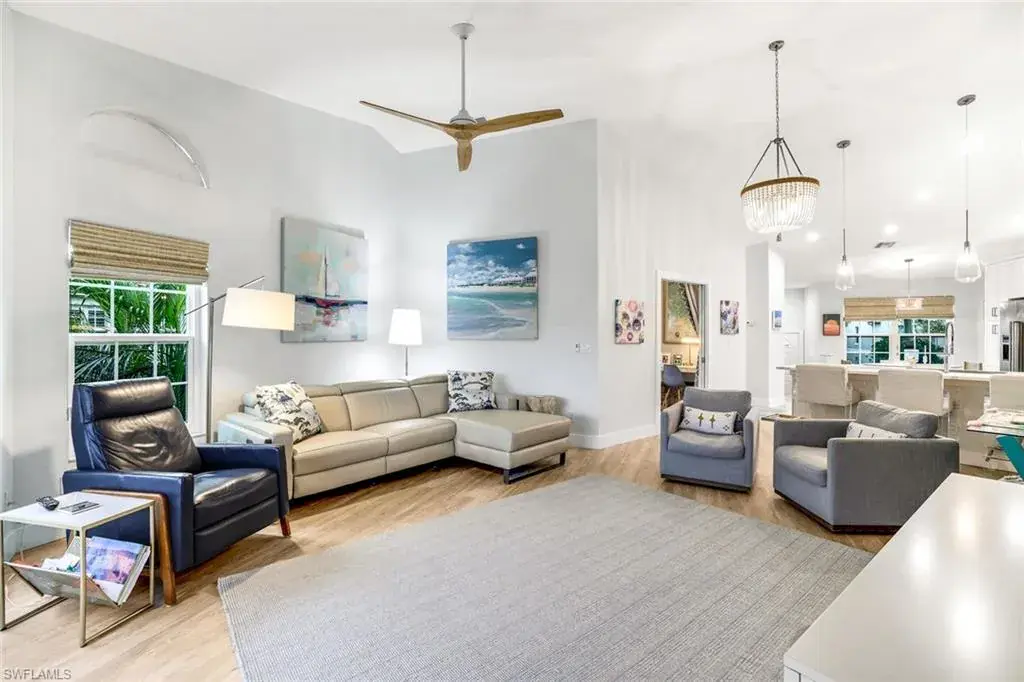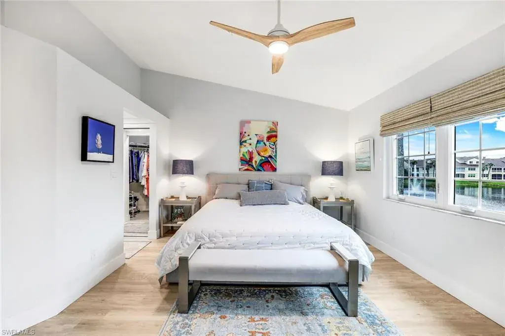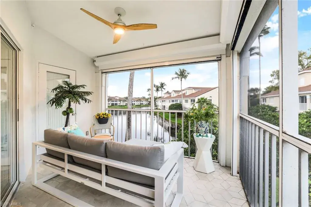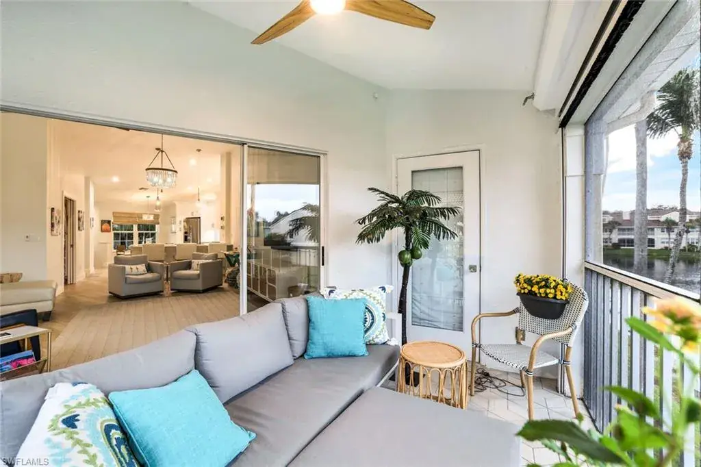 Welcome to this beautiful coach home residence in the popular and well-located Avalon community of Pelican Bay. This elegant second-floor 3-bedroom, 2-bathroom corner unit offers 1,450 sq. ft. of thoughtfully designed living space, blending modern luxury, convenience, and coastal tranquility. Every detail has been curated to create a bright, airy, and inviting atmosphere, perfect for both relaxed living and effortless entertaining. Step inside to soaring vaulted ceilings and abundant natural light streaming through expansive windows, creating a sense of warmth and openness. The recent updates include luxury flooring, designer lighting, and a neutral color palette that compliments any décor. The open-concept living and dining area offers a seamless flow, ideal for gatherings. The beautiful white shaker kitchen features quartz countertops, custom cabinetry, high-end stainless steel appliances, and a breakfast bar for casual dining. The flexible third bedroom/den is perfect as a home office, reading nook, or guest room. The spacious primary suite serves as a private retreat with large windows, spacious closets, and a spa-like ensuite bathroom featuring dual vanities, quartz countertops, and a walk-in shower. Two additional bedrooms are well-appointed. While the second bathroom includes a combination tub and shower. Enjoy Florida’s indoor-outdoor lifestyle on the private screened balcony with hurricane shades, offering peaceful views of a pond and water feature—ideal for morning coffee or evening sunsets. Additional features include a detached GARAGE, assigned parking, and pet-friendly policies. Residents of Avalon enjoy two newly renovated pools, a spa, and close proximity to the Pelican Bay Fitness Center. The broader Pelican Bay community offers exclusive private beach access via a tram system leading to nearly three miles of white-sand beaches. Full beach services include chairs, umbrellas, kayaks, sailboats, and two beachfront dining options. Pelican Bay offers top-tier tennis facilities, an attended fitness center, and over 88 acres of parks, walking trails, and bike paths. Year-round social and cultural events foster a vibrant community, and golf enthusiasts can join Club Pelican Bay (membership required) for premier golfing and dining. Convenience is key with nearby shopping at Waterside Shops, fine dining, and luxury resorts like the Ritz-Carlton Naples and Naples Grande Beach Resort. The gated community includes comprehensive HOA services covering cable, internet, irrigation, lawn care, pest control, and more. A move-in-ready 3-bedroom condo in Pelican Bay with a detached garage and water views is a rare opportunity. Whether as a full-time residence, seasonal retreat, or investment, this unit offers the ultimate Naples lifestyle. Don’t miss your chance to own this piece of paradise!