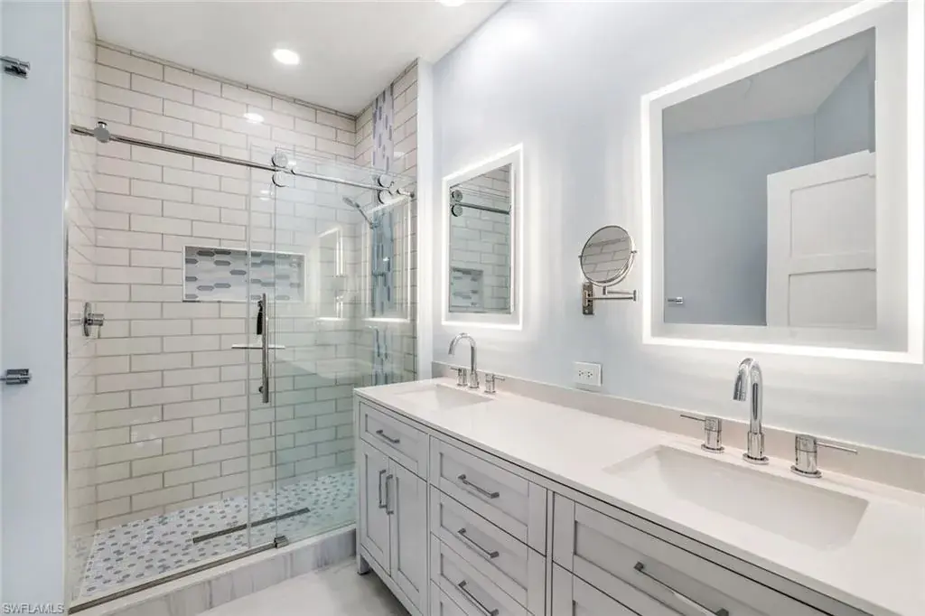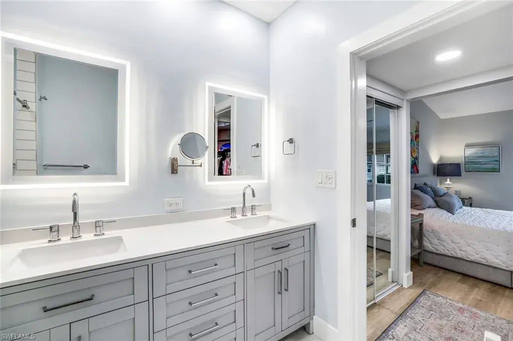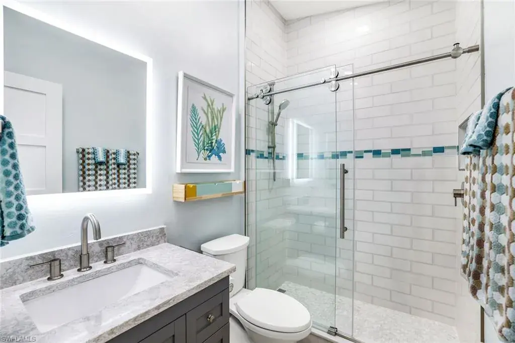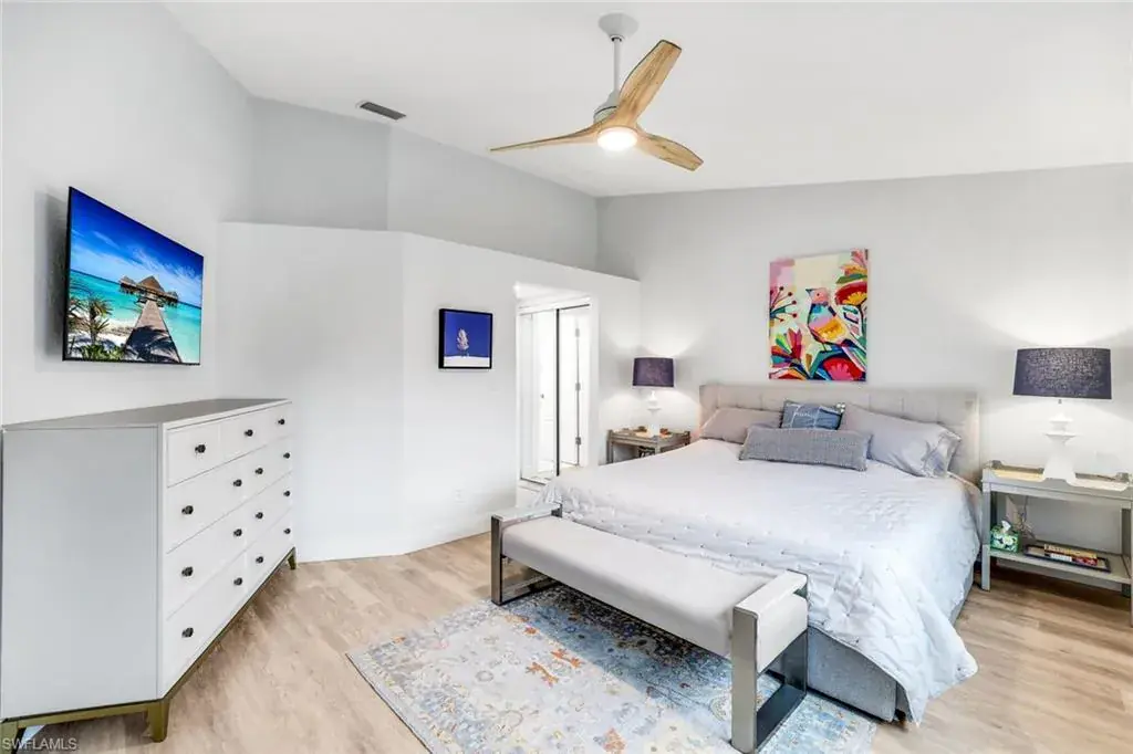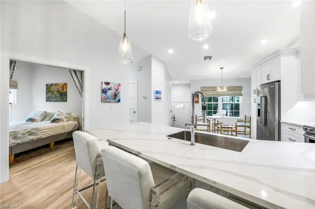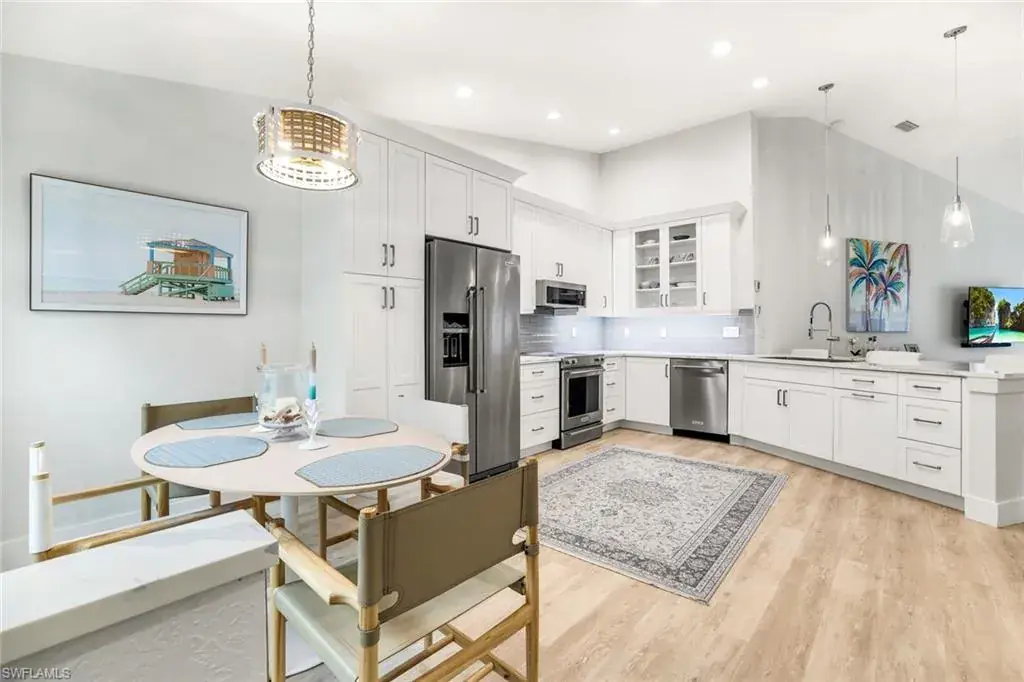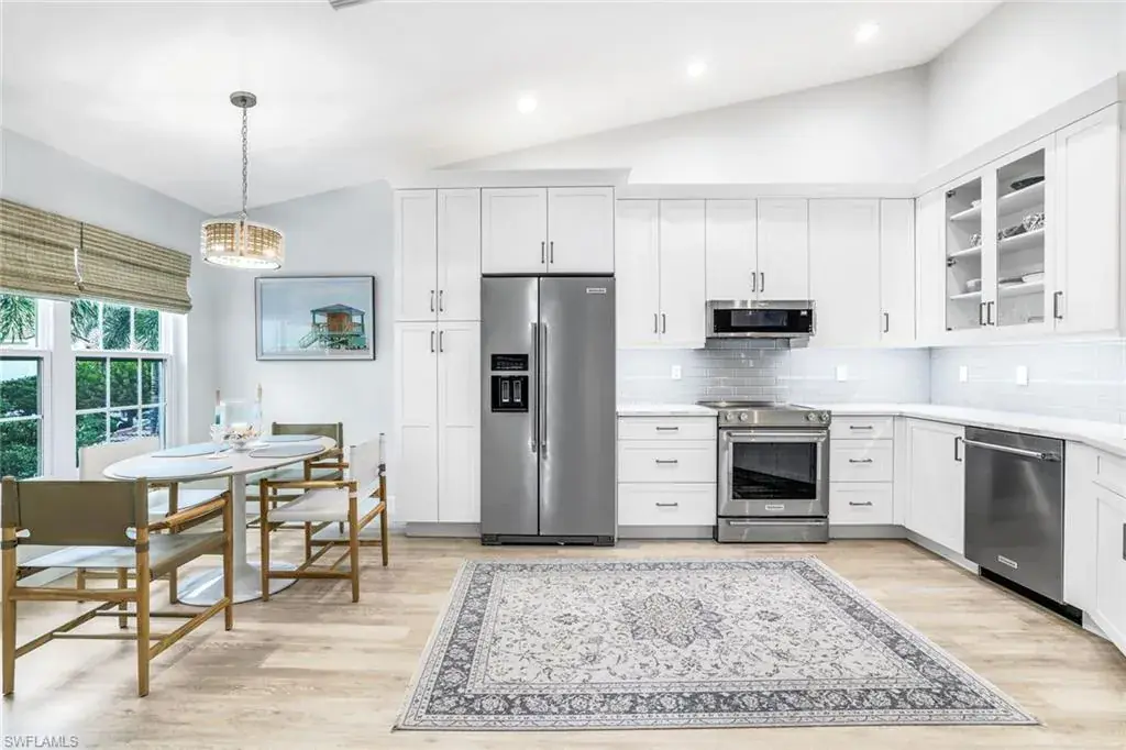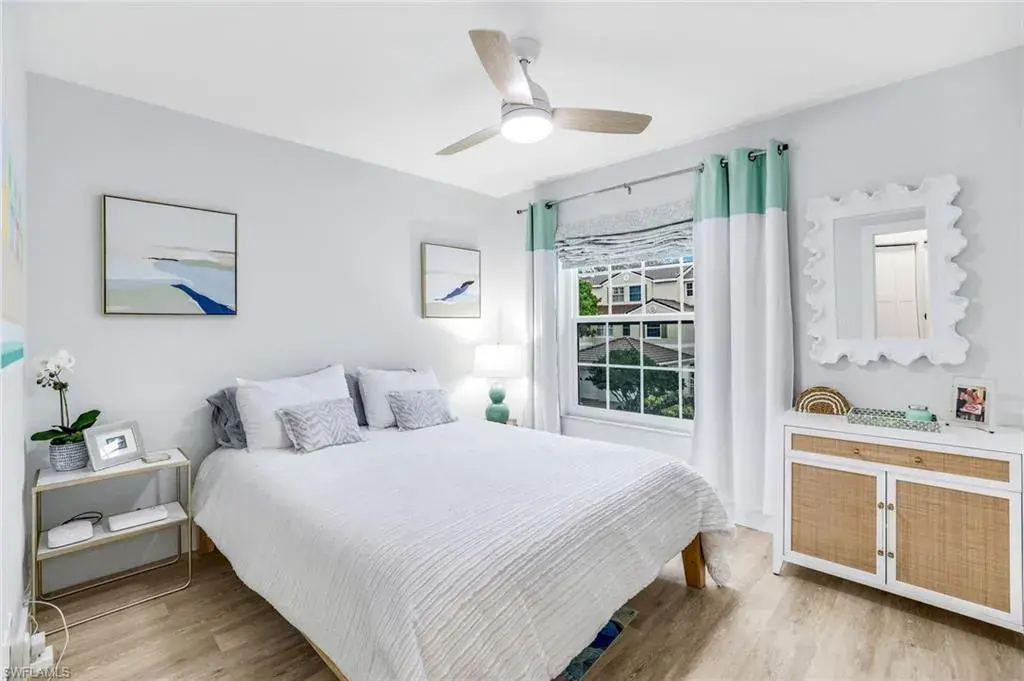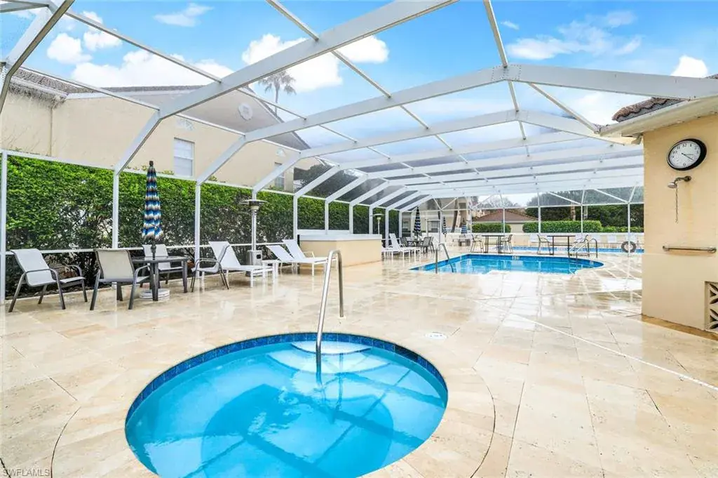 Welcome to this beautiful coach home residence in the popular and well-located Avalon community of Pelican Bay. This elegant second-floor 3-bedroom, 2-bathroom corner unit offers 1,450 sq. ft. of thoughtfully designed living space, blending modern luxury, convenience, and coastal tranquility. Every detail has been curated to create a bright, airy, and inviting atmosphere, perfect for both relaxed living and effortless entertaining. Step inside to soaring vaulted ceilings and abundant natural light streaming through expansive windows, creating a sense of warmth and openness. The recent updates include luxury flooring, designer lighting, and a neutral color palette that compliments any décor. The open-concept living and dining area offers a seamless flow, ideal for gatherings. The beautiful white shaker kitchen features quartz countertops, custom cabinetry, high-end stainless steel appliances, and a breakfast bar for casual dining. The flexible third bedroom/den is perfect as a home office, reading nook, or guest room. The spacious primary suite serves as a private retreat with large windows, spacious closets, and a spa-like ensuite bathroom featuring dual vanities, quartz countertops, and a walk-in shower. Two additional bedrooms are well-appointed. While the second bathroom includes a combination tub and shower. Enjoy Florida’s indoor-outdoor lifestyle on the private screened balcony with hurricane shades, offering peaceful views of a pond and water feature—ideal for morning coffee or evening sunsets. Additional features include a detached GARAGE, assigned parking, and pet-friendly policies. Residents of Avalon enjoy two newly renovated pools, a spa, and close proximity to the Pelican Bay Fitness Center. The broader Pelican Bay community offers exclusive private beach access via a tram system leading to nearly three miles of white-sand beaches. Full beach services include chairs, umbrellas, kayaks, sailboats, and two beachfront dining options. Pelican Bay offers top-tier tennis facilities, an attended fitness center, and over 88 acres of parks, walking trails, and bike paths. Year-round social and cultural events foster a vibrant community, and golf enthusiasts can join Club Pelican Bay (membership required) for premier golfing and dining. Convenience is key with nearby shopping at Waterside Shops, fine dining, and luxury resorts like the Ritz-Carlton Naples and Naples Grande Beach Resort. The gated community includes comprehensive HOA services covering cable, internet, irrigation, lawn care, pest control, and more. A move-in-ready 3-bedroom condo in Pelican Bay with a detached garage and water views is a rare opportunity. Whether as a full-time residence, seasonal retreat, or investment, this unit offers the ultimate Naples lifestyle. Don’t miss your chance to own this piece of paradise!