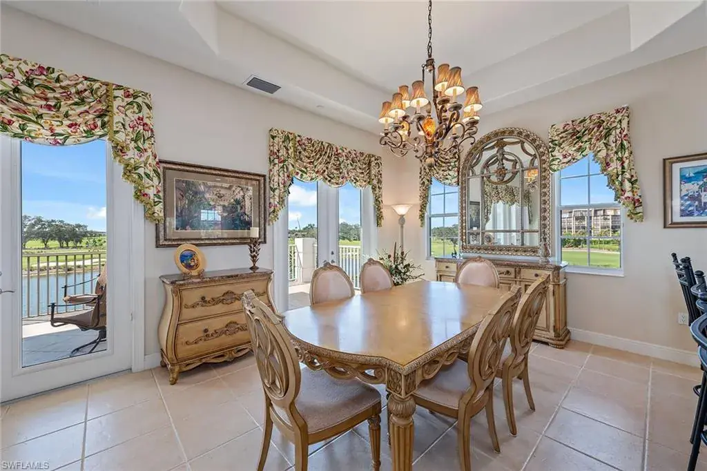 Spectacular panoramic view at the tip of the Avellino Peninsula, which offers views of the 9th and 18th holes on the North Golf Course, the surrounding lake and the Vineyards Country Club from all major windows. The unit is on a side lane which allows for complete privacy. The world-class Avellino Clubhouse, containing an up-to-date fitness center, library, card room and grand social room overlooking the patio area that features an infinity pool, spa and grill, all of which provide an active and secure social life. Avellino is a gated community near major arteries of transportation, shopping and Physicians Regional Medical Center. The Vineyard Country Club offers two newly renovated golf courses, tennis courts, bocci courts, pickleball courts, an award winning fitness center, several restaurants and pools.