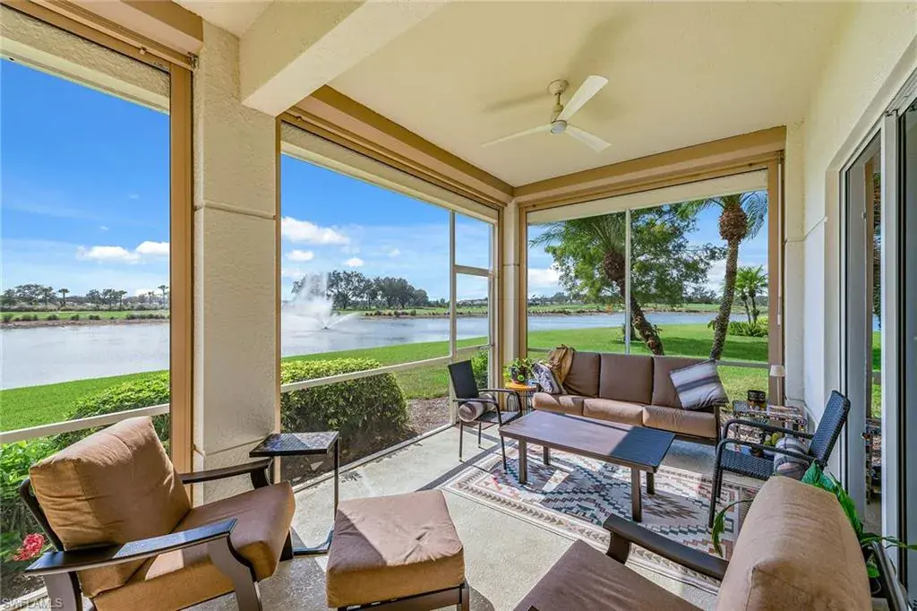 Discover luxurious living in Avellino Isles! This beautiful renovated home offers breathtaking water and golf course views from the south-facing lanai with Kevlar electric hurricane shutters. The newly decorated kitchen is a chef’s dream, featuring quartzite countertops, a breakfast area and off the laundry, a large walk-in pantry room. The Avellino community has just completed installing all new tile roofs, new gutters and downspouts, new neutral exterior paint and new exterior carriage lights. This unit is a short walk to the updated Avellino Clubhouse, which provides an Olympic pool/spa, new pool furniture, updated fitness center, barbecue grills, social room, card room, sauna and library which provides a place for residents to gather and socialize. The Vineyards Country Club, which offers two types of memberships with two 18-hole championship courses, and a recently added wellness center and clubhouse, can be joined with little or no waiting list. All providing a magnificent lifestyle.