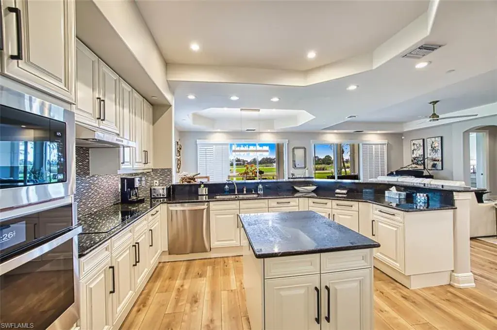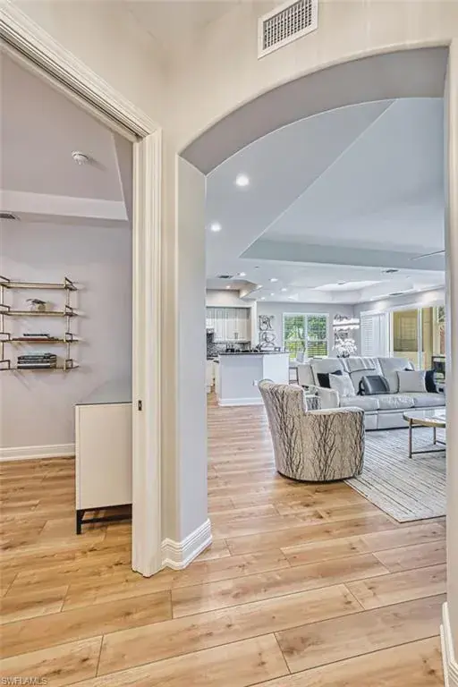 Located within the prestigious Avellino Isles Vineyards community is this turnkey, first floor coach home with a private driveway and attached garage. As you walk into the home, you will notice the $100,000+ in high end updates just recently completed, including new floors, stunning light fixtures, updated appliances and kitchen, new water closets, and electric hurricane roll-down shutters. The home features 2 spacious bedrooms, a den, and 2 1/2 bathrooms. The heart of the home is the beautifully updated kitchen featuring stainless steel appliances, quartz countertops, a breakfast bar, and a separate dining area. The great room opens effortlessly into the screened lanai overlooking the Vineyards golf course, arguably one of the best views in the entire community. The primary suite offers high ceilings, an oversized walk-in closet, and a luxurious master bath featuring dual sinks and a separate tub and shower. Right across the street you will find the community’s exceptional amenities, including the Avellino Isles clubhouse, exercise facility, and resort-style infinity pool and spa. The expansive pool deck, equipped with grills and a bar area, is perfect for hosting gatherings and is included in your HOA fees. This stunningly remodeled home has all the bells and whistles and is in an ideal location within this sought-after community. Additionally, Vineyards offers optional golf and social memberships, including their newly redesigned 18-hole golf courses, resort style pools, clubhouse, restaurant/bar, and award winning exercise and spa.