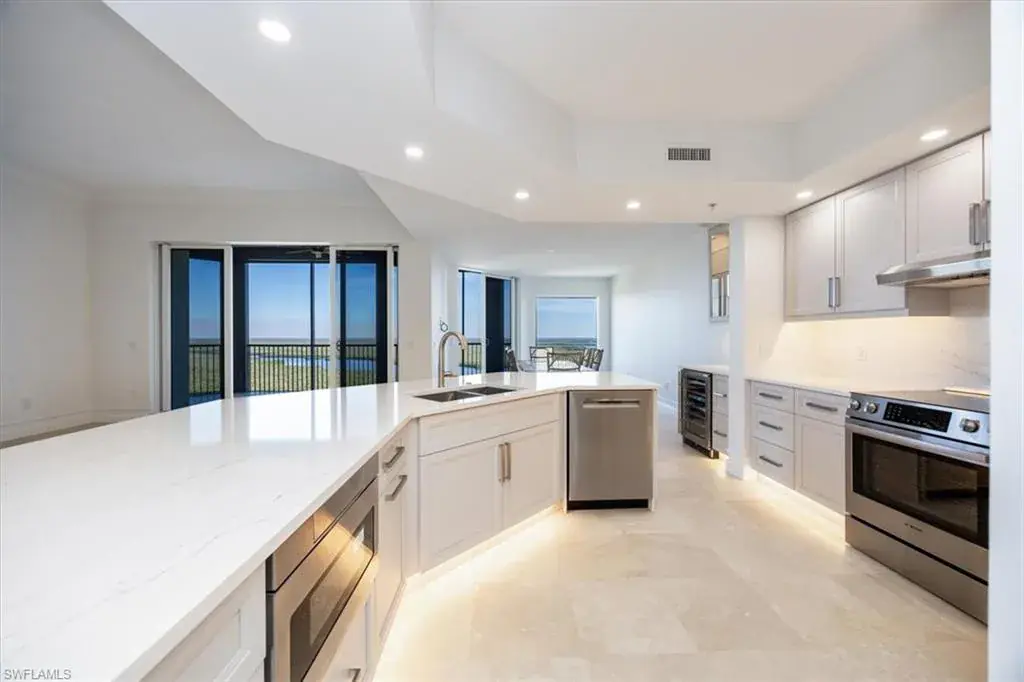 Discover unparalleled luxury and serenity in this FULLY REDESIGNED and RENOVATED 3-bedroom, 3.5-bathroom penthouse SKYHOME, located in the prestigious Aversana at Hammock Bay Golf and Country Club. Boasting soaring 12-foot ceilings and breathtaking PANORAMIC VIEWS of the Ten Thousand Islands, Marco Island, and the Gulf of Mexico, this exquisite residence includes ALL NEW KITCHEN, BATHROOMS, and LAUNDRY and offers the ultimate in elevated living.