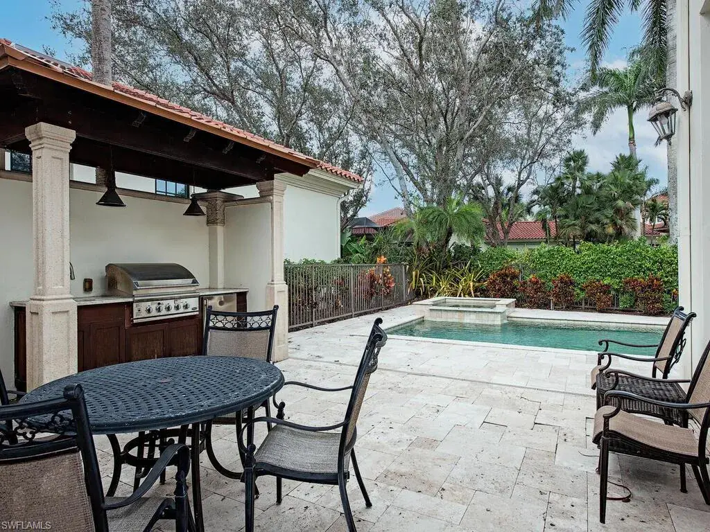 Welcome to Resort Style Living, Welcome to Grey Oaks! Exquisite updated two-story home in Avila at Grey Oaks boasts 3 bedrooms, 3 1/2 baths, with den and features modern design and decor throughout. Step into a grand foyer featuring a winding staircase, leading to a formal living and dining area. The private fenced pool and spa, complete with an outdoor kitchen and entertaining space, provide the perfect backdrop for gatherings. The cozy upstairs loft provides a serene atmosphere for relaxation. The grandmaster retreat includes a spa-like bathroom, while the kitchen features a wine cooler, gas cooktop, and beautiful solid surface countertops. This property offers an unparalleled blend of luxury and comfort in a sought-after location. New roof and new impact doors and windows throughout. Grey Oaks Country Club is Naples one and only private club with 54 holes of golf. In addition, the club offers exclusive amenities for all, from the newly renovated wellness center to the lagoon style pool, tennis, pickle ball, bocce, restaurants, spa… the amenities are endless.